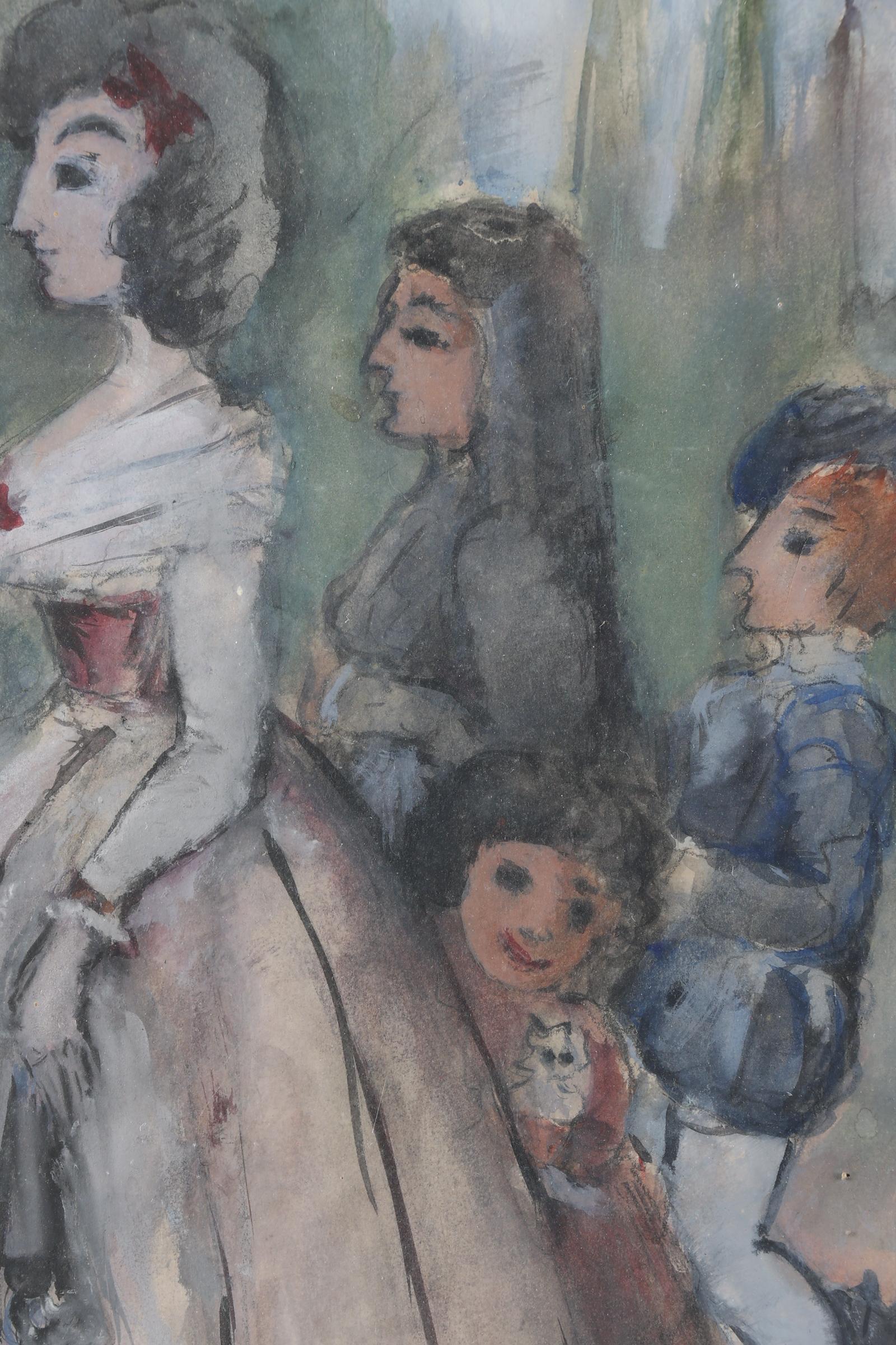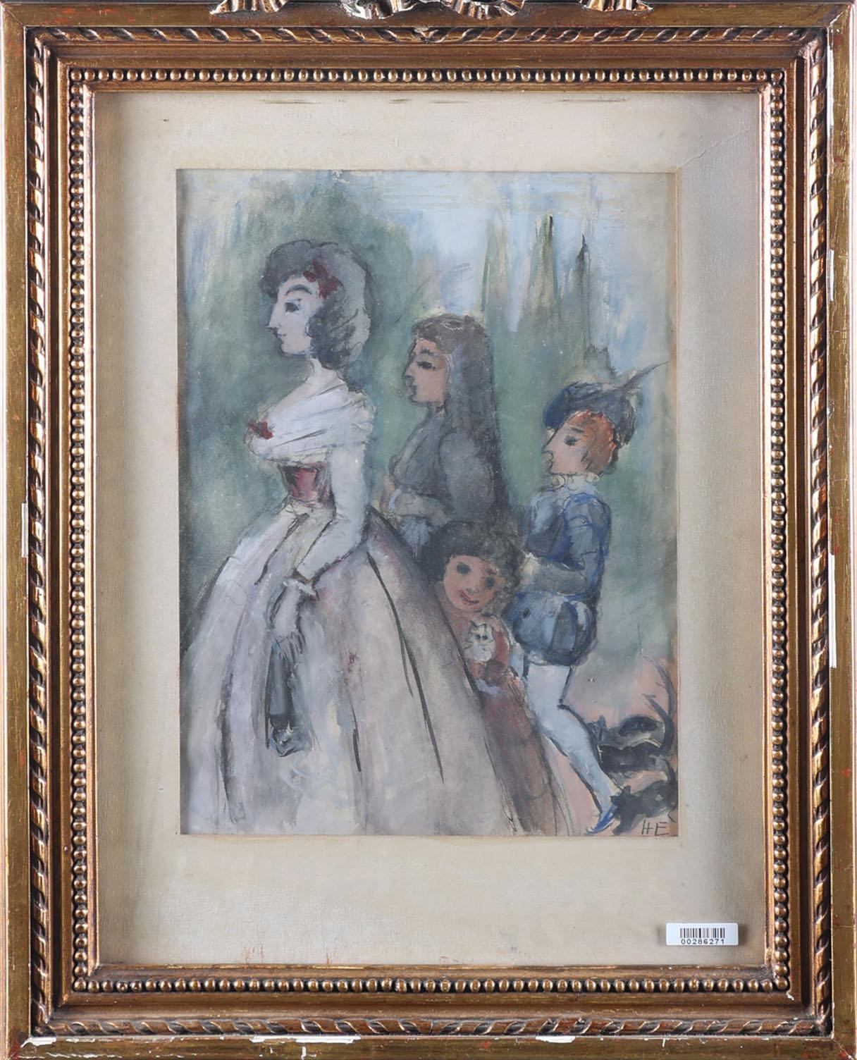 Monogram H.E., Moeder met kinderen, gemengde techniek, 30 x 23 cm.