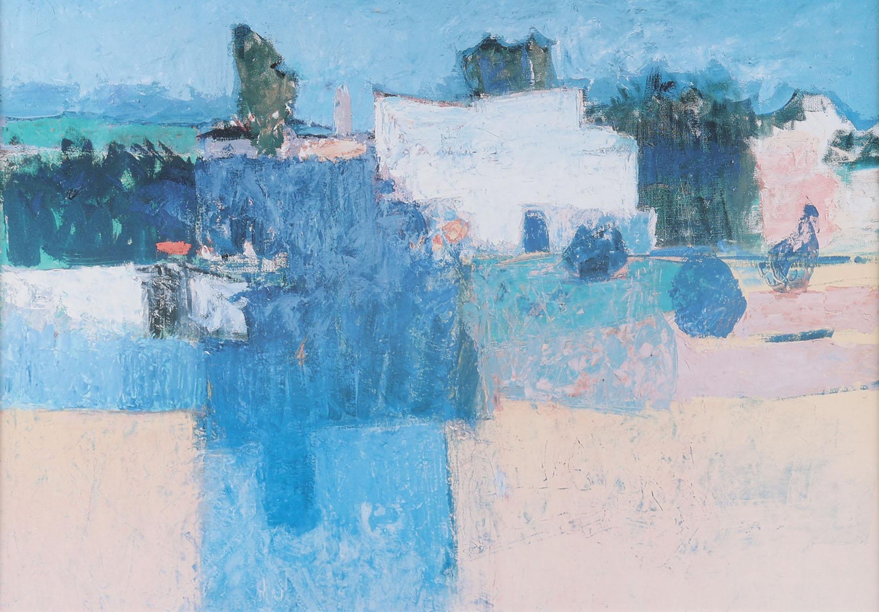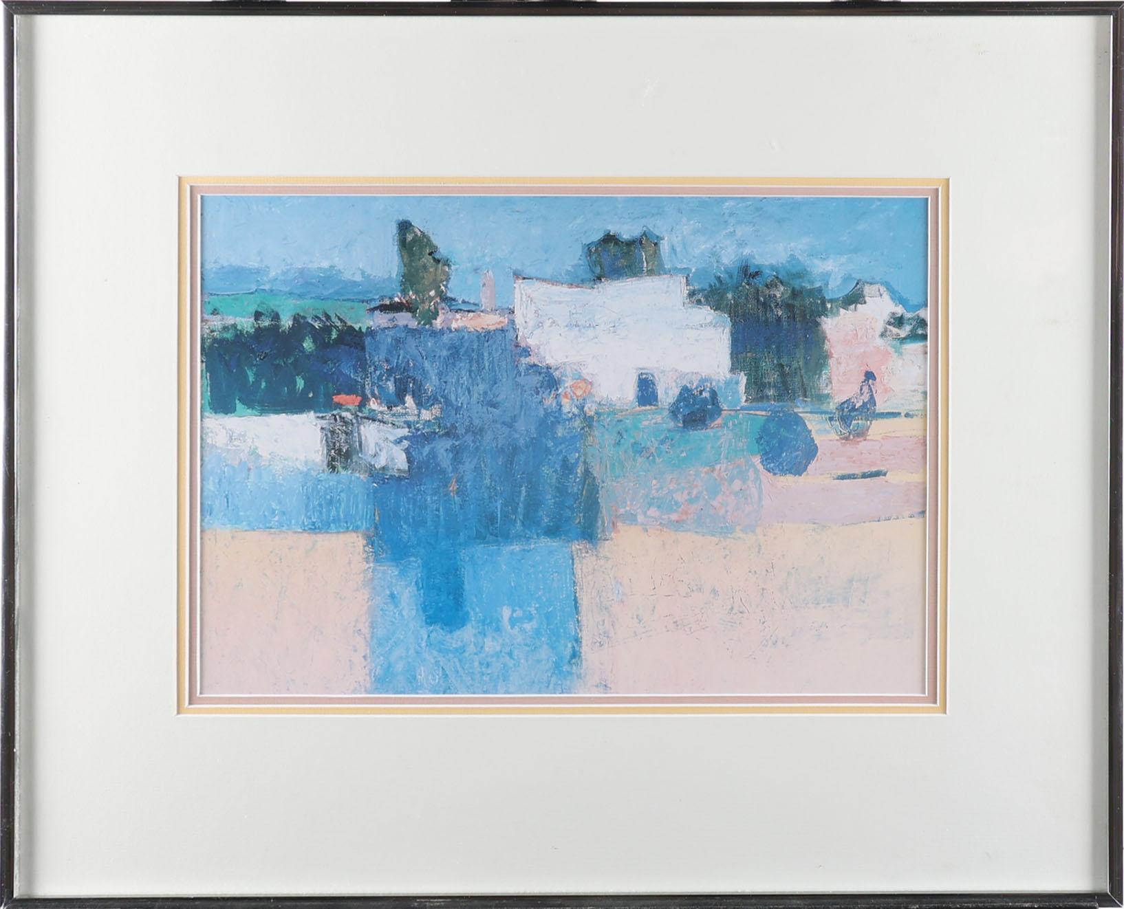 Onb.meester, Huisjes in landschap, lithografie, 39 x 26 cm.