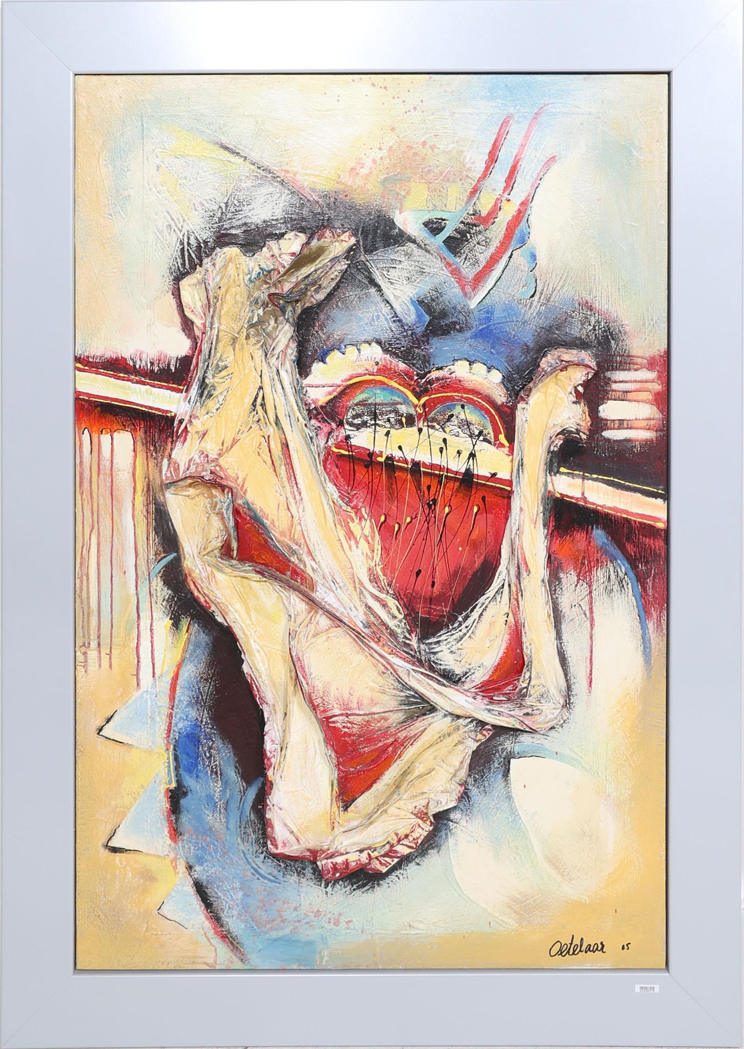Gerard van den Oetelaar, Abstracte voorstelling, gemengde techniek, gedateerd 2005, 123 x 81 cm.