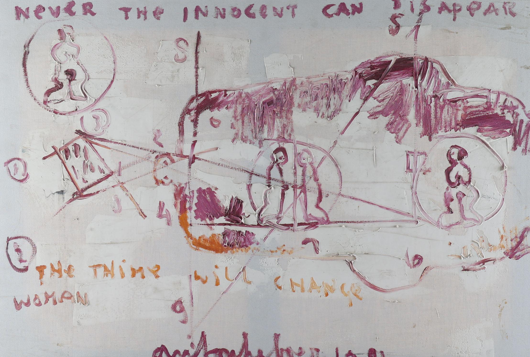 Anton Heyboer (1924-2005), 'Never the innocent can disappear, the time will change women', gedateerd 1984, olieverf op doek, 70 x 100 cm.