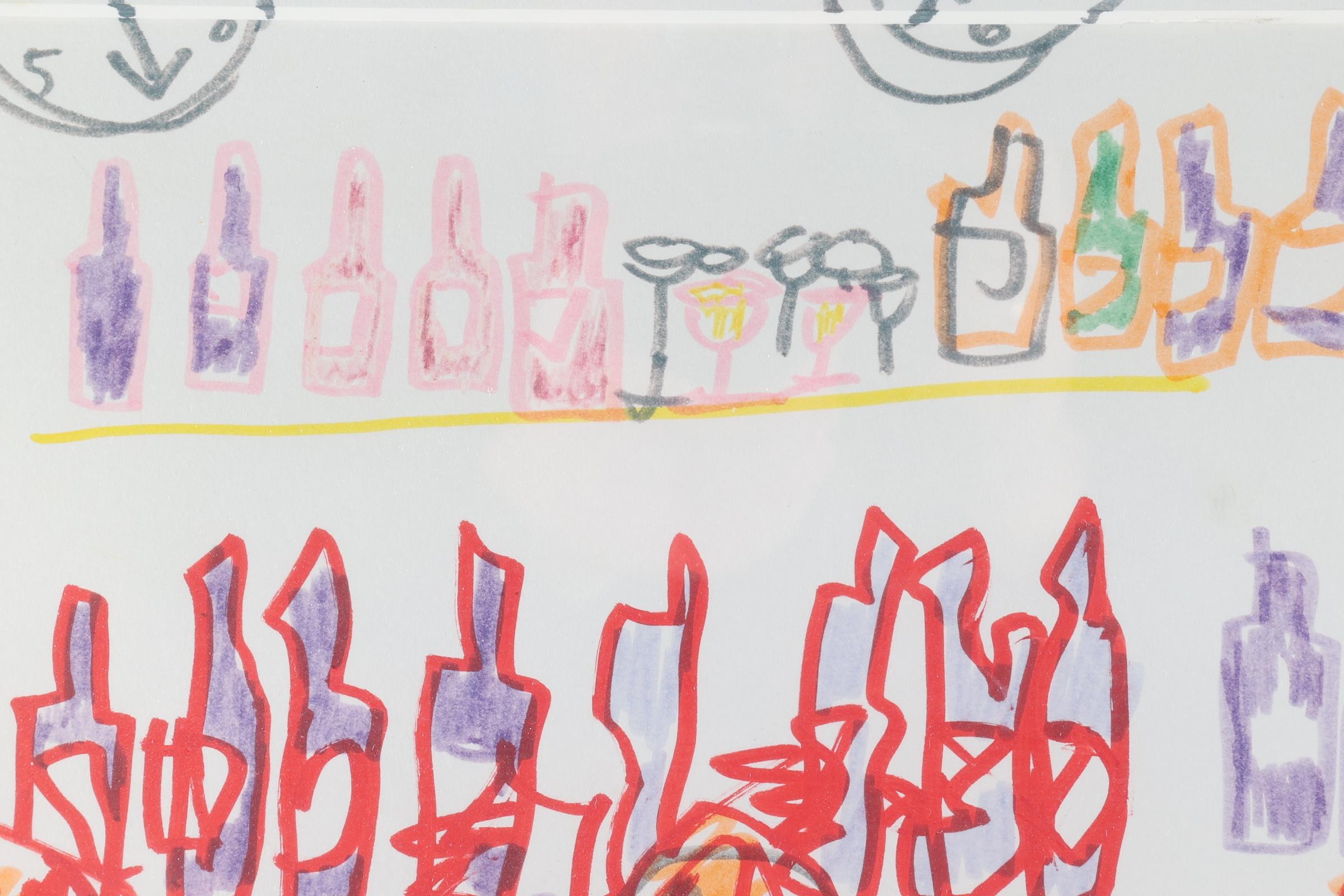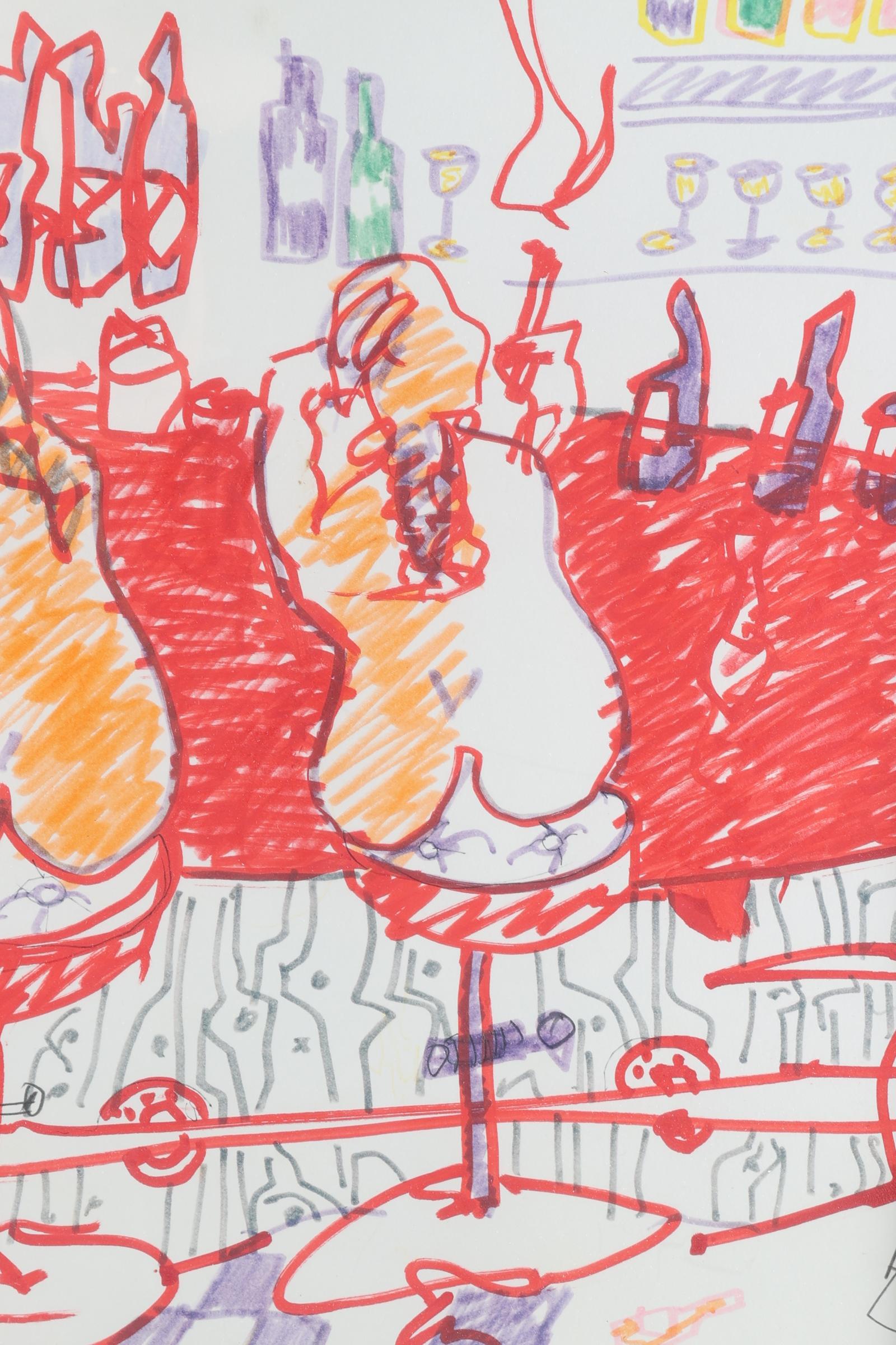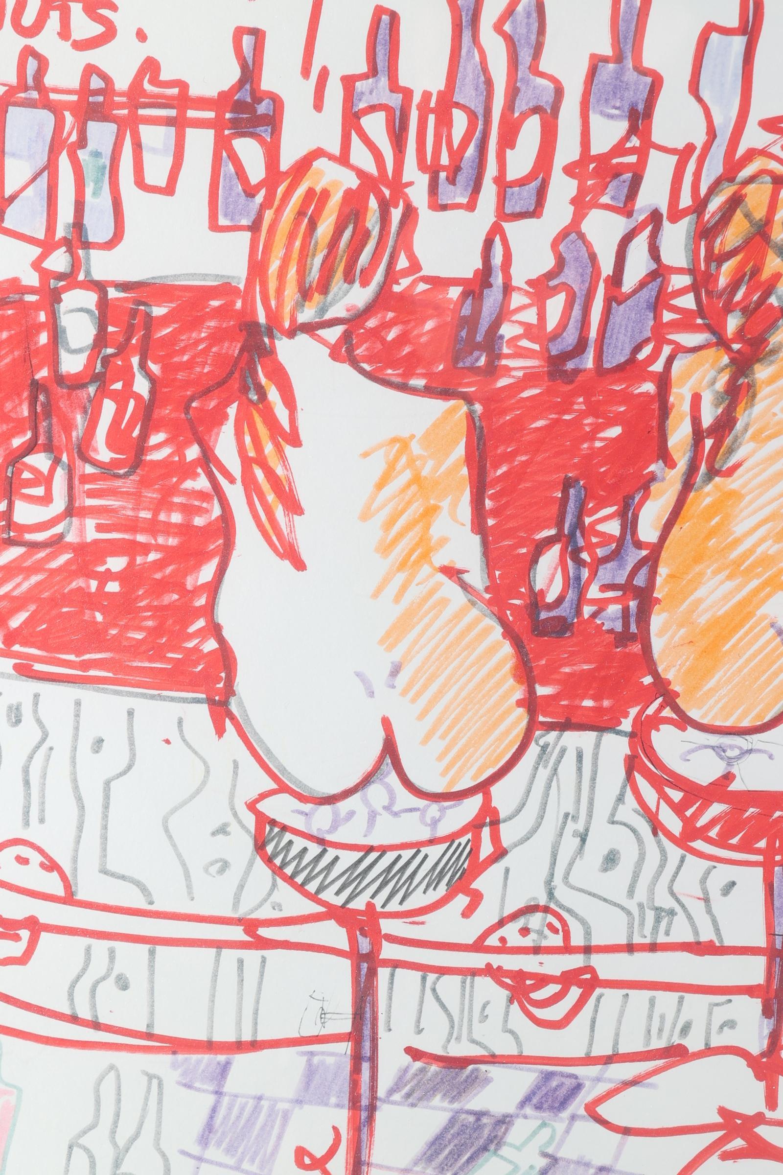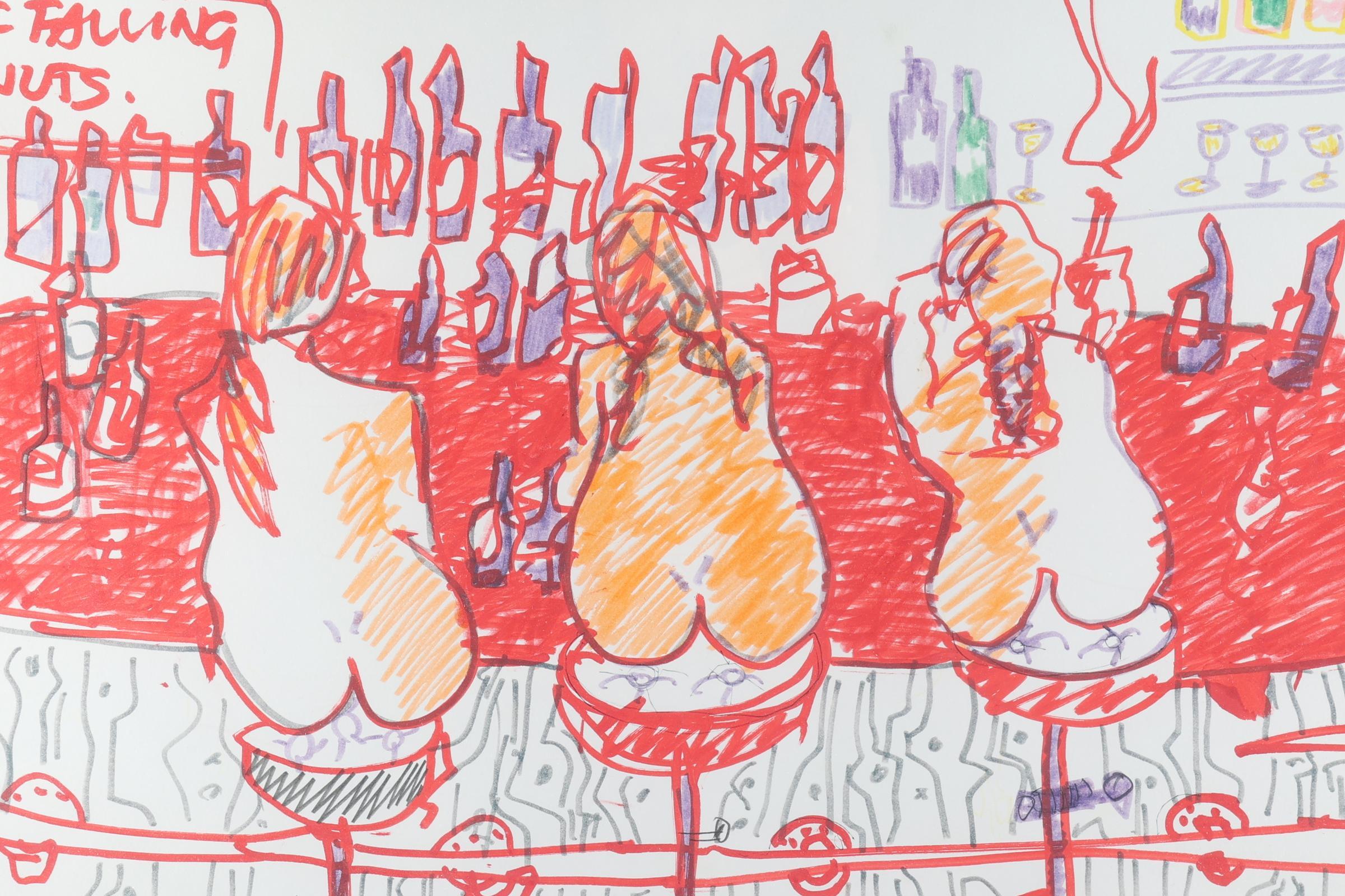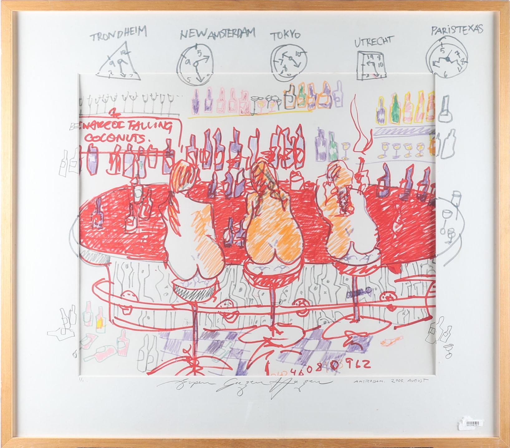 Espen Greger Hagen (1964-2008), Naakte vrouwen aan de bar, gemengde techniek, genummerd 1/1, gedateerd Amsterdam Augustus 2005, 69 x 79 cm.