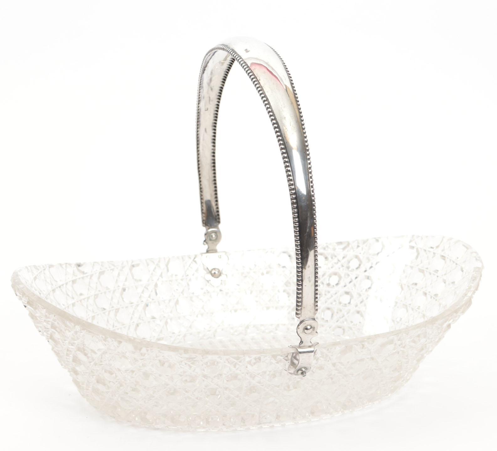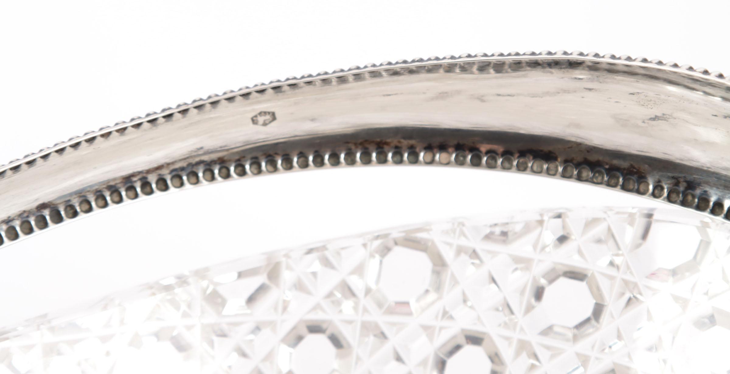 Geslepen kristallen schaal met 2e gehalte zilveren hengsel