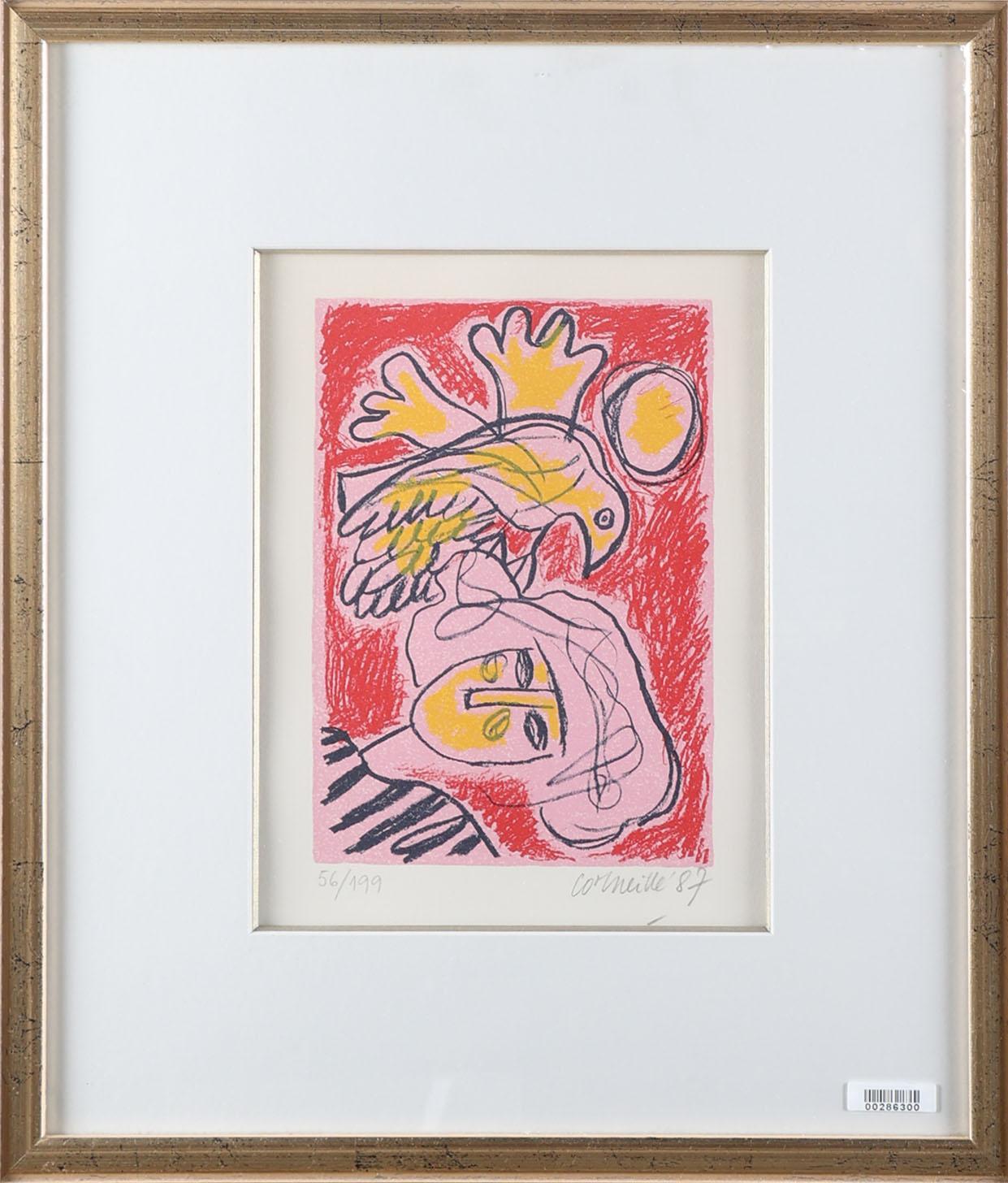 Guillaume Cornelis 'Corneille' van Beverloo (1922-2010), Zonder titel, hand gesigneerde lithografie, genummerd 56/199, gedateerd 1987, 25 x 19 cm.