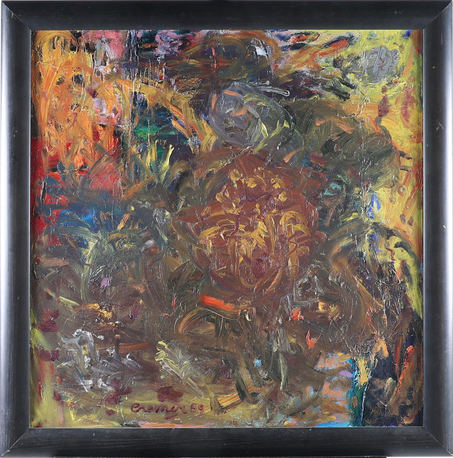 Jan Cremer (1940-2024), Abstract, olieverf op doek, gedateerd 1989, 70 x 70 cm.