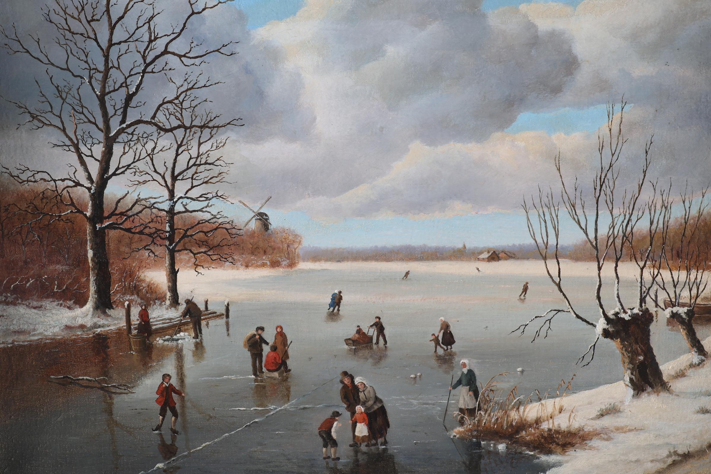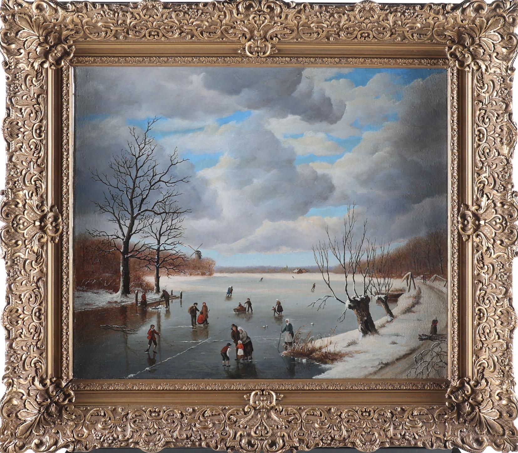 Onb.meester, IJsgezicht met personen, olieverf op doek, 60 x 50 cm.