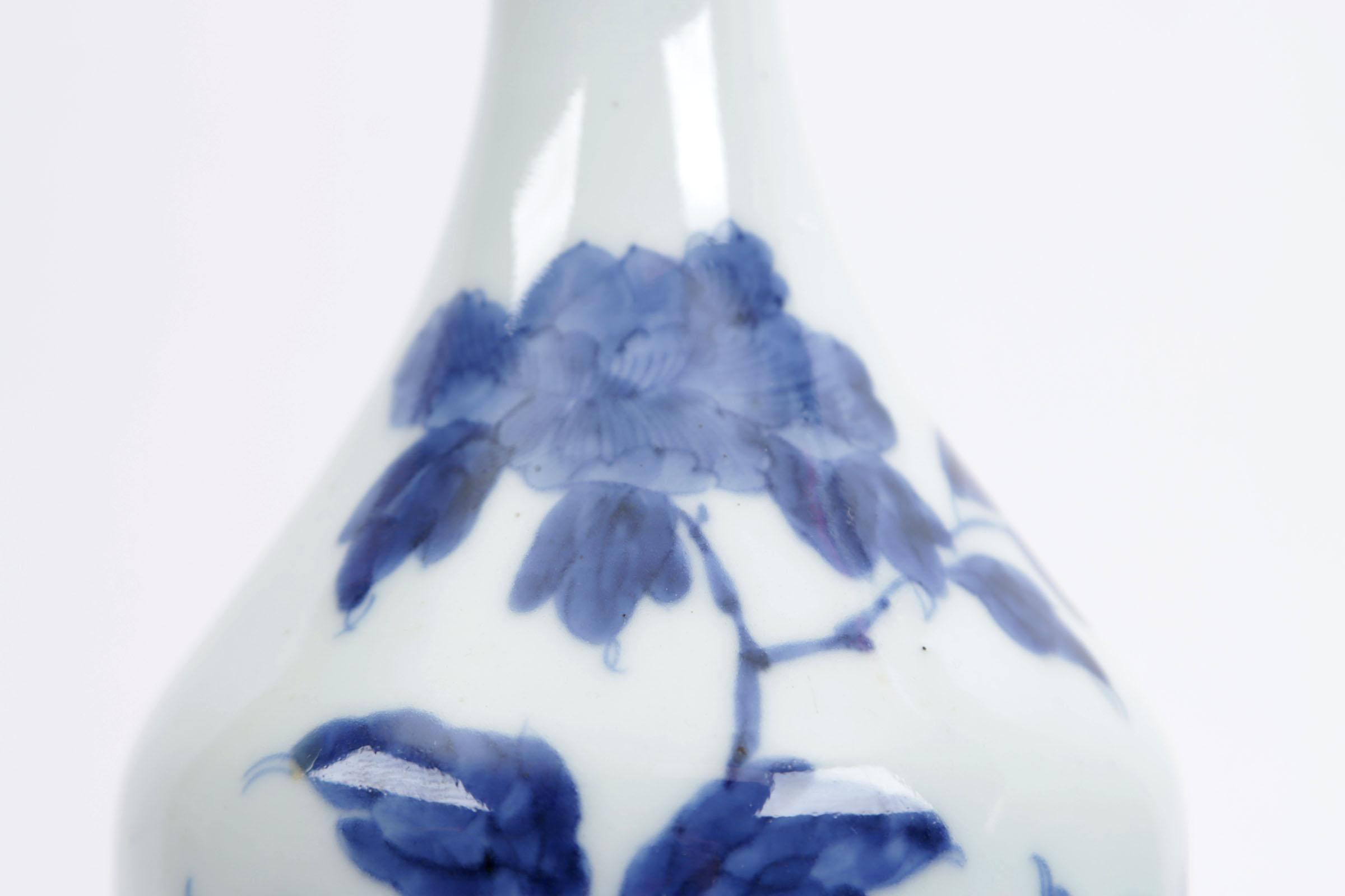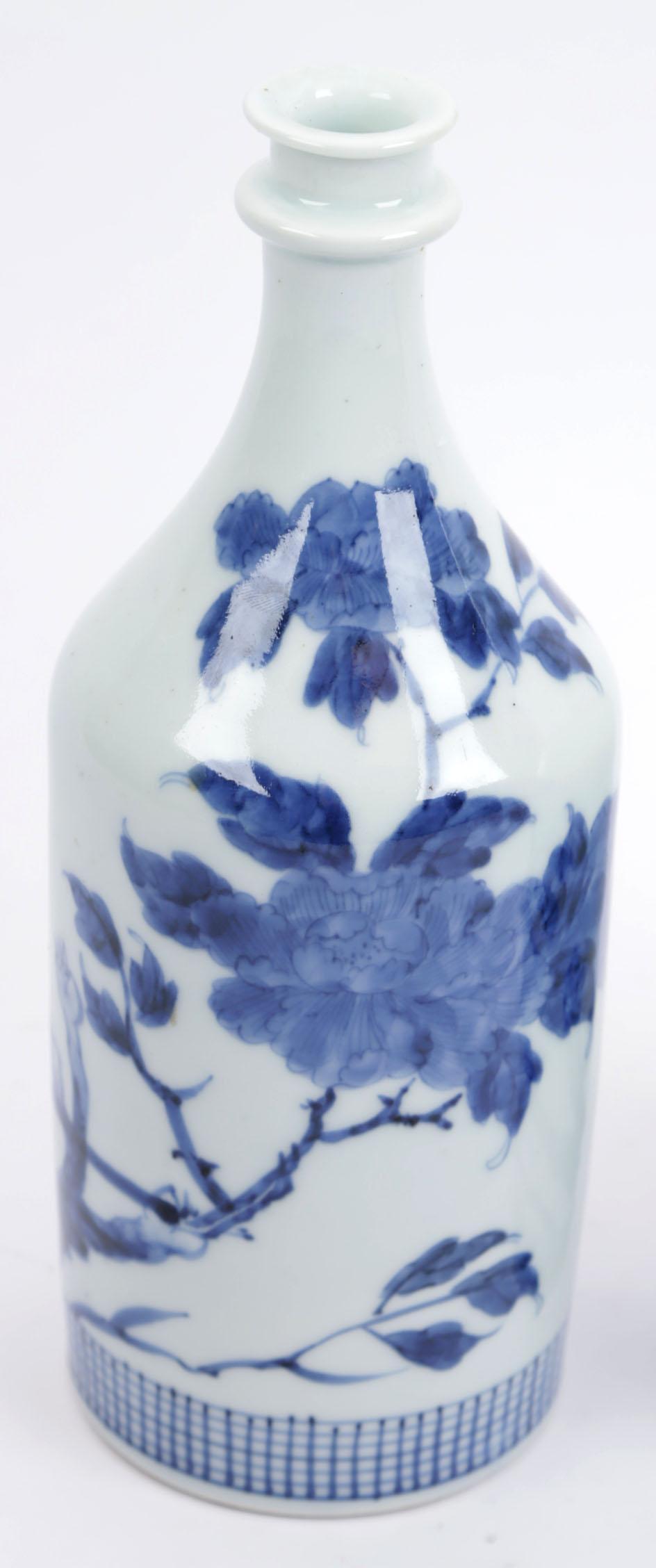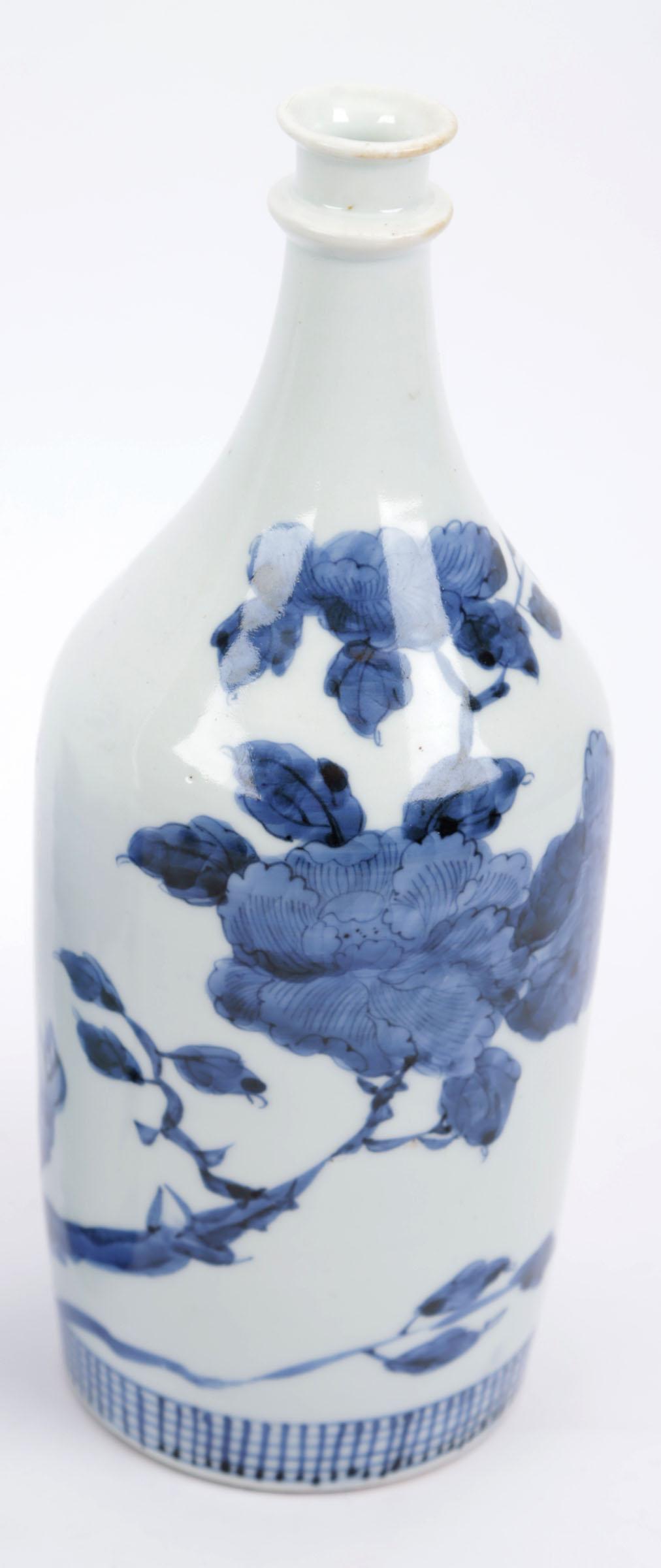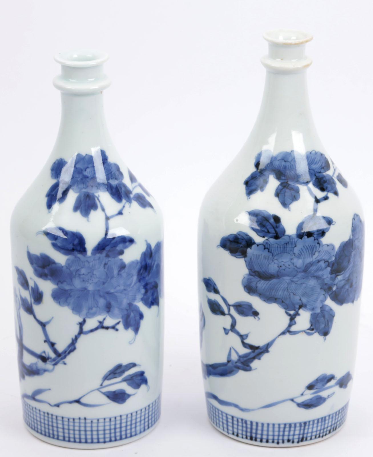 Stel blauw/wit gedecoreerde Japans flessen, h.24 cm.