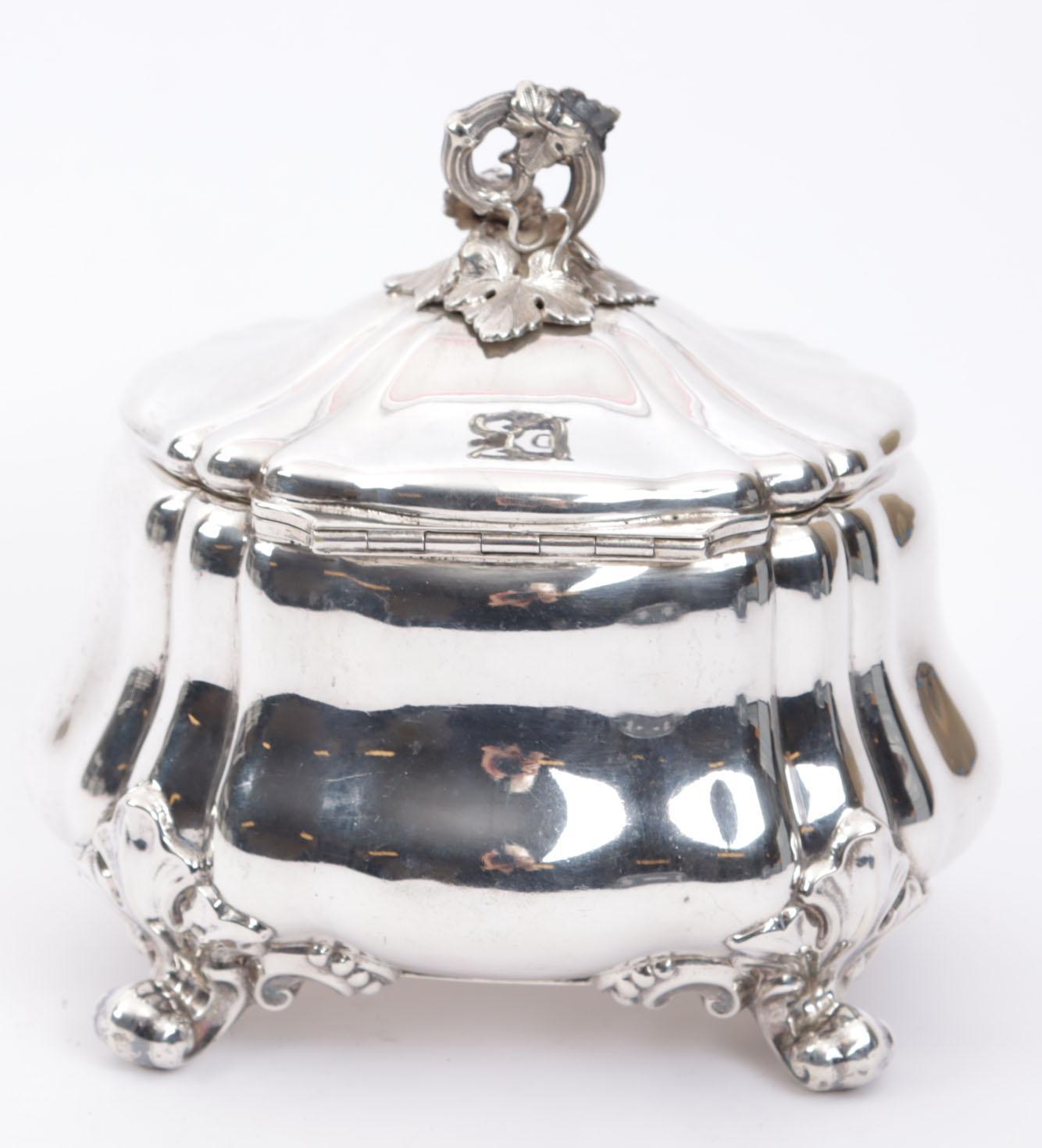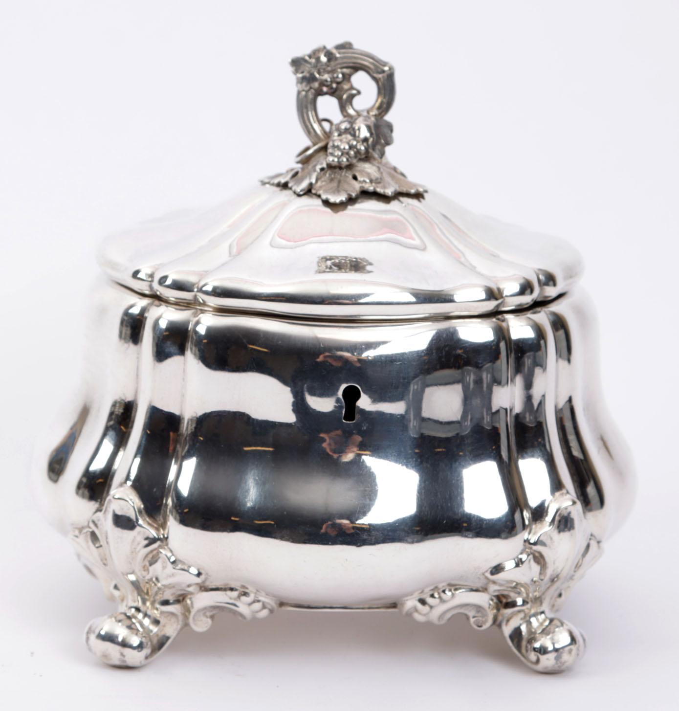 Gebombeerde zilveren theebus (sleutel manco), 360 gram