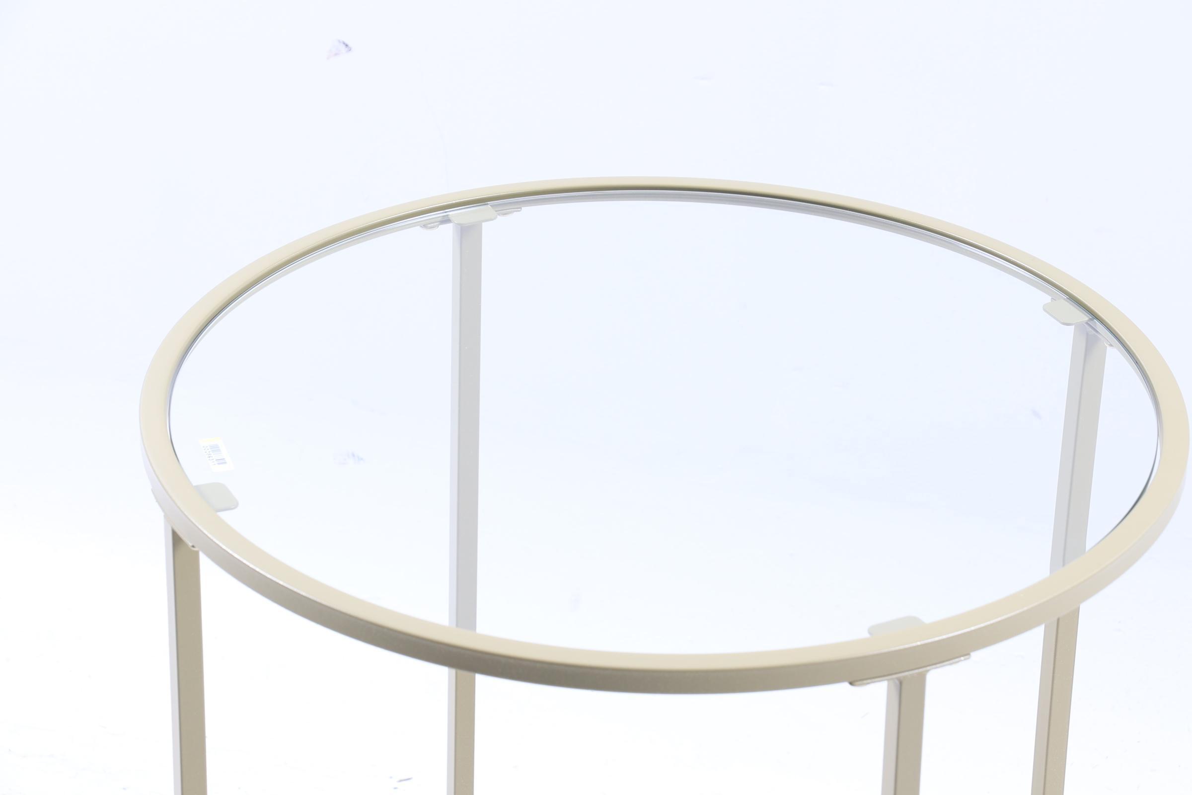 Metalen bijzettafel met glazen blad, h.56 x diam.50 cm.