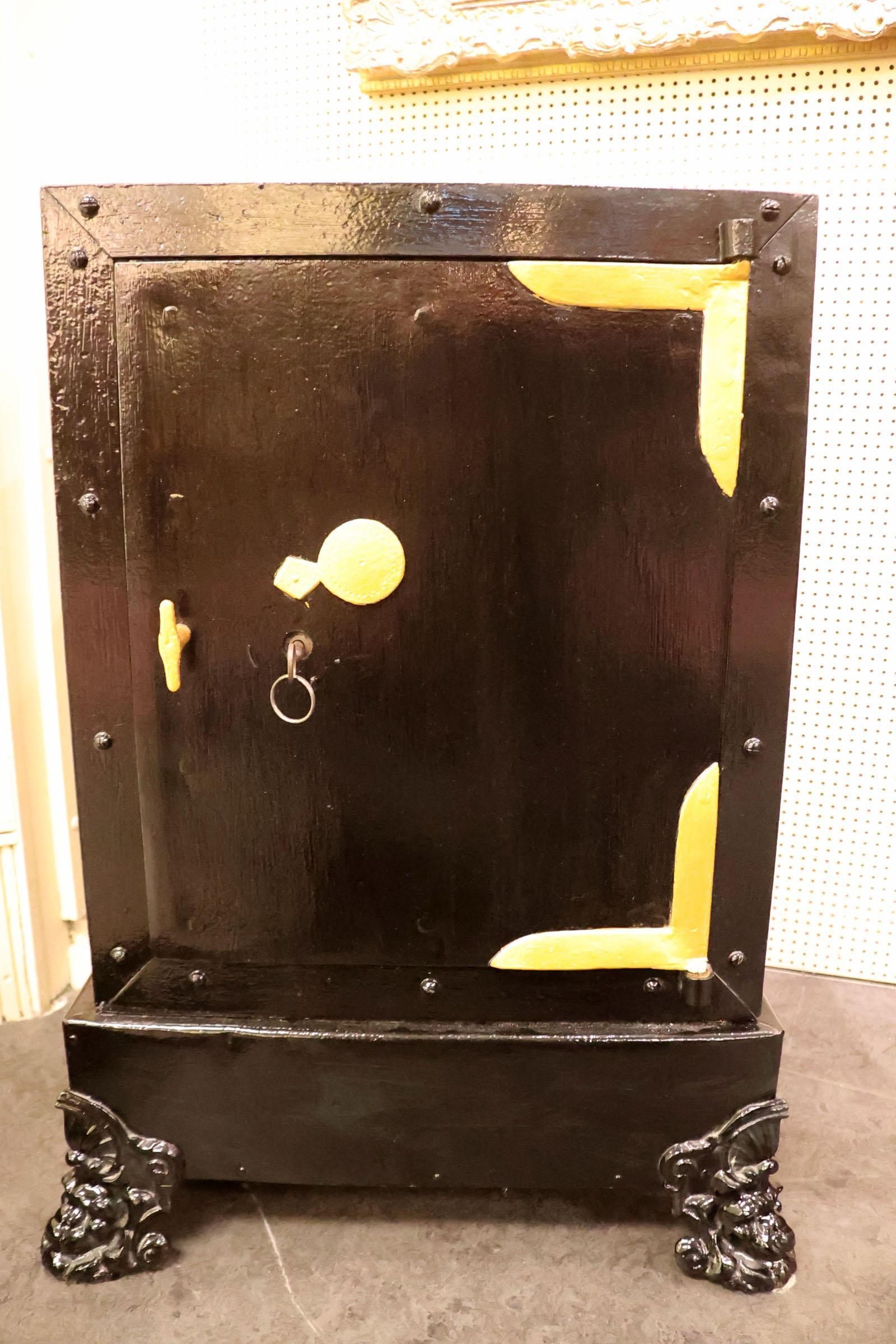 Oude zwart/goud geschilderde ijzeren kluis, h.75 x b.51 x d.42 cm.