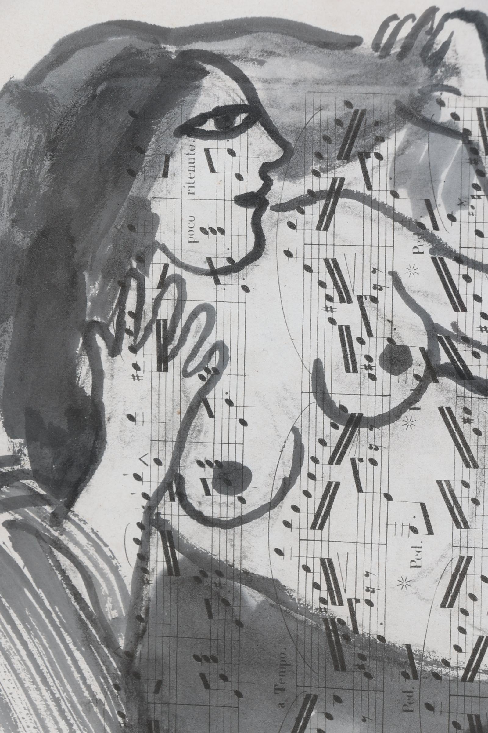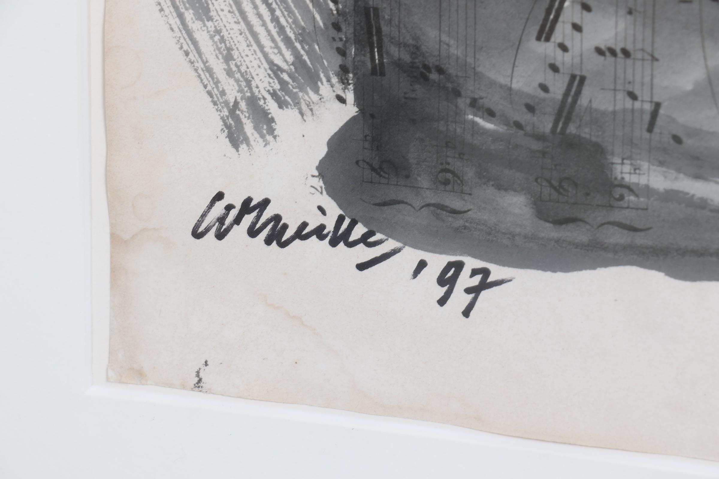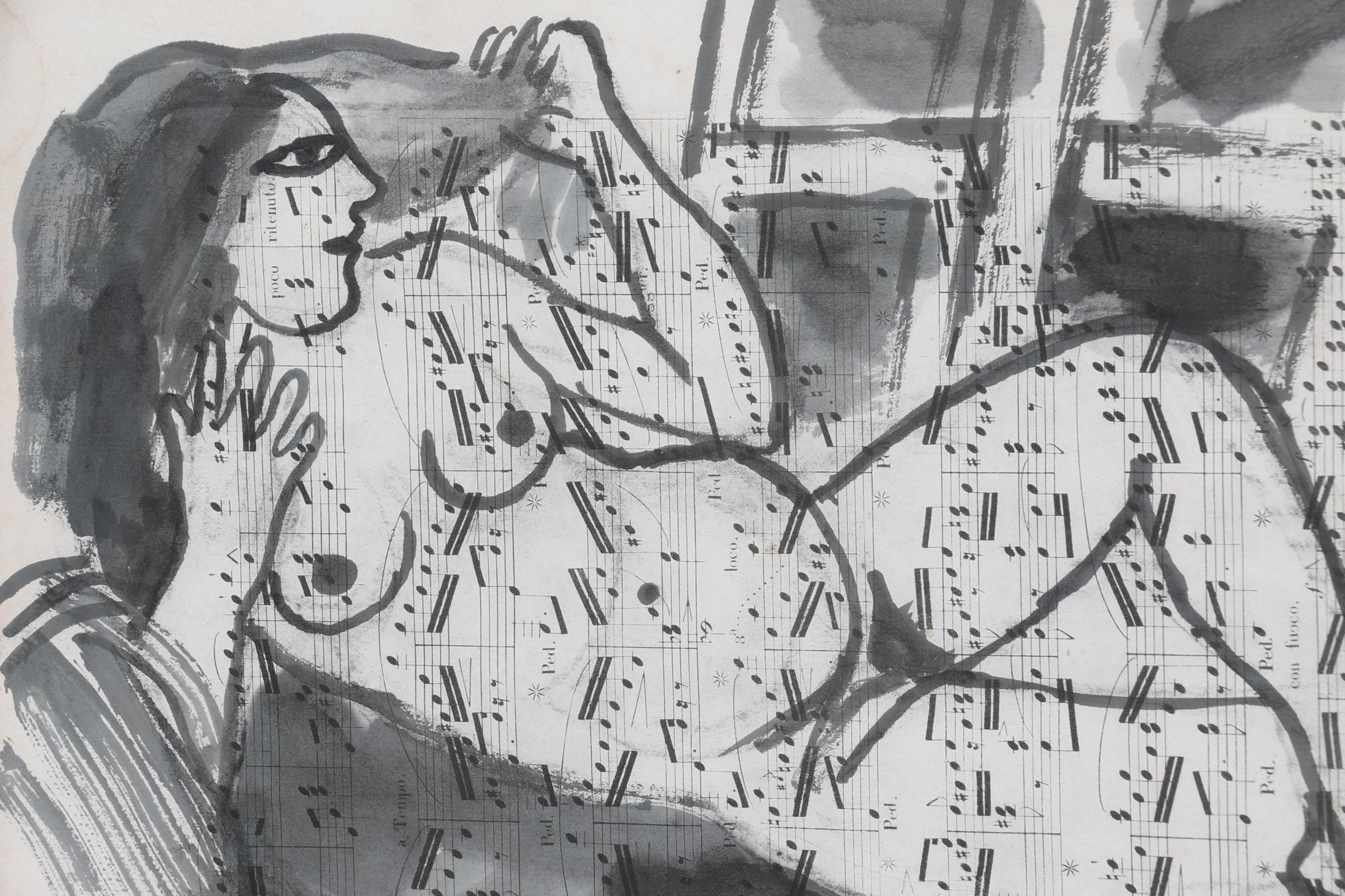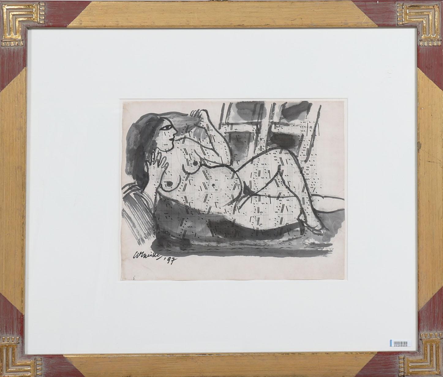 'Corneille', alias van Cornelis Guillaume van Beverloo (1922- 2010), Liggend Naakt (1997), gemengde techniek op oude partituren, gesigneerd en gedateerd 'Corneille, '97', 33,5 x 27 cm. of 67 x 57 cm. Provenance: collectie kunsthandel Elisabeth den Bieman de Haas, rechtsreeks verworven bij de kunstenaar in Parijs. Tentoonstellingen: Maison des Arts, Tunis, Le Belvédère, 10-30 oktober 1998; Szépmúvészeti Museum of Fine Arts, Budapest, mei - september 2002; Museum Jan van der Togt Amstelveen 2015/ 2016