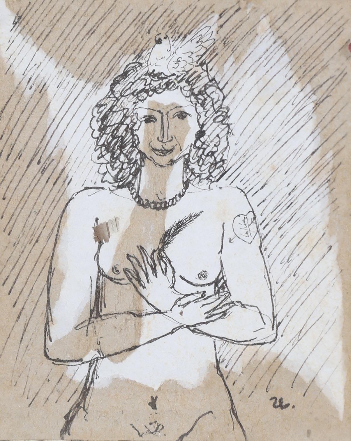 Toegeschreven aan 'Corneille', alias van Cornelis Guillaume van Beverloo (1922- 2010), Zonder titel (1922), opgehoogde inkttekening op karton, 16 x 13 cm. Provenance: collectie Kunsthandel Elisabeth den Bieman de Haas, Amsterdam