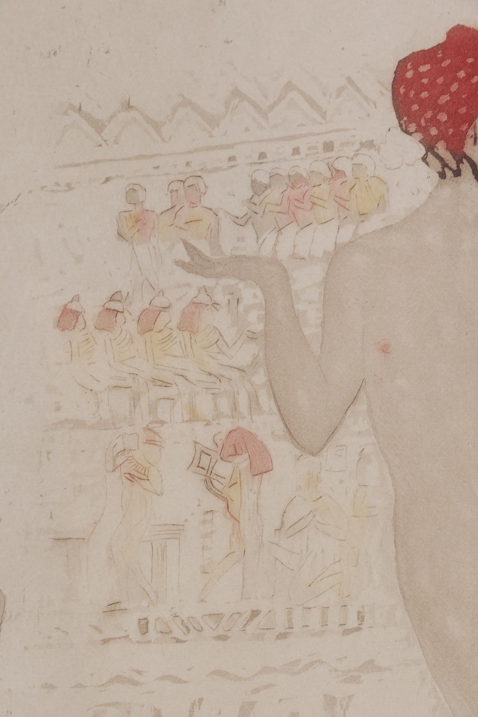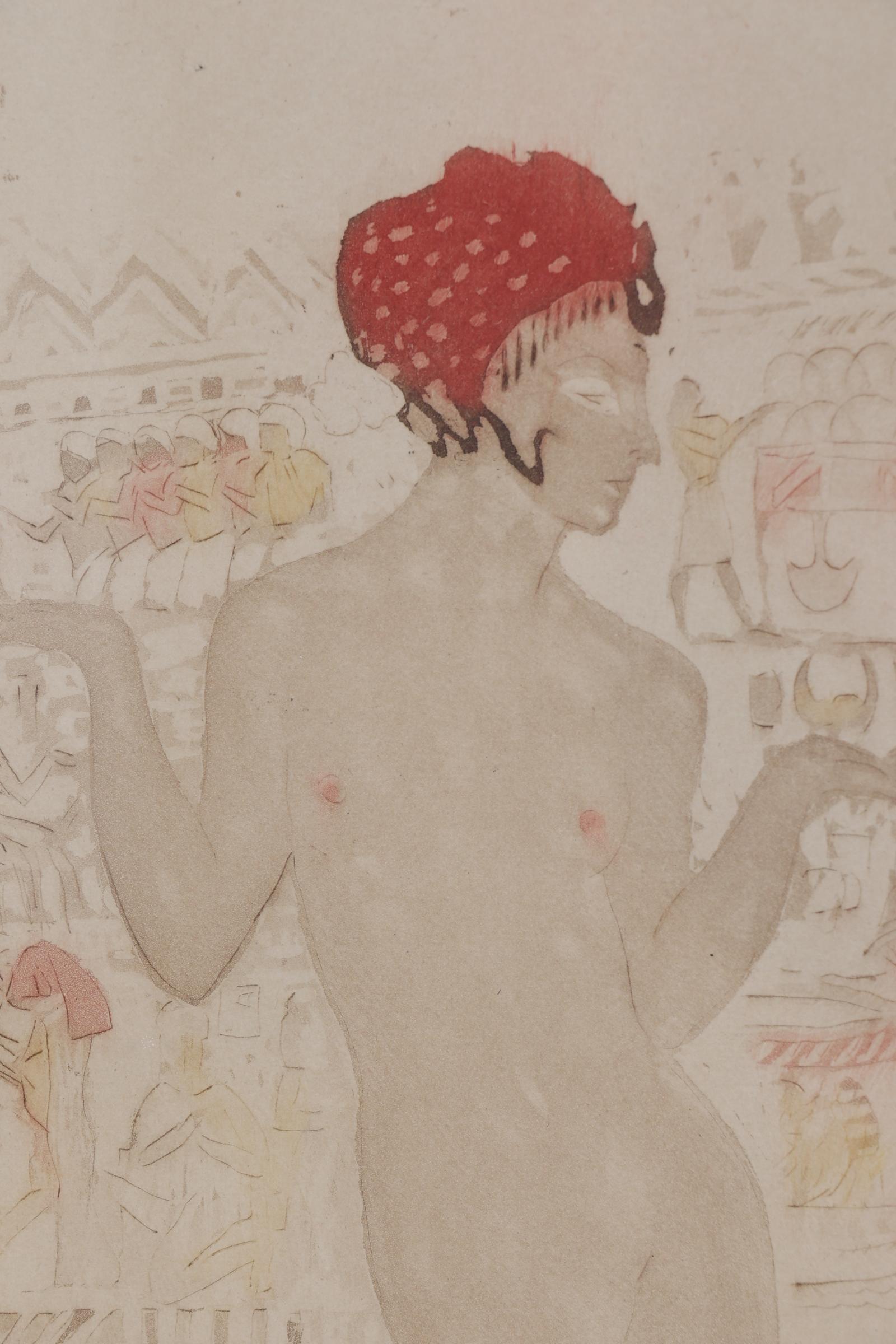 Onb. meester, Naakt met rode muts tegen Egyptische achtergond, aquarel op papier, 14 x 19 cm. Provenance: collectie Kunsthandel Elisabeth den Bieman de Haas