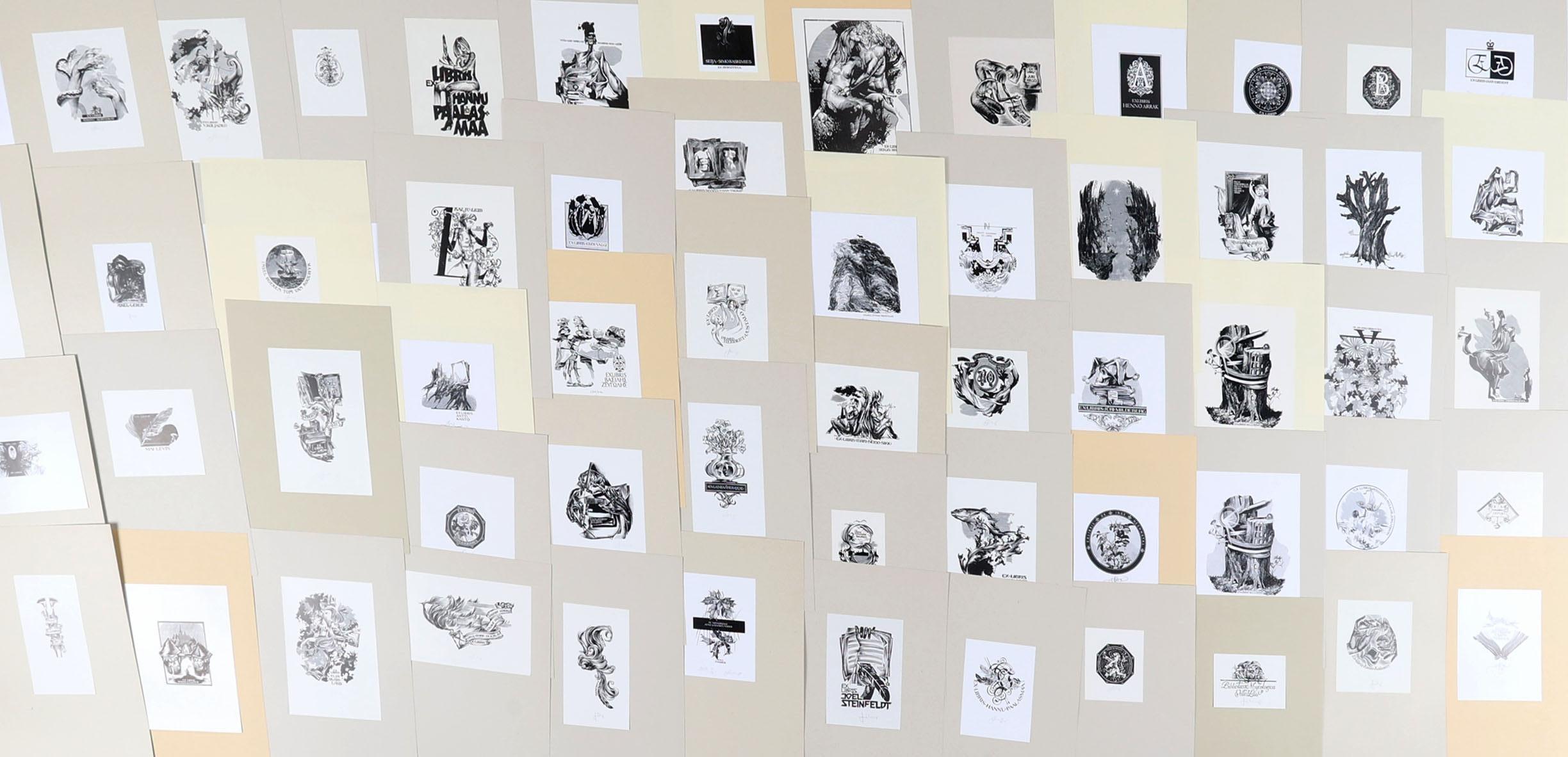 Loehmus, L., plm. 55 exlibris, houtgravures, grotendeels gesigneerd, opgeplakt.