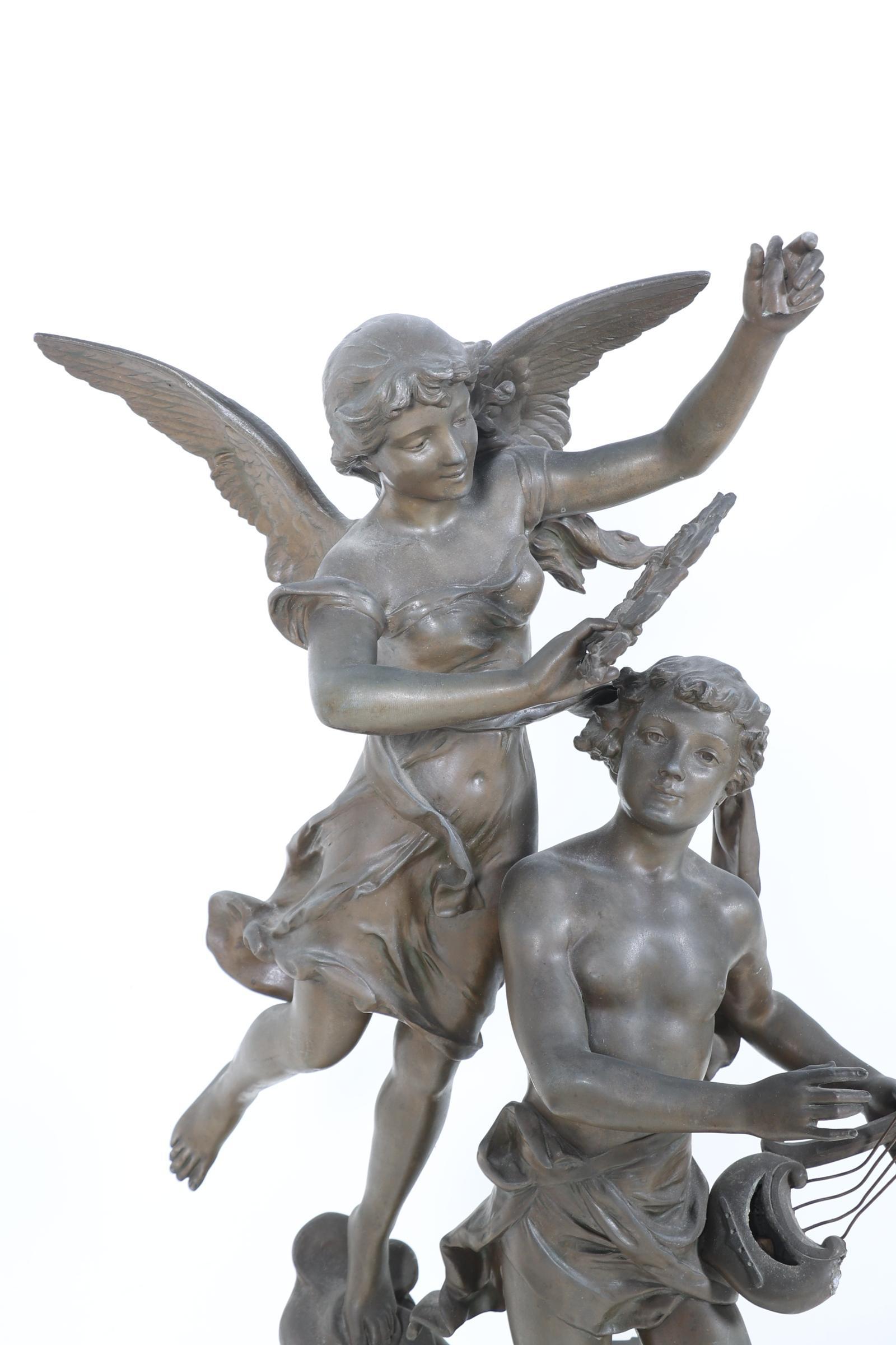 Legering sculptuur van een man en vrouw, h.90 cm. (defecten)