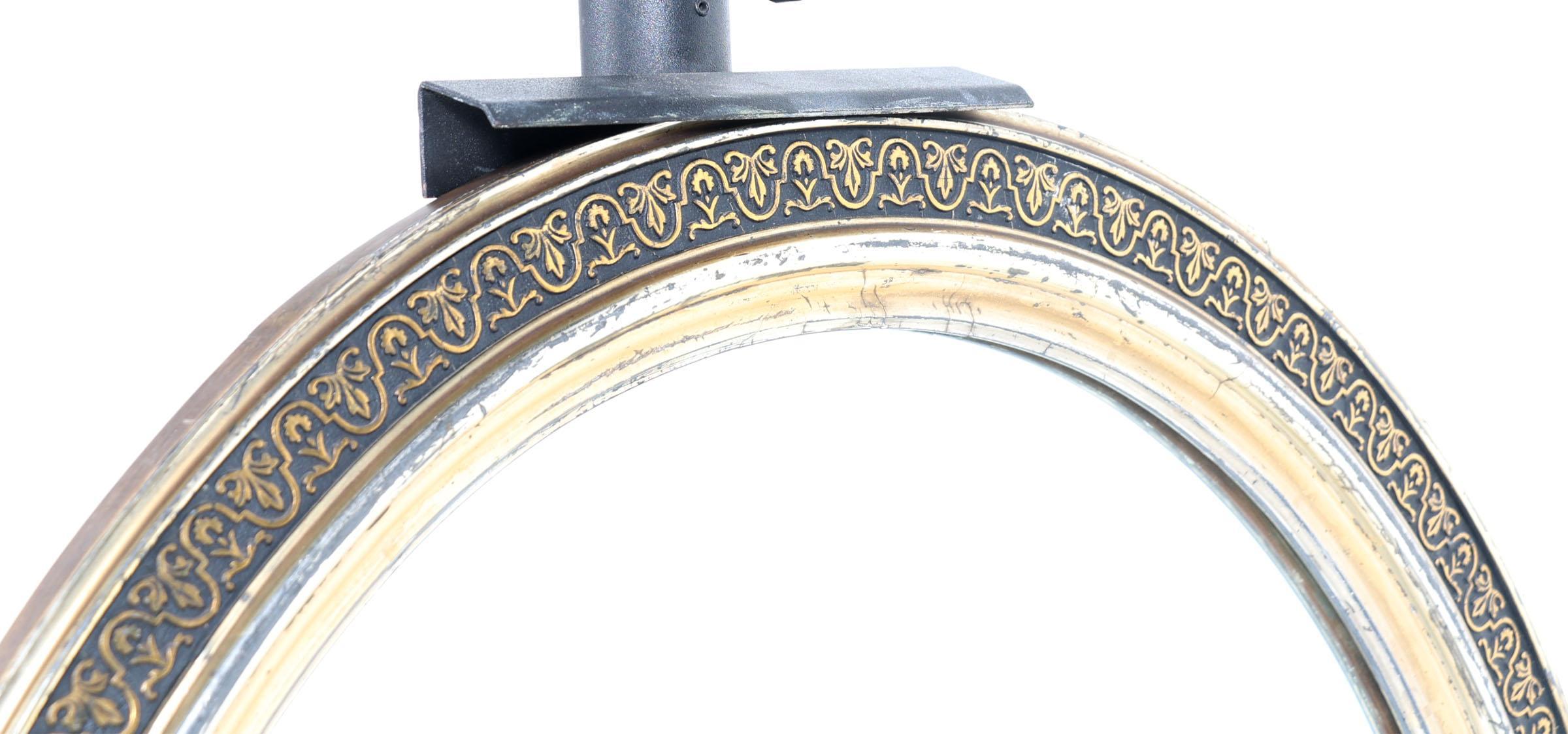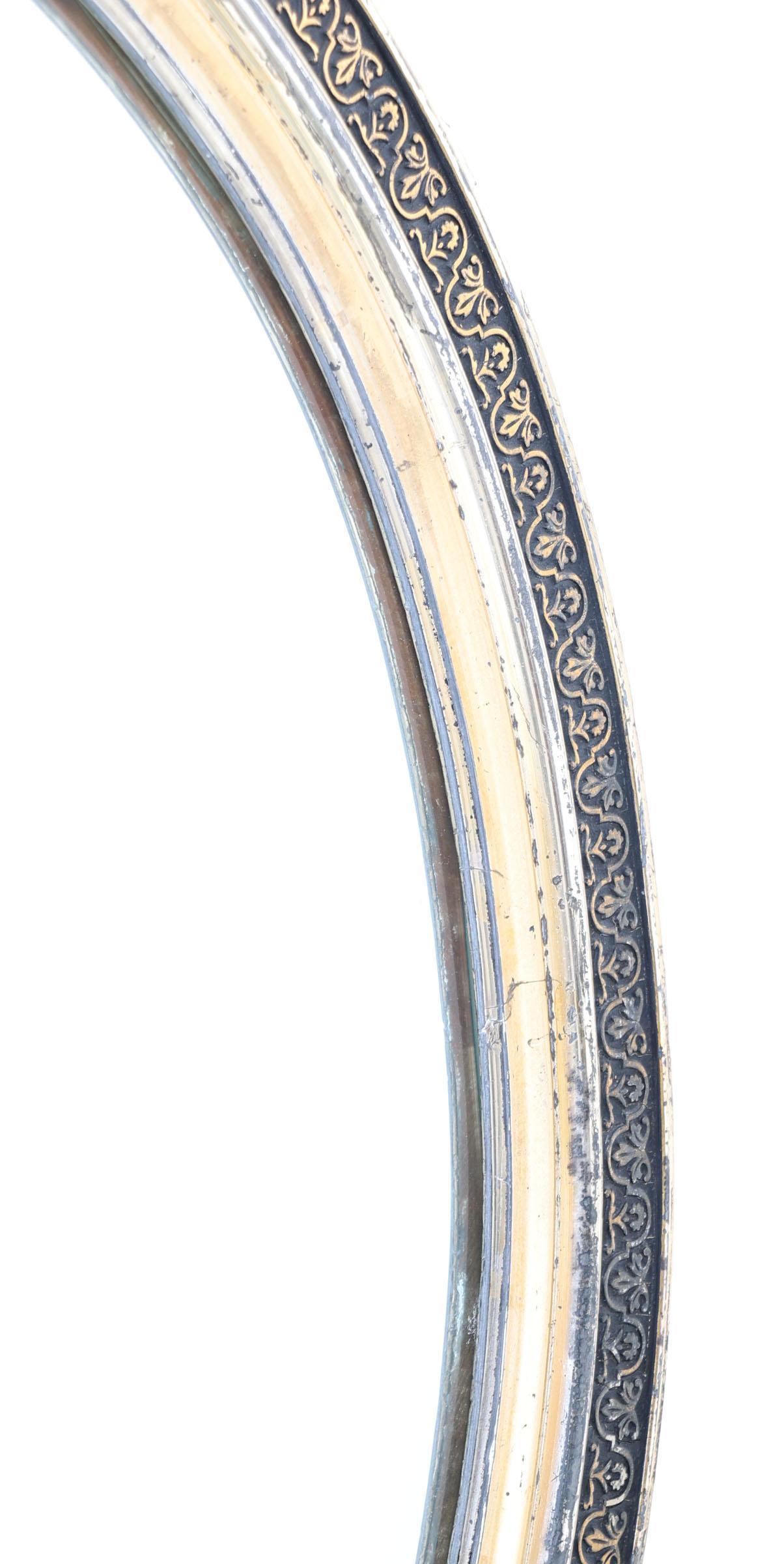 Oude ovale spiegel in zilver/goudkleurige lijst, 77 x 65 cm.