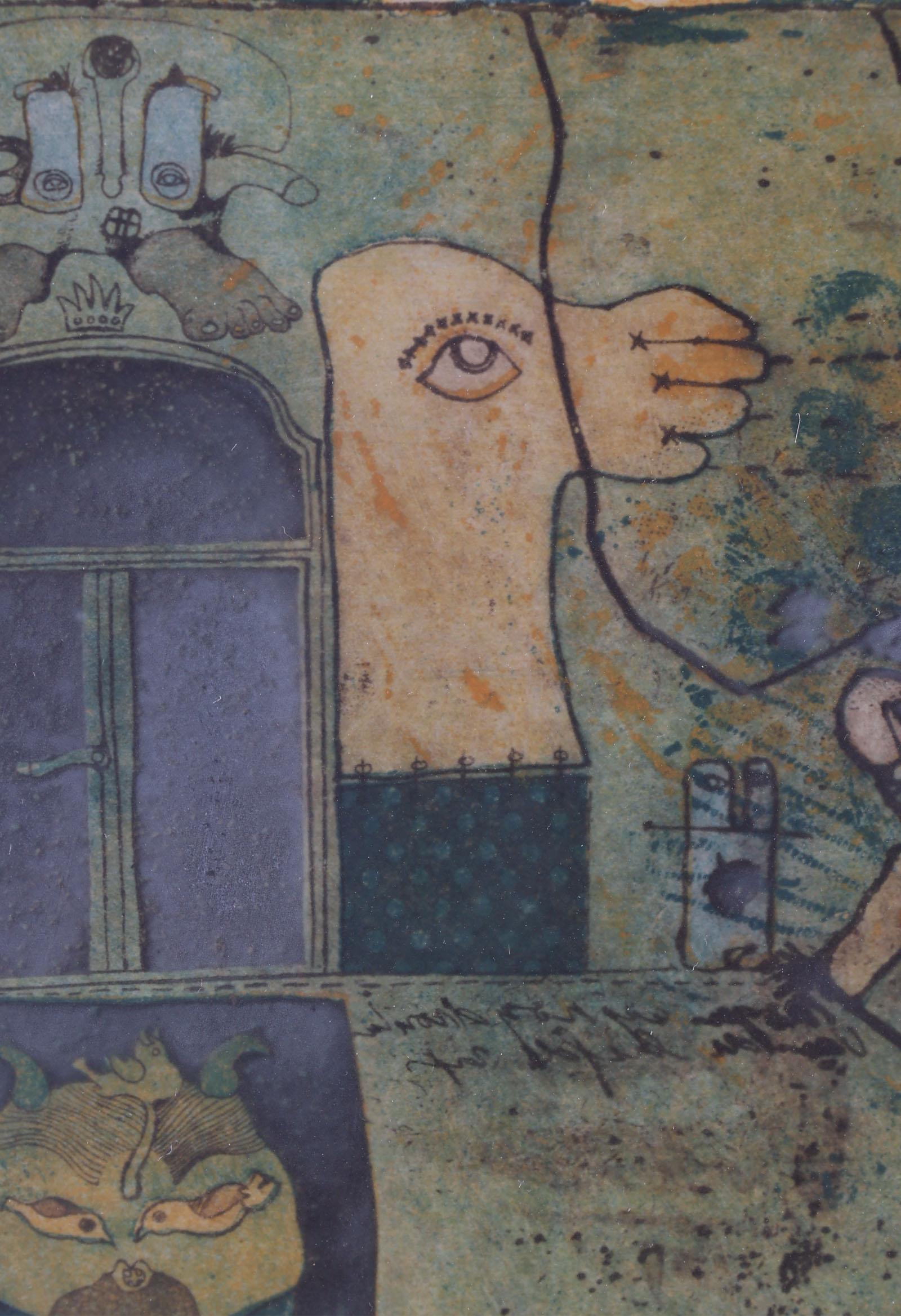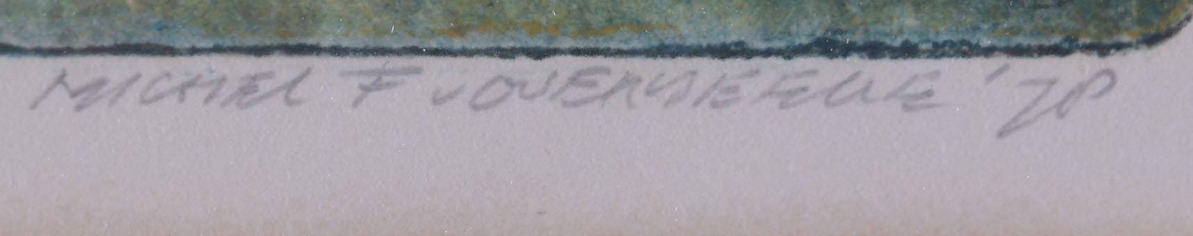 Michel van Overbeeke (1942-2024), 'Uitgeraapte muren', kleurenets, gedateerd 1978, genummerd 29/50, 25 x 30 cm.