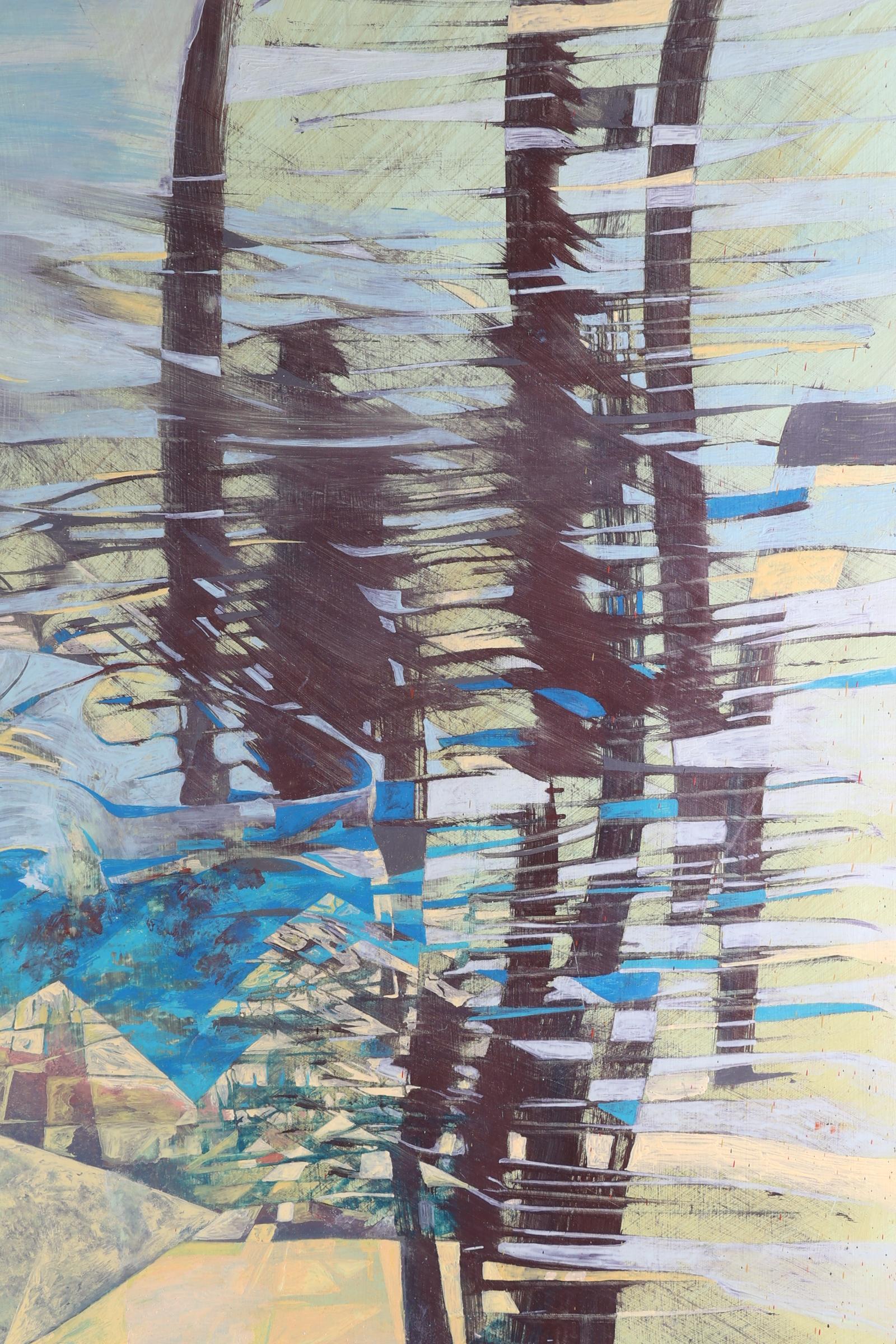 Onb.meester, Futuristisch abstractie, olieverf op board, 89 x 89 cm.