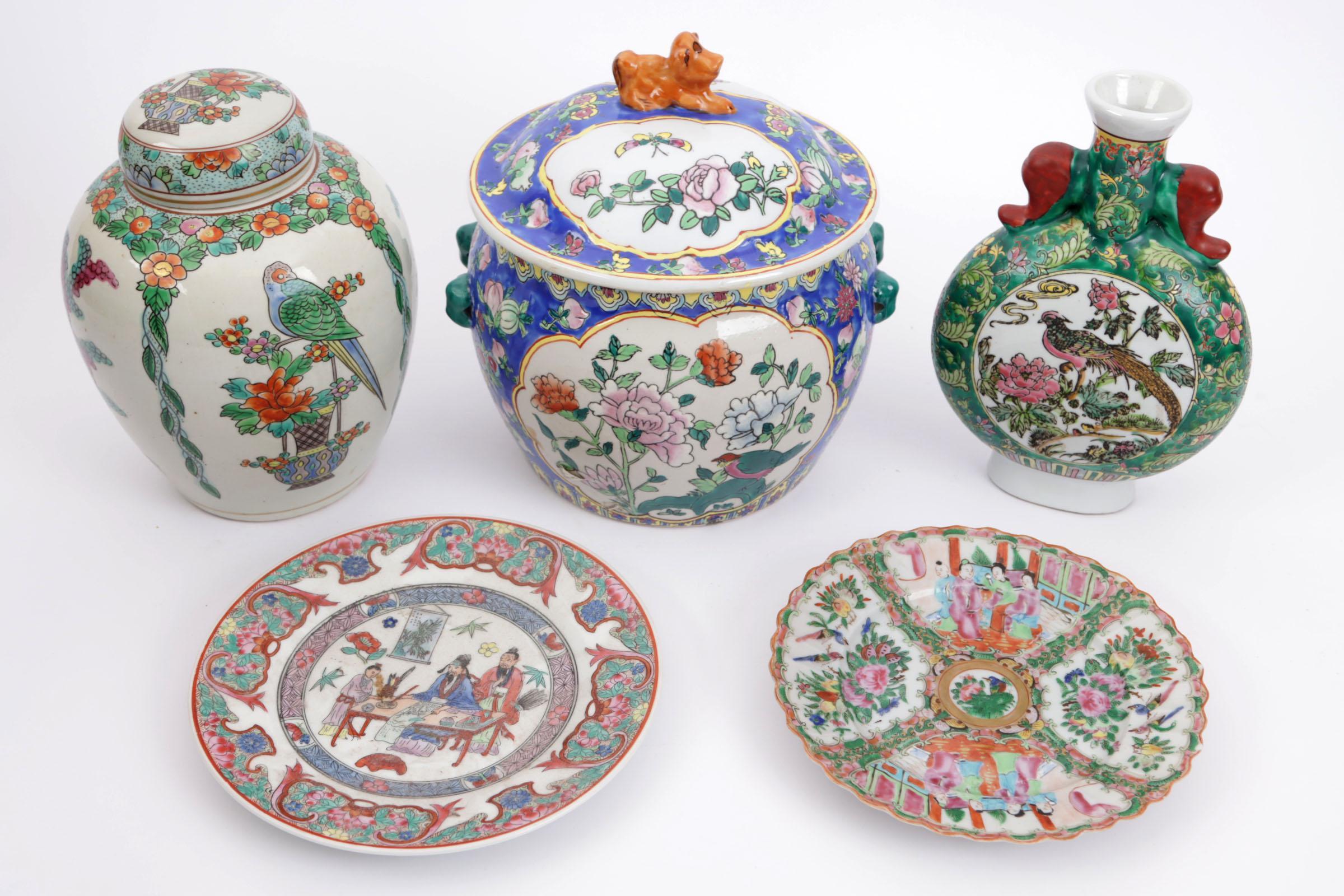 Koop divers Chinees porselein (blauwe dekselpot defect)