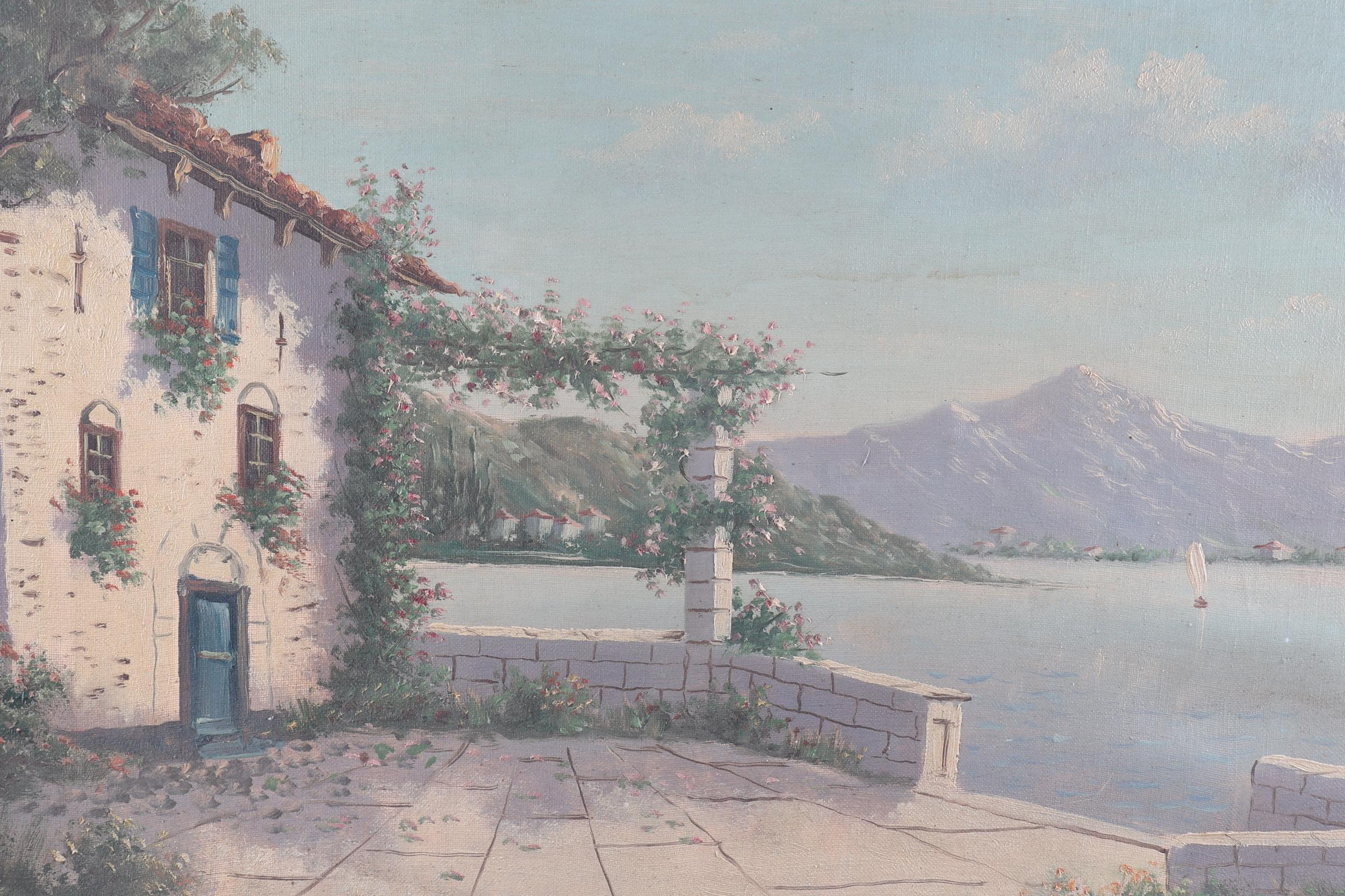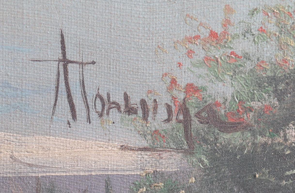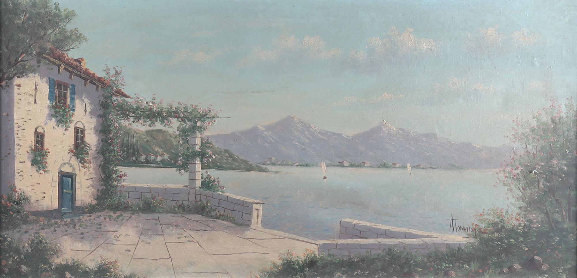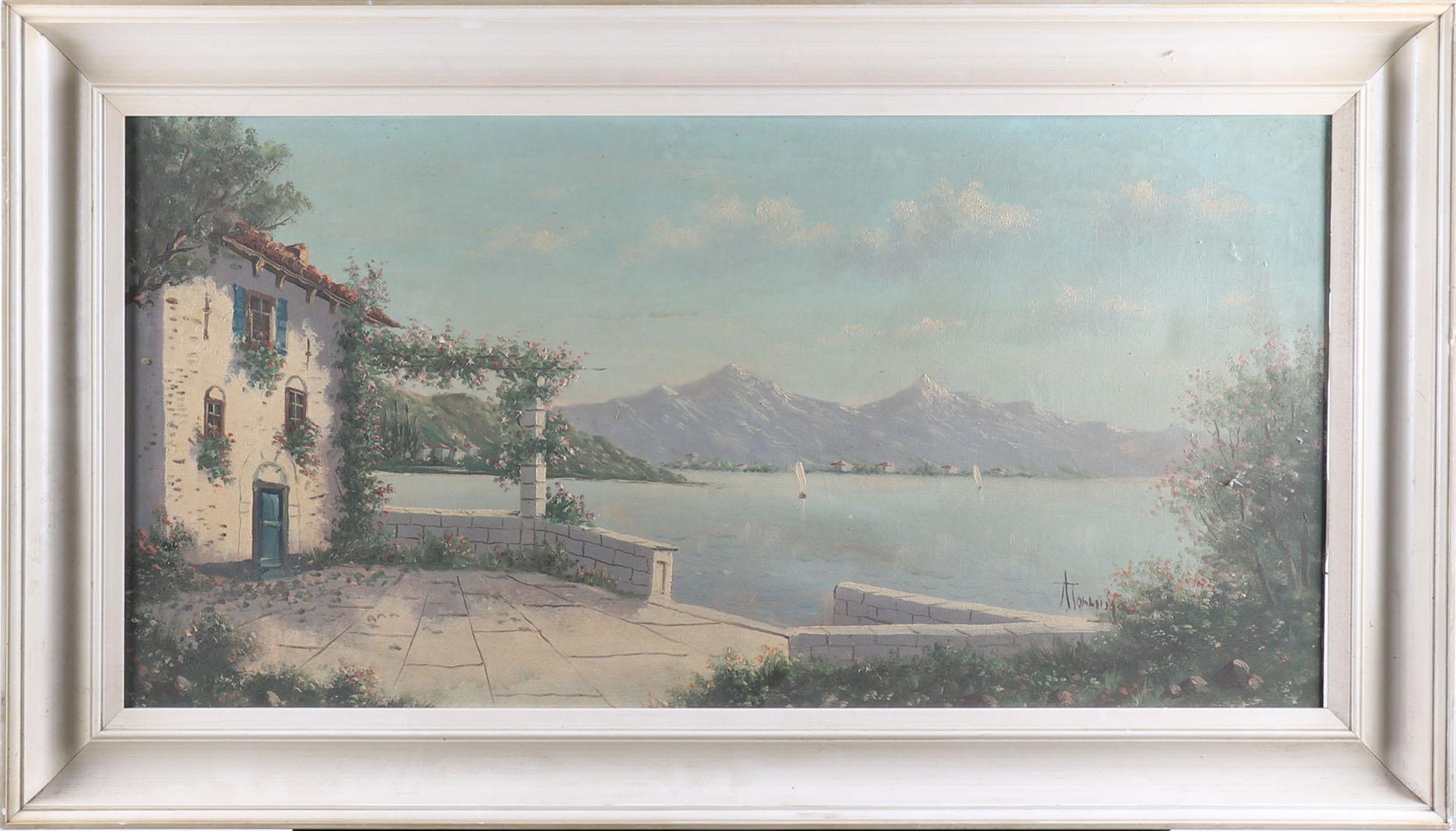 Albert Torringa, Mediterraan zeegezicht, olieverf op doek, 40 x 80 cm.