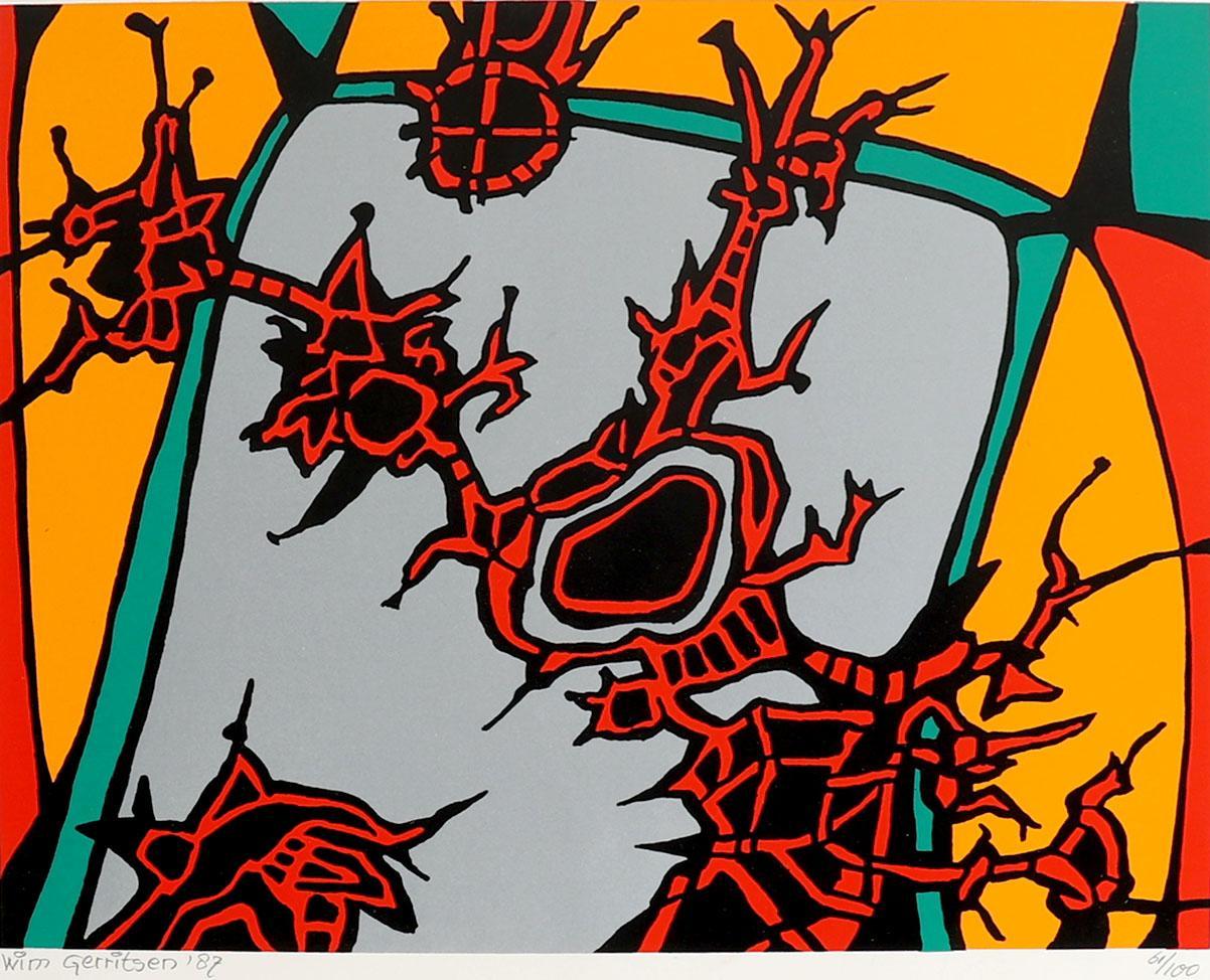 Wim Gerritsen, Abstract, zeefdruk, nr.61/100, gedateerd 1987, 40 x 50 cm.