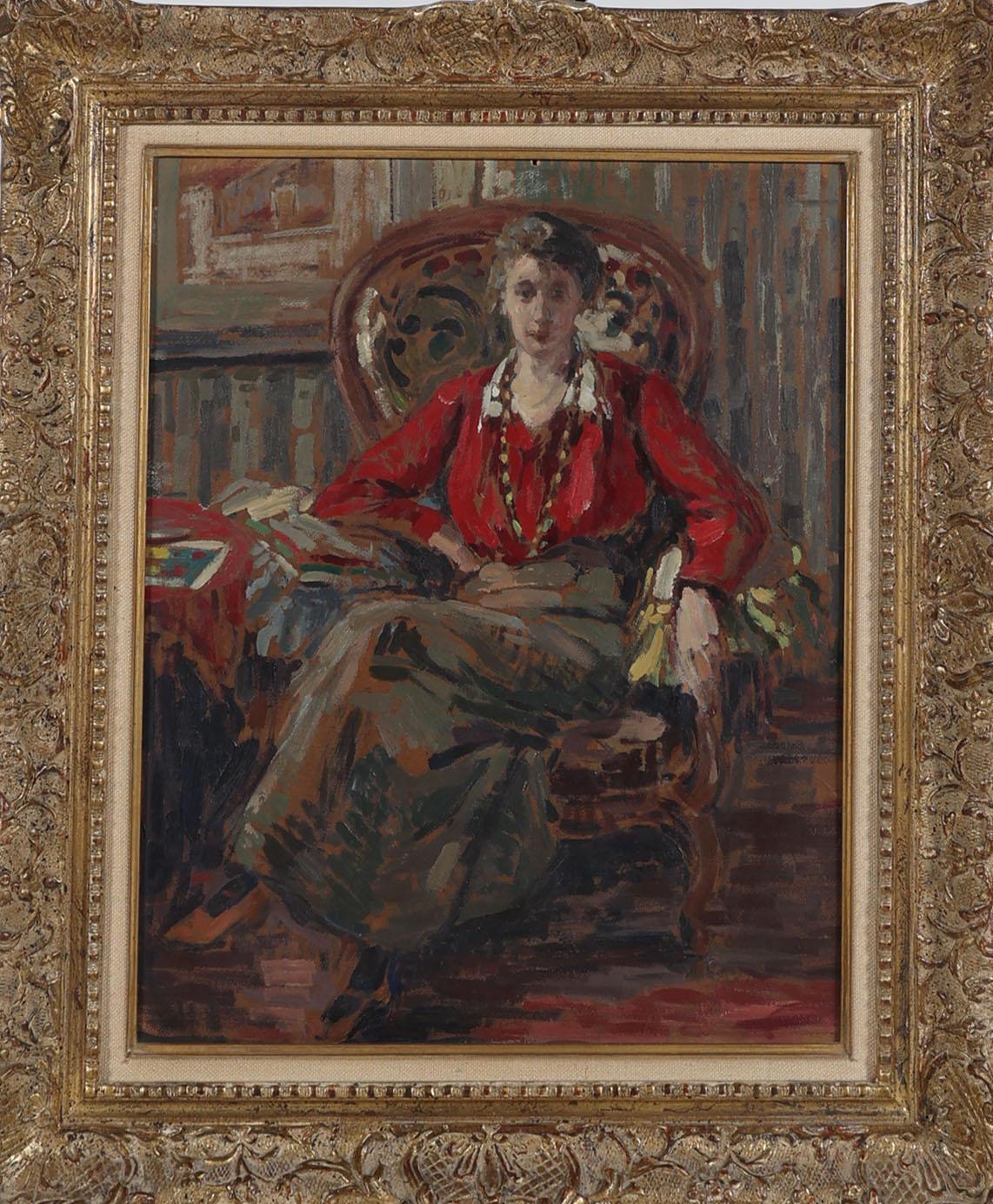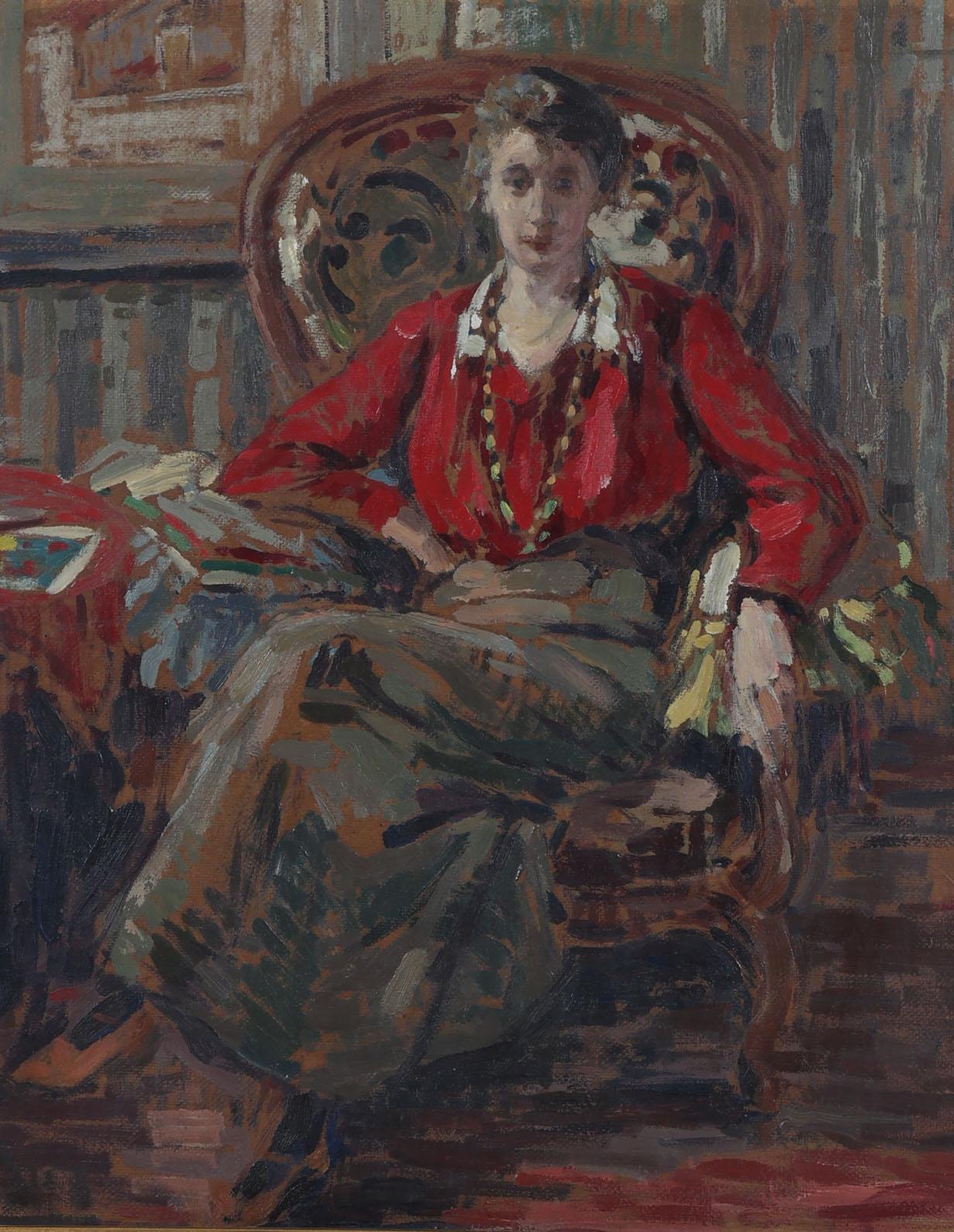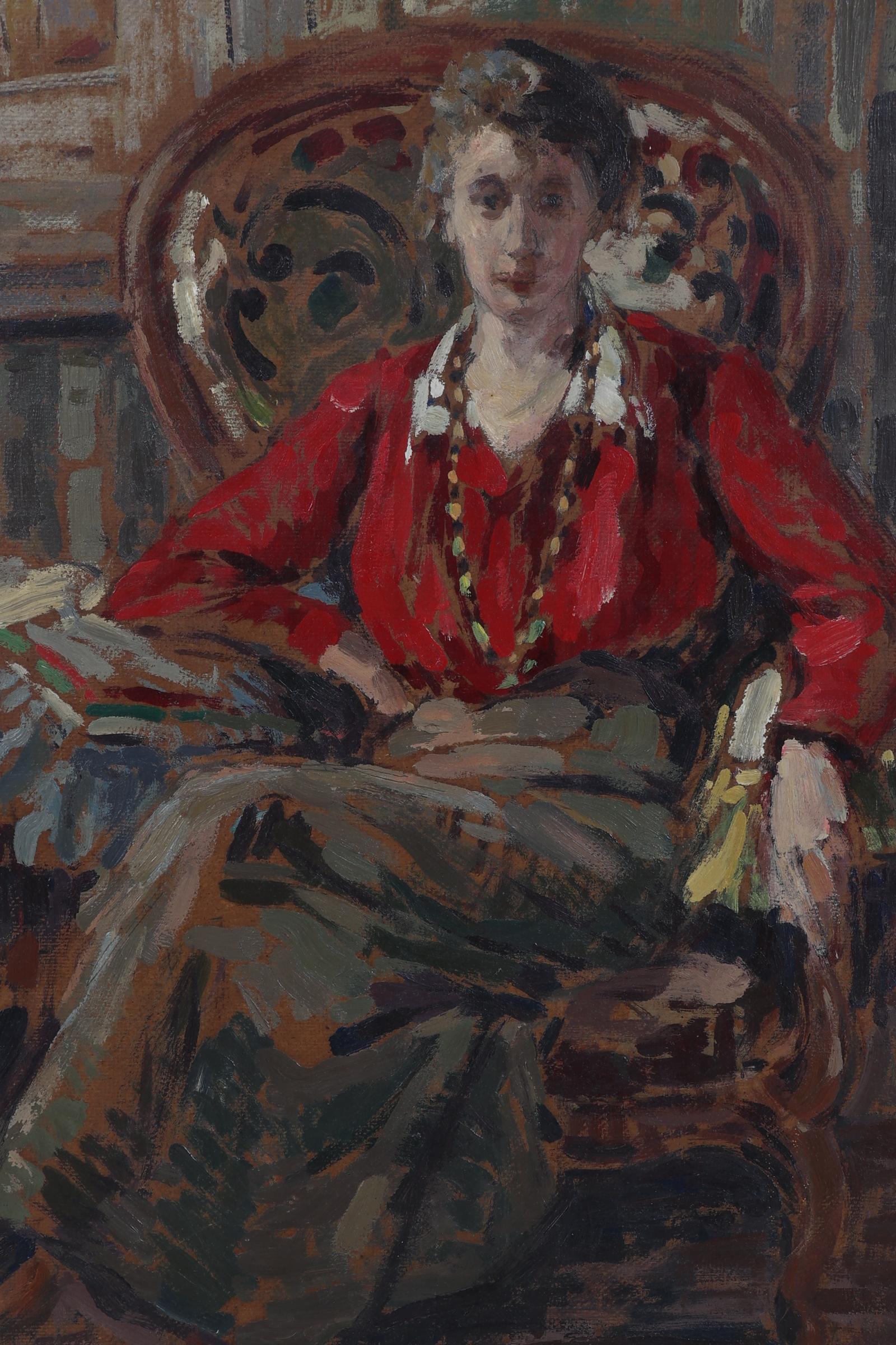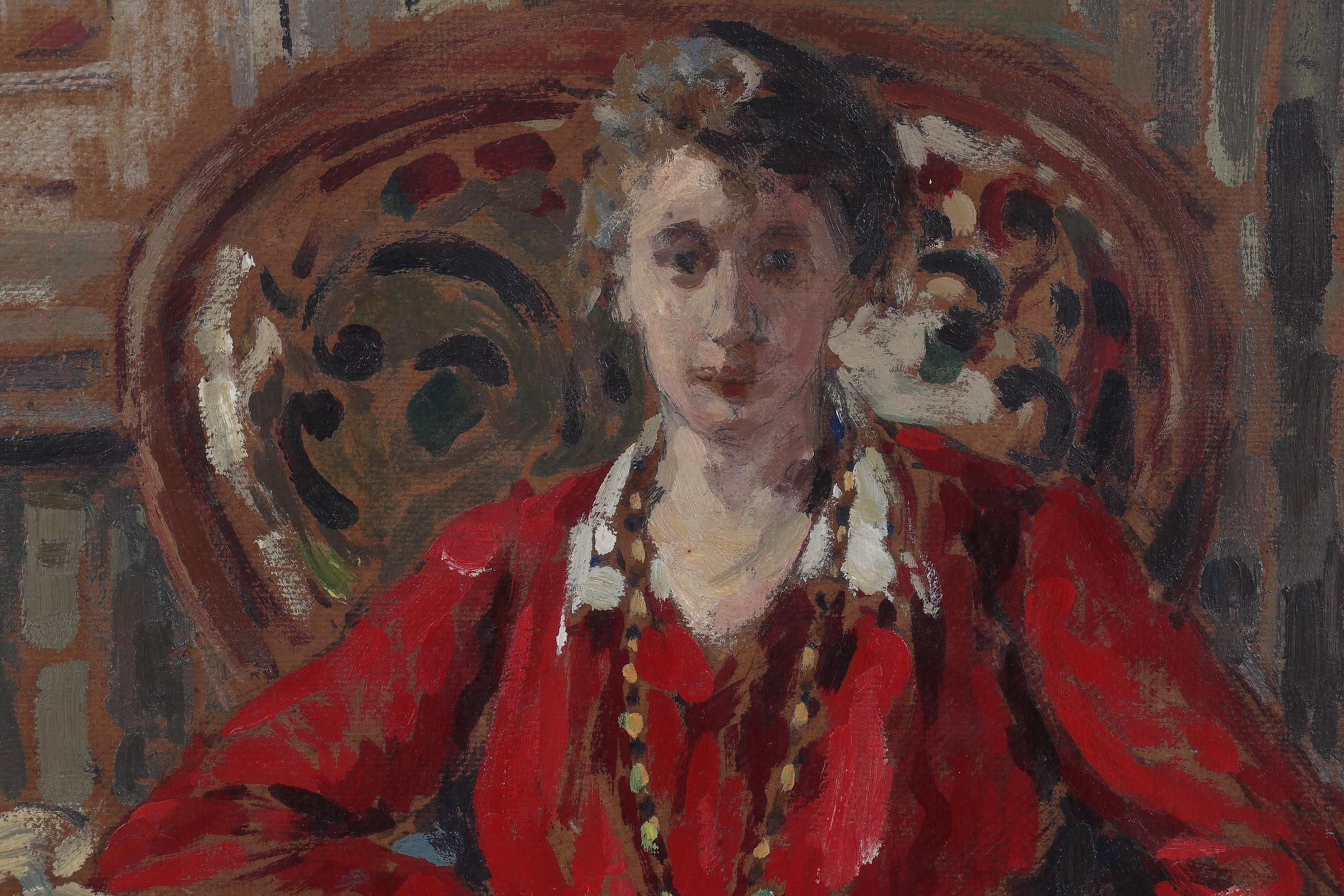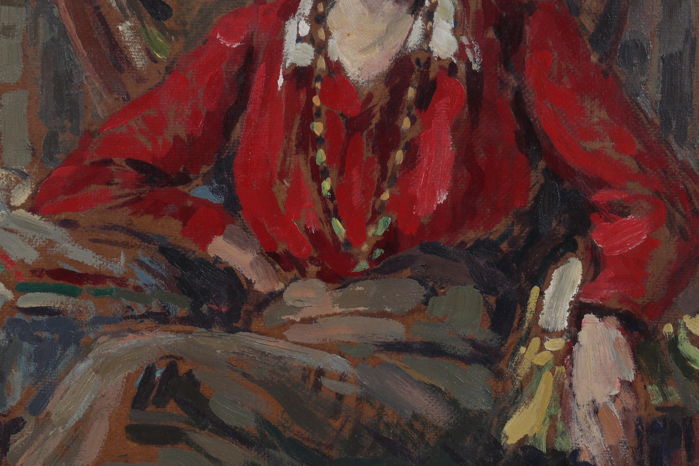 Jeune femme a la veste rouge, 1910, olieverf op board, 54 x 44 cm., niet gesigneerd, provenance particuliere collectie/Campo & Campo, 19 oktober 1999