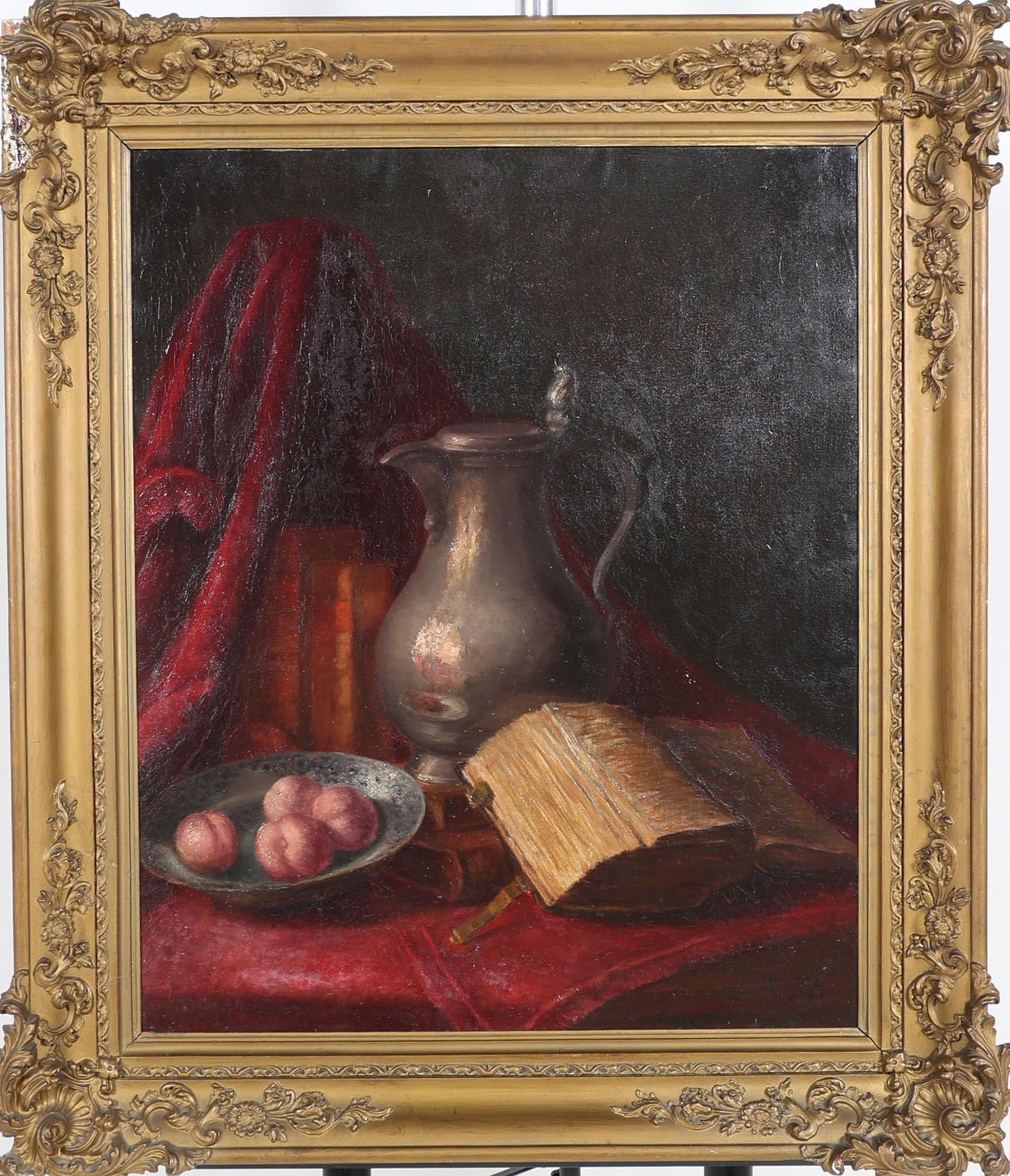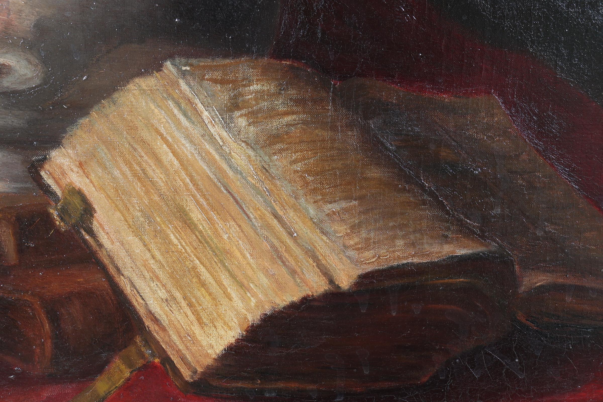 B. van der Woude, Stilleven met boek en tinnen kan, olieverf op doek, 73 x 60 cm., gedateerd 1907