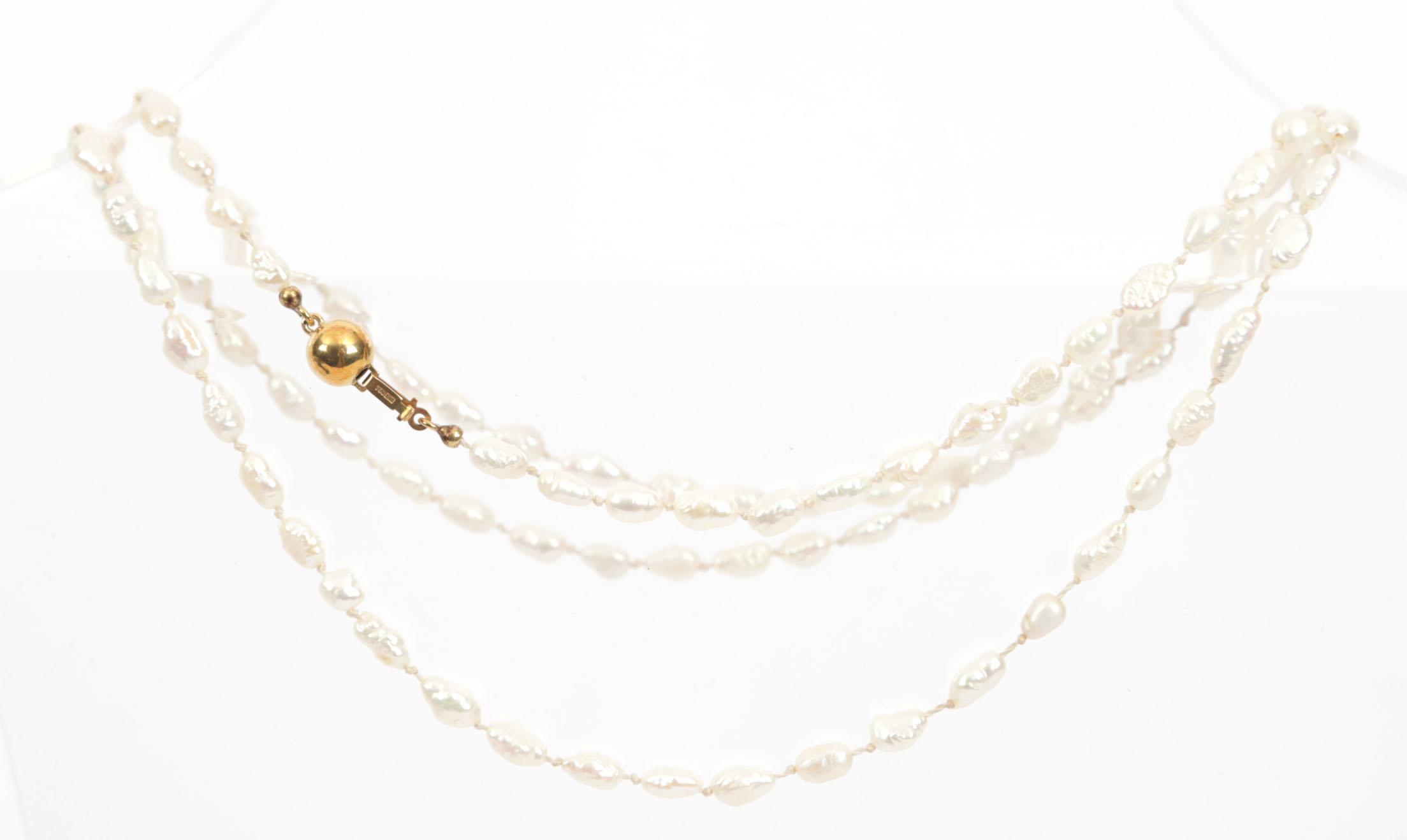 Zoetwaterparel collier met 18 kt. gouden slot, L.72 cm.