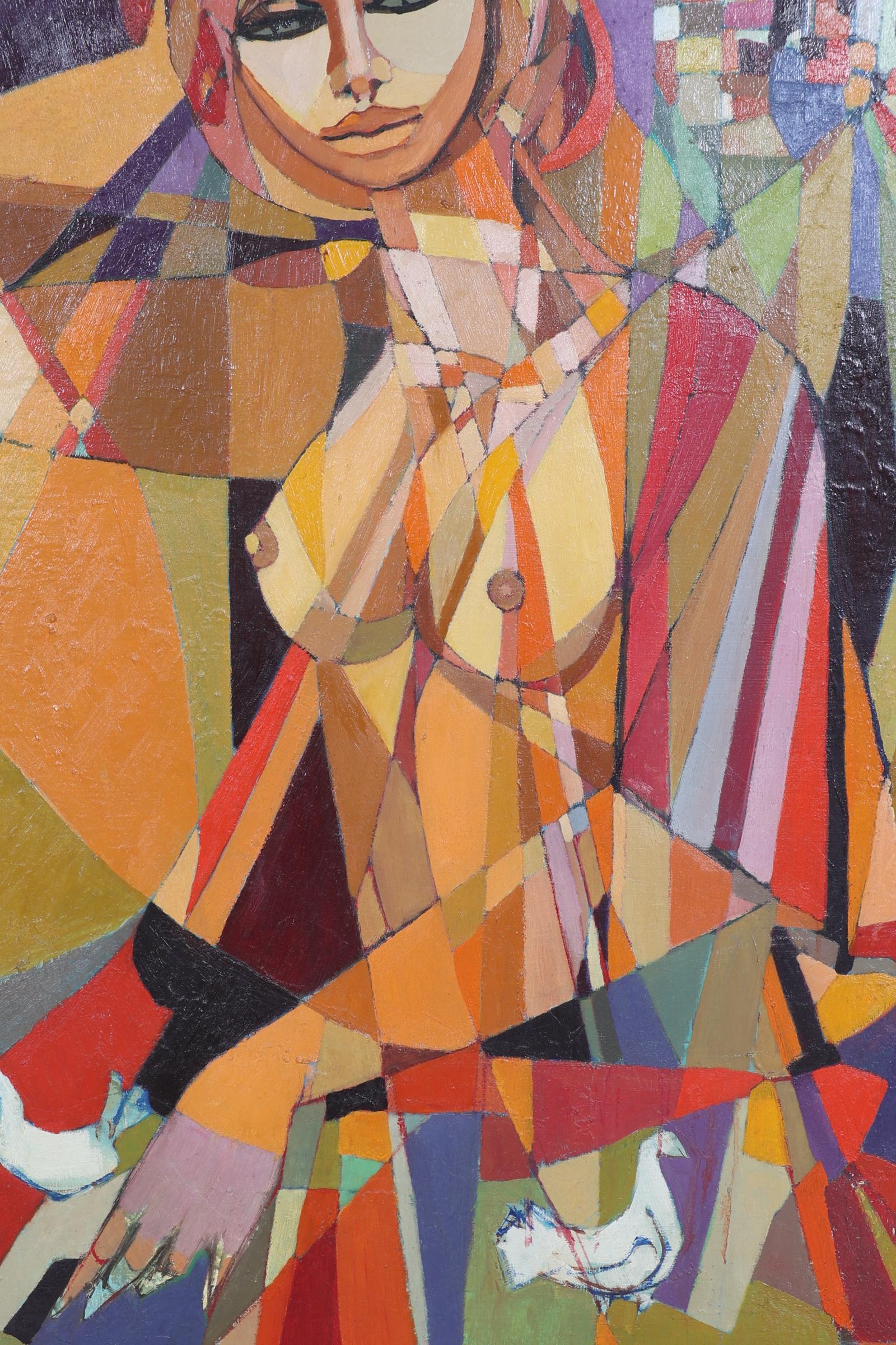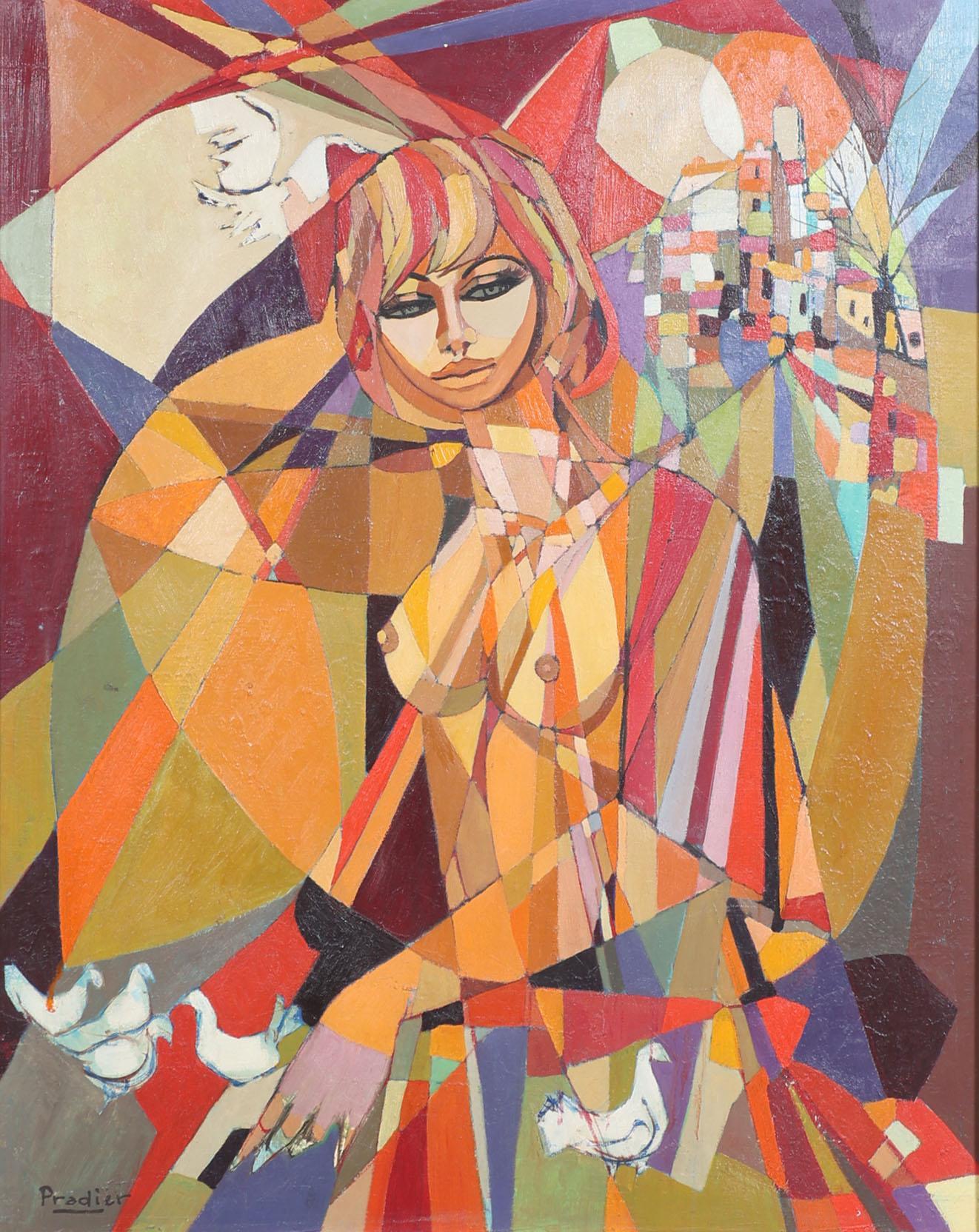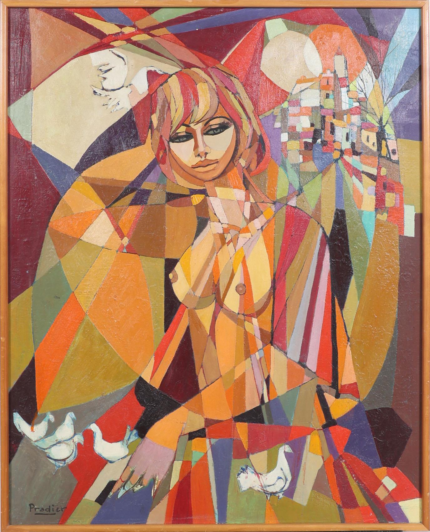Raoul Perdier (1929-2017), Vrouwelijk naakt met duiven, olieverf op doek, 80 x 64 cm.