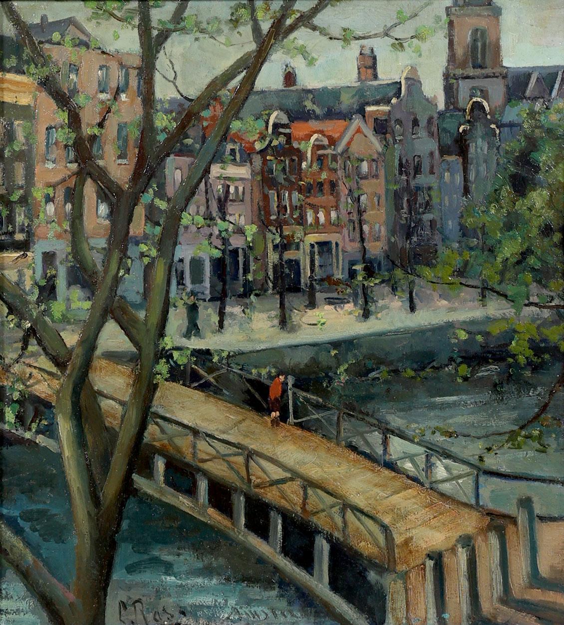L.A.Rast 1915, Amsterdams stadsgezicht, olieverf op doek, 45 x 40 cm.