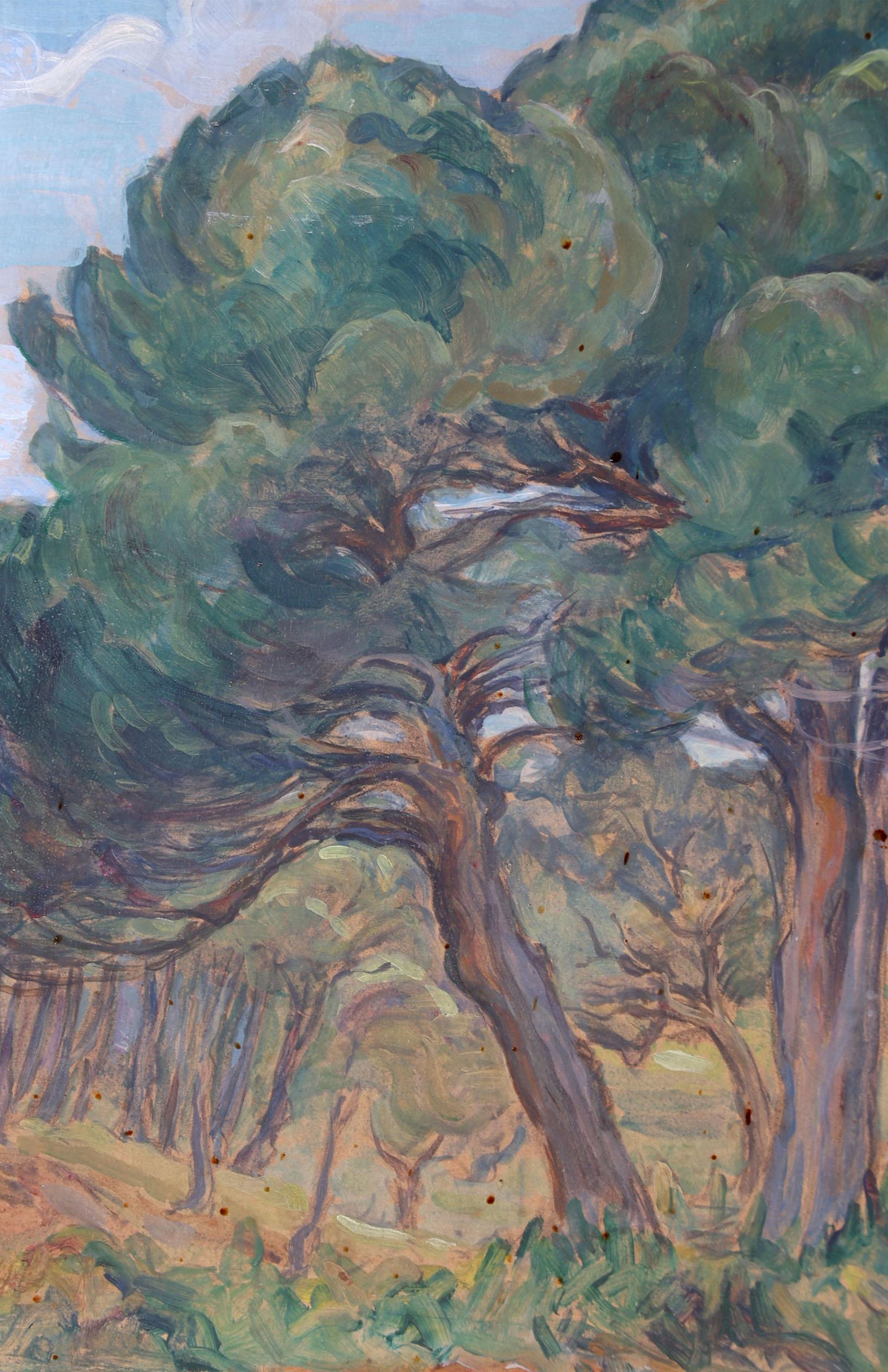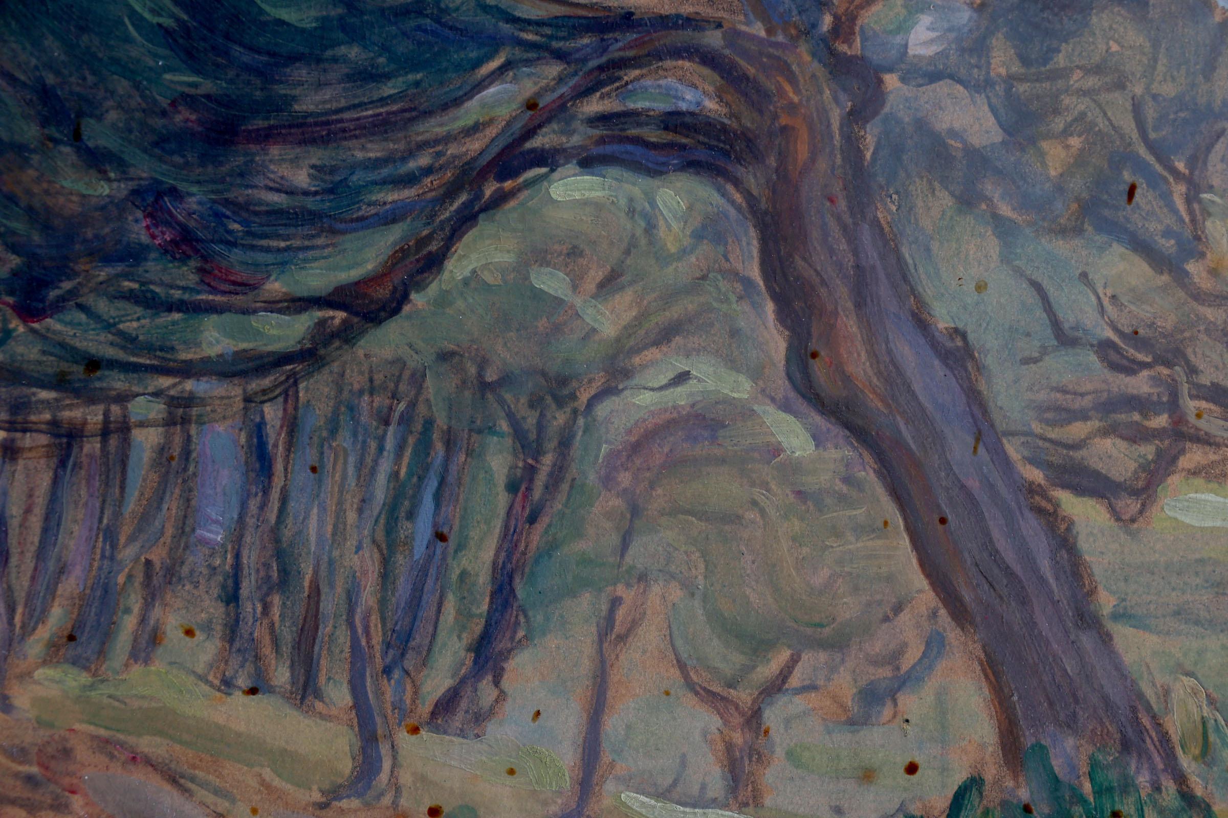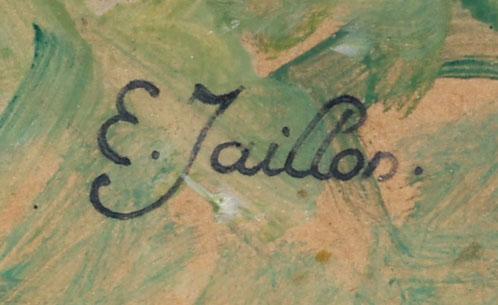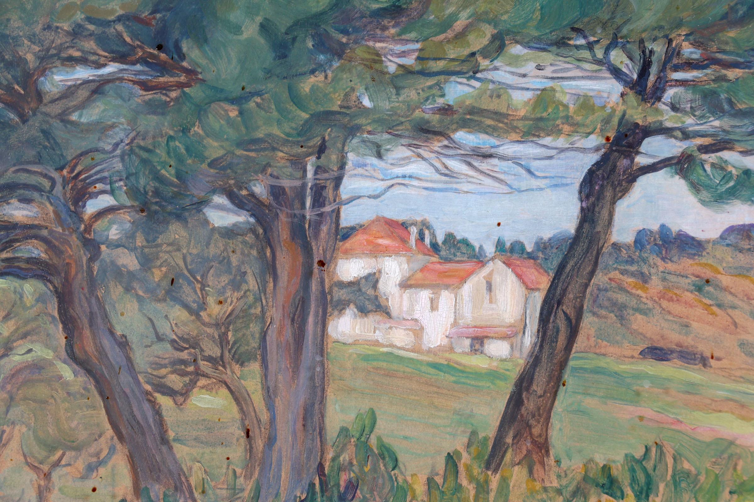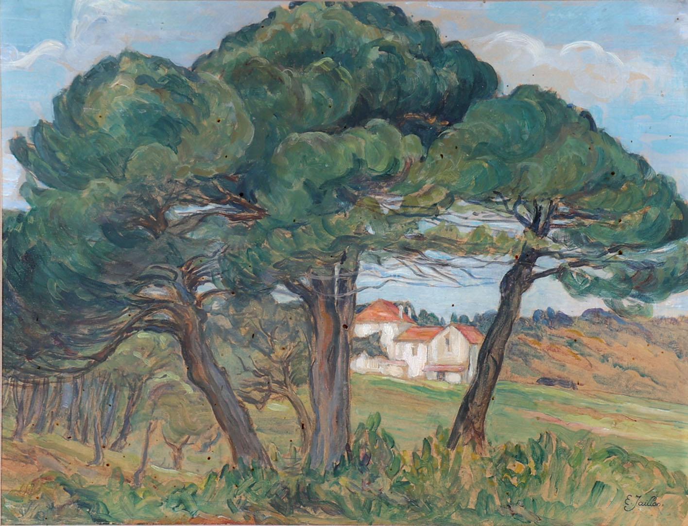 E. Jaillon, Mediterraan landschap met huis, gouache op papier, 50 x 40 cm.