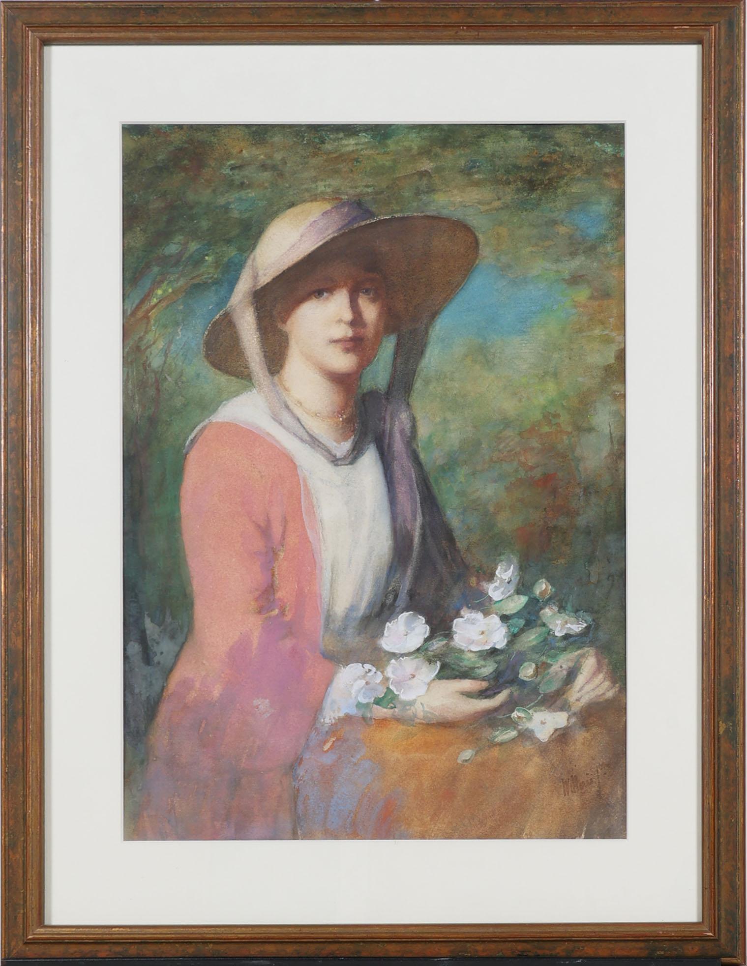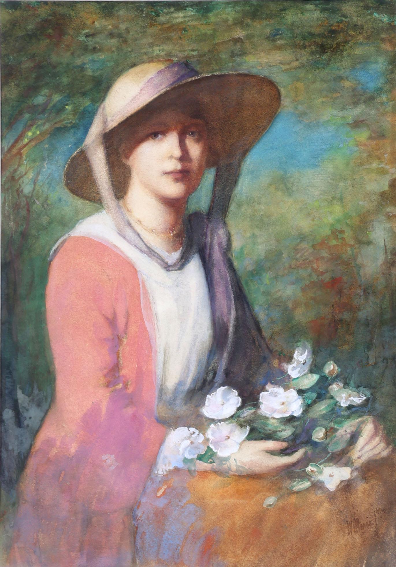 Willem Maris (1844-1910), Portret van een dame met hoed, aquarel, 59 x 41 cm.