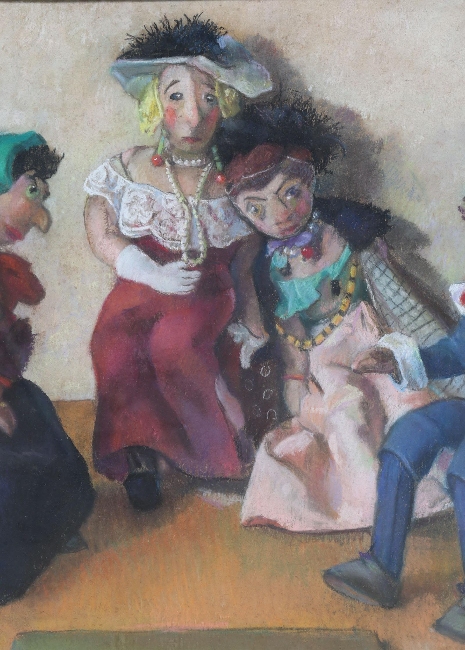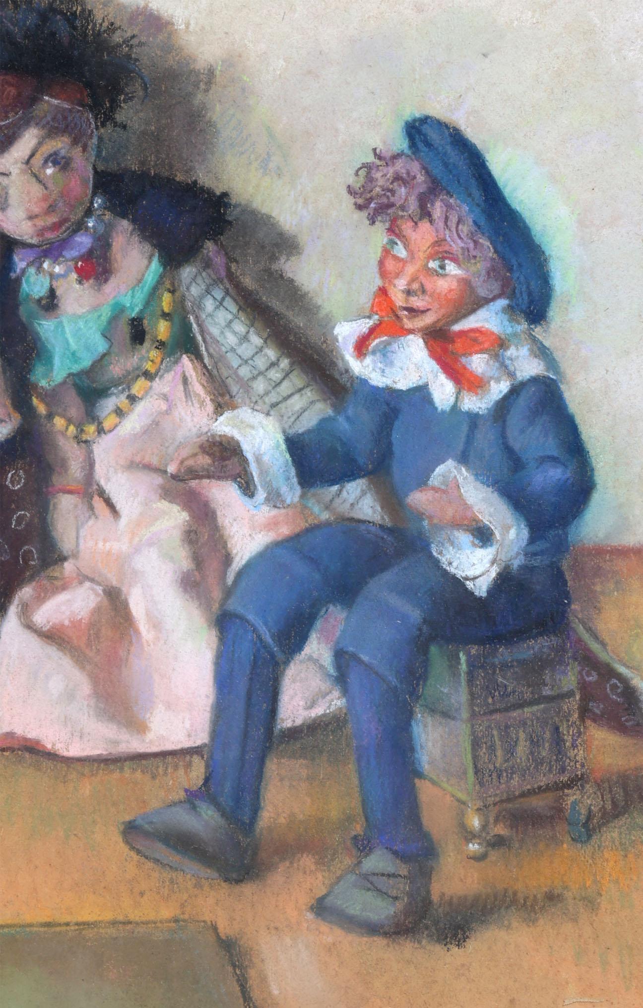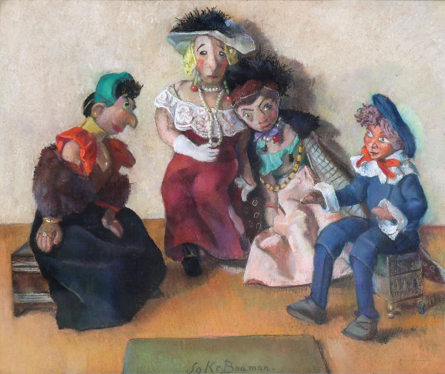 Jo Kruyder-Bouman (1886-1973), Poppen, pasteltekening, 50 x 62 cm.