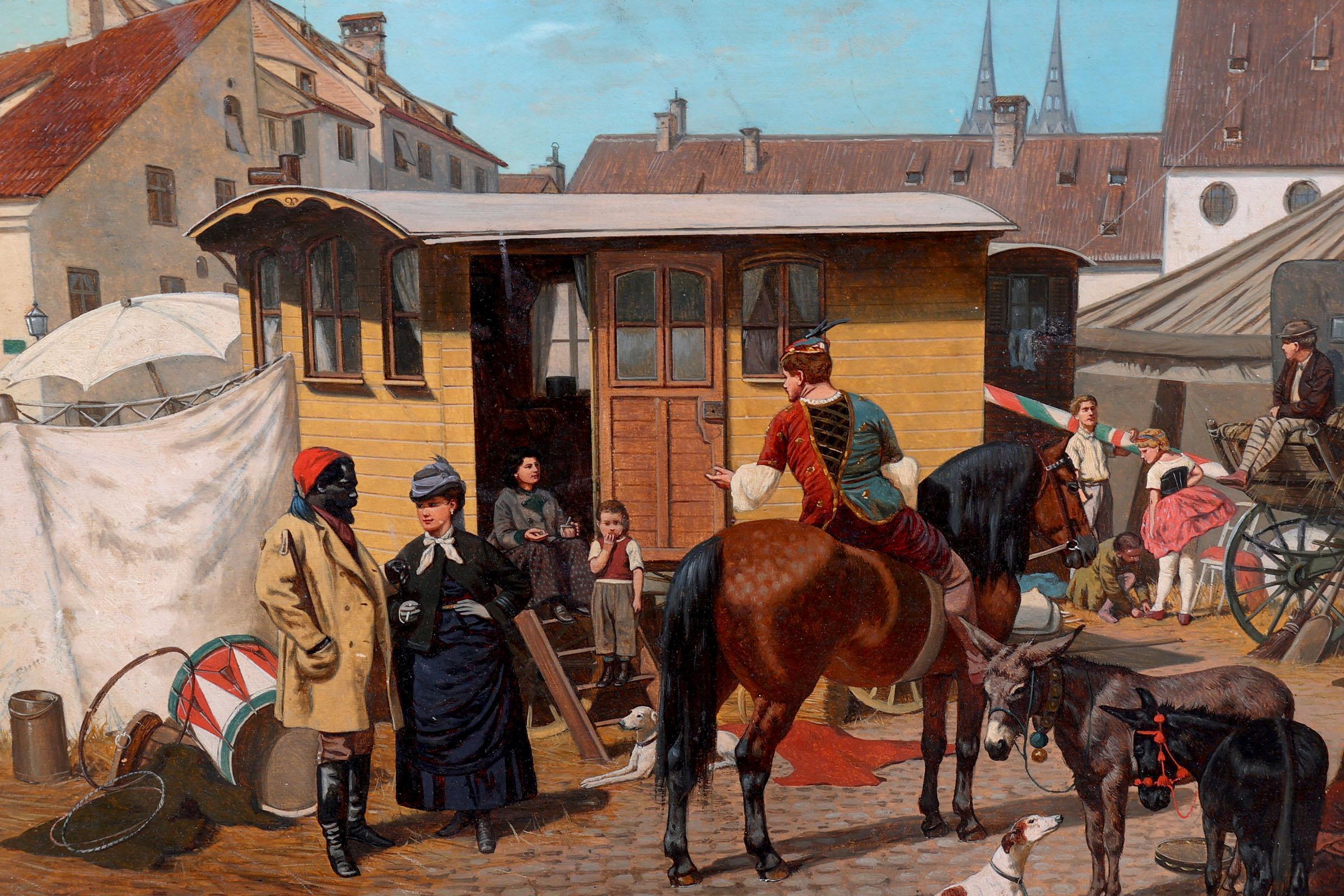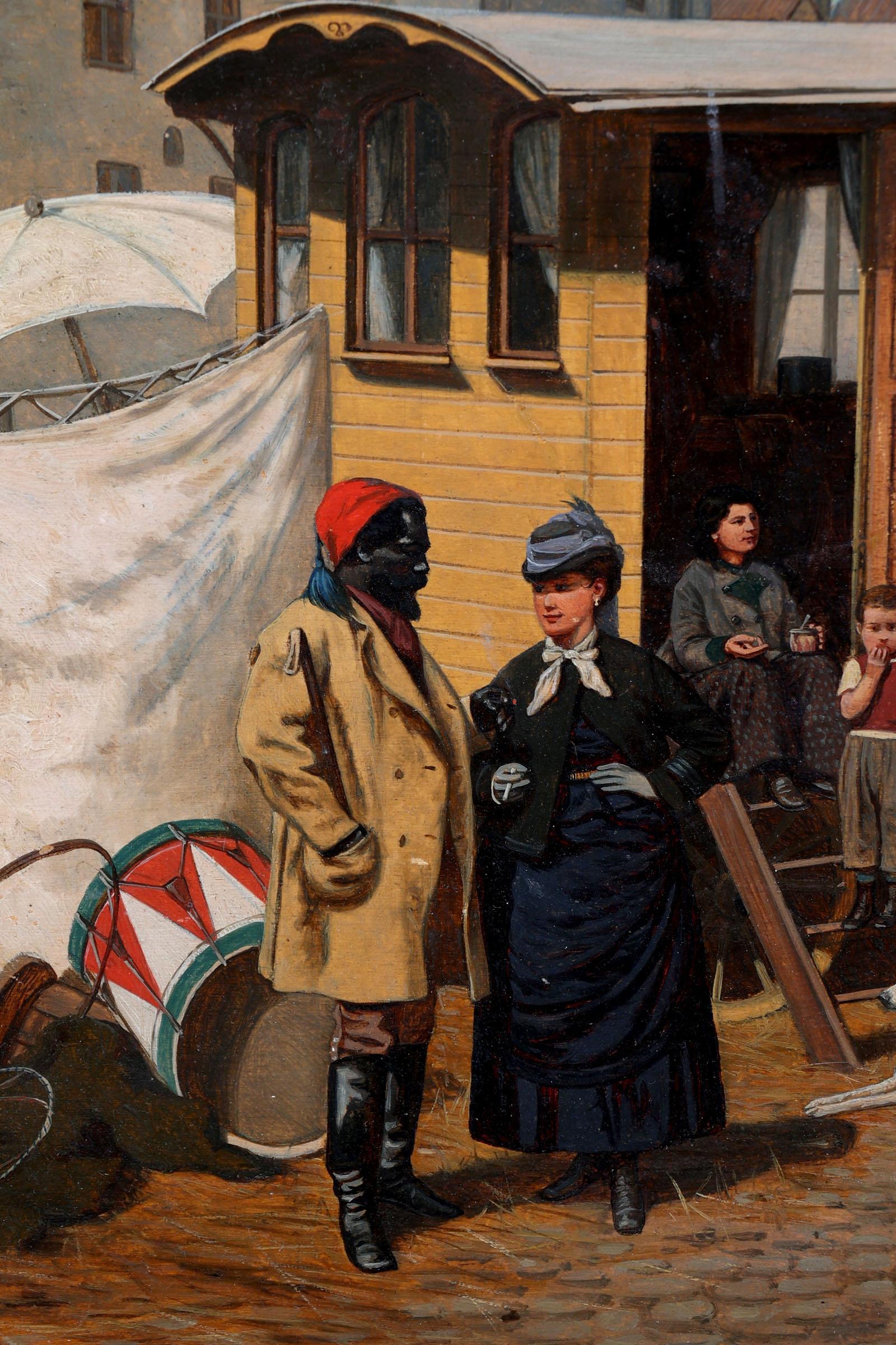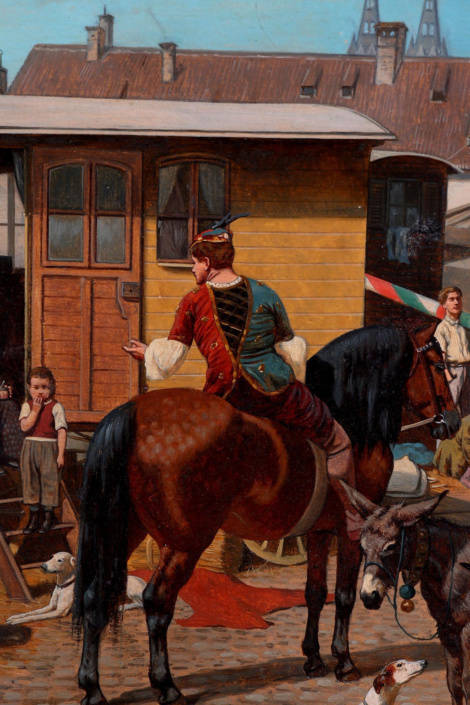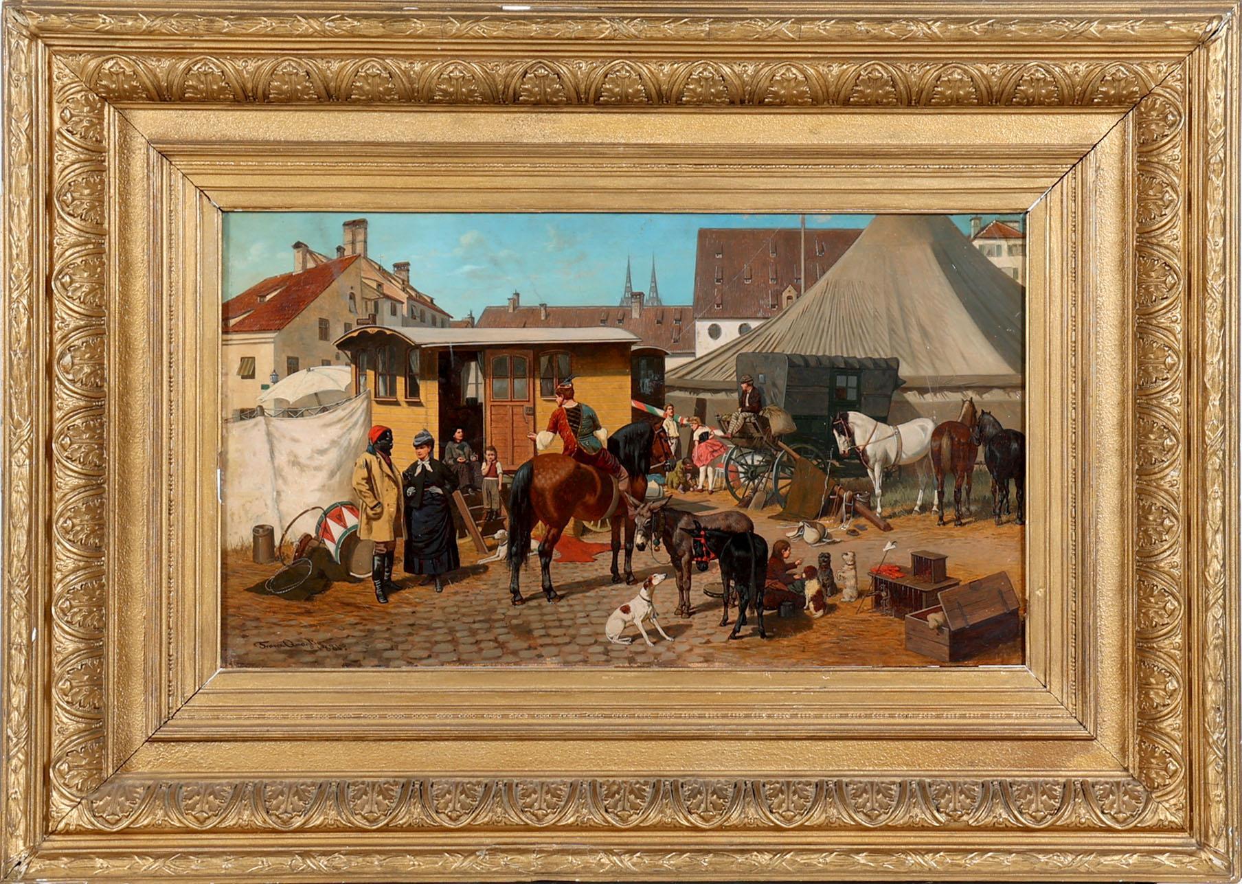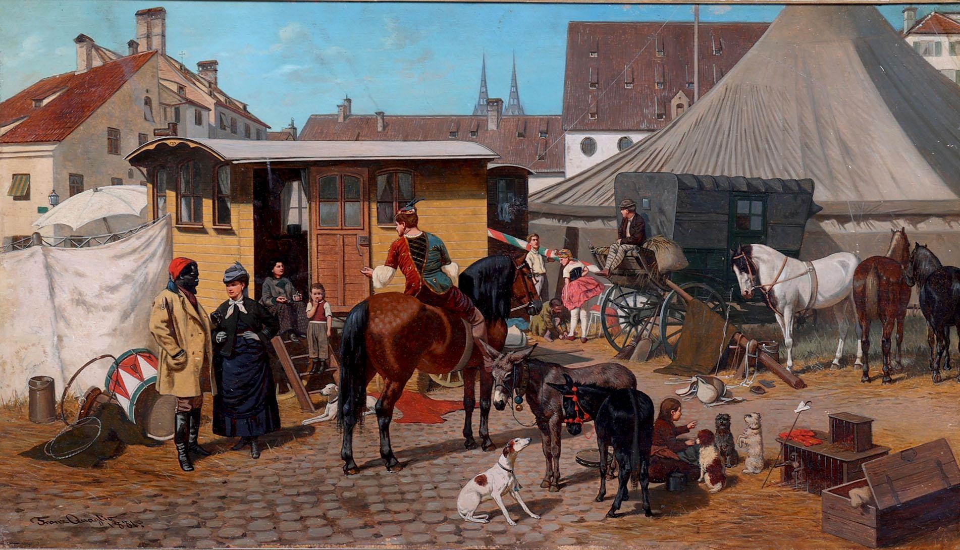 Franz Quaglio (1844-1920), Zicht op circusterrein, olieverf op paneel, 46 x 27 cm.