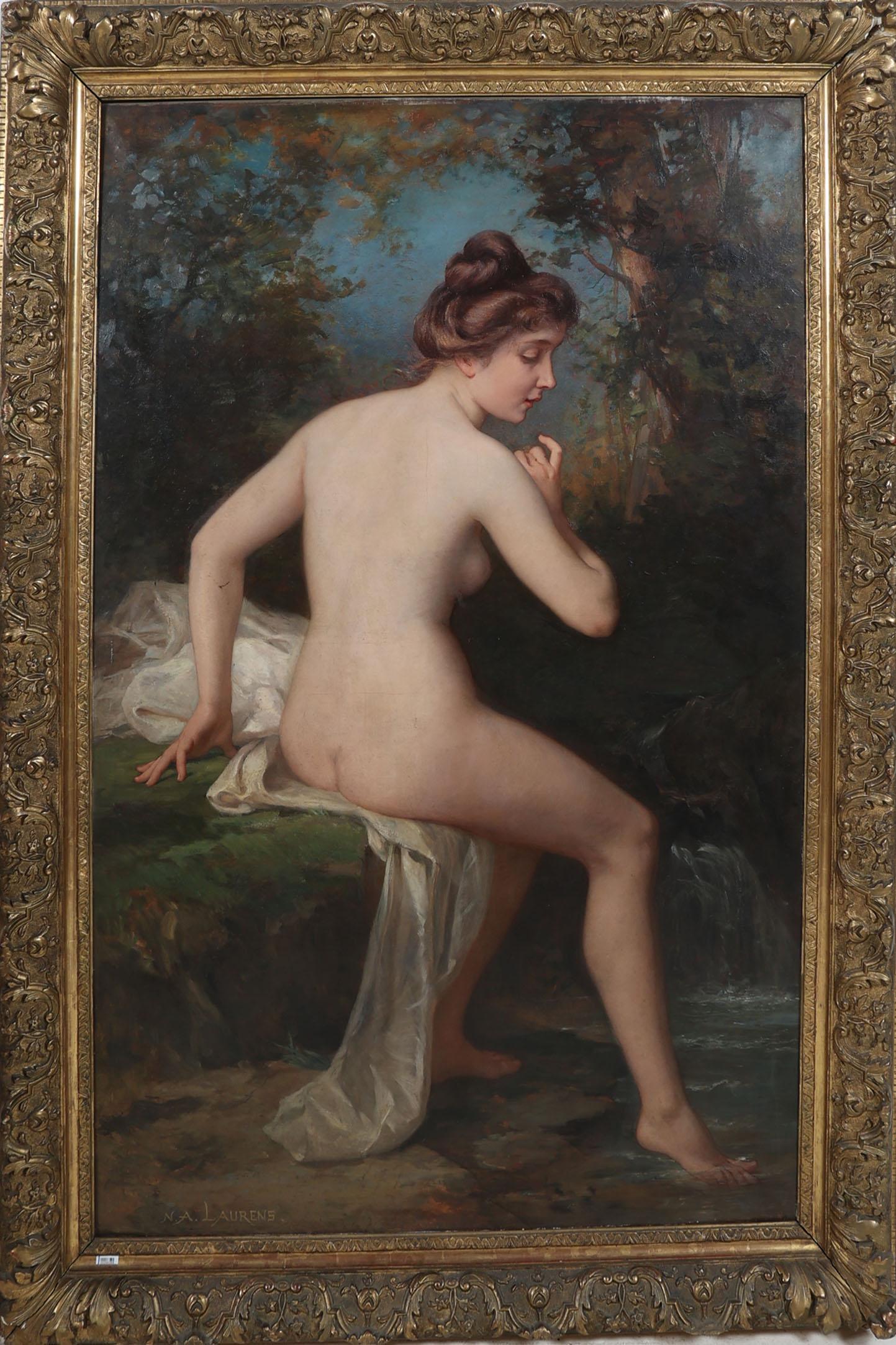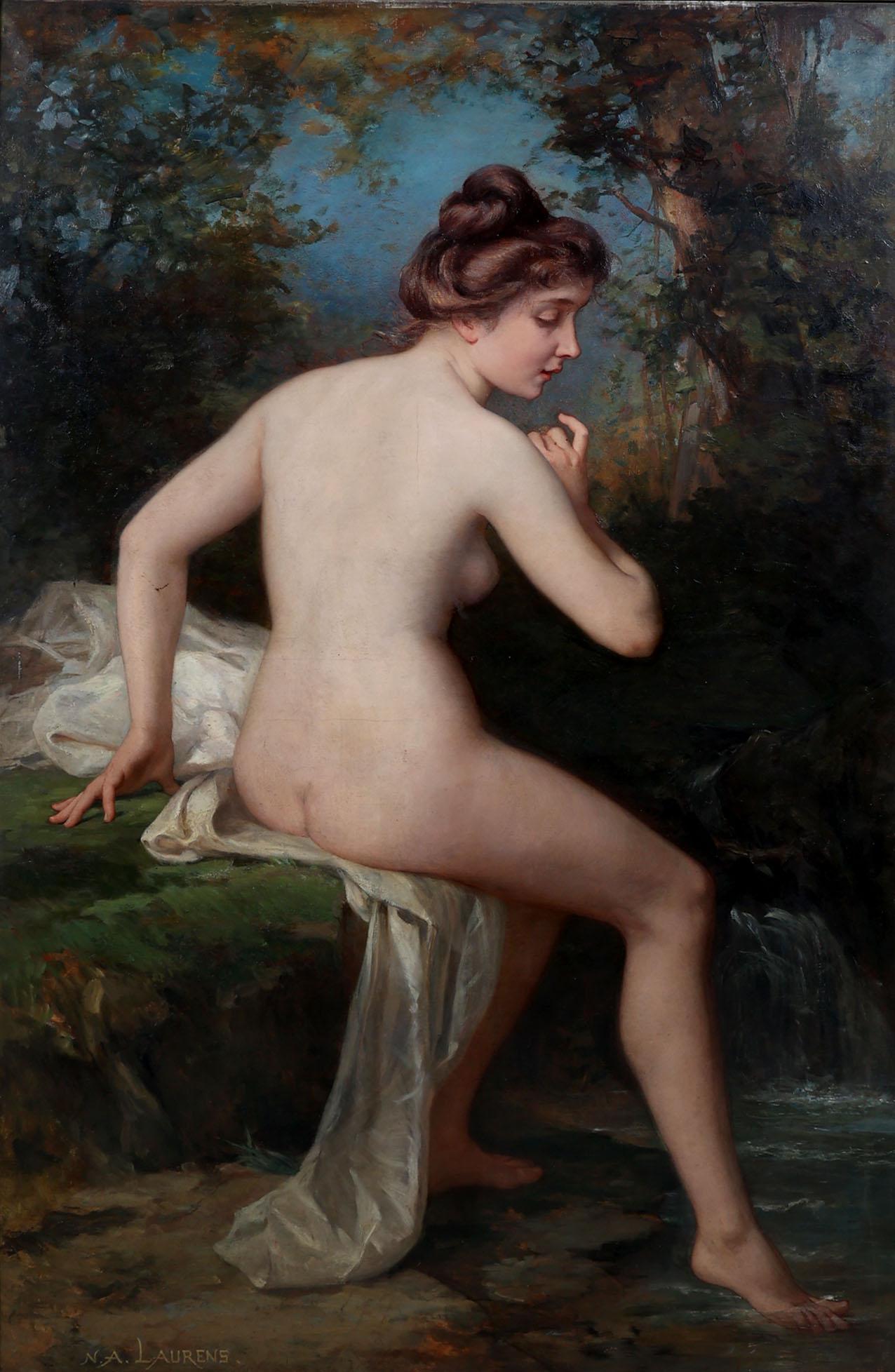 Nicolaas August Laurens (1829-1908) , Zittend naakt in landschap,