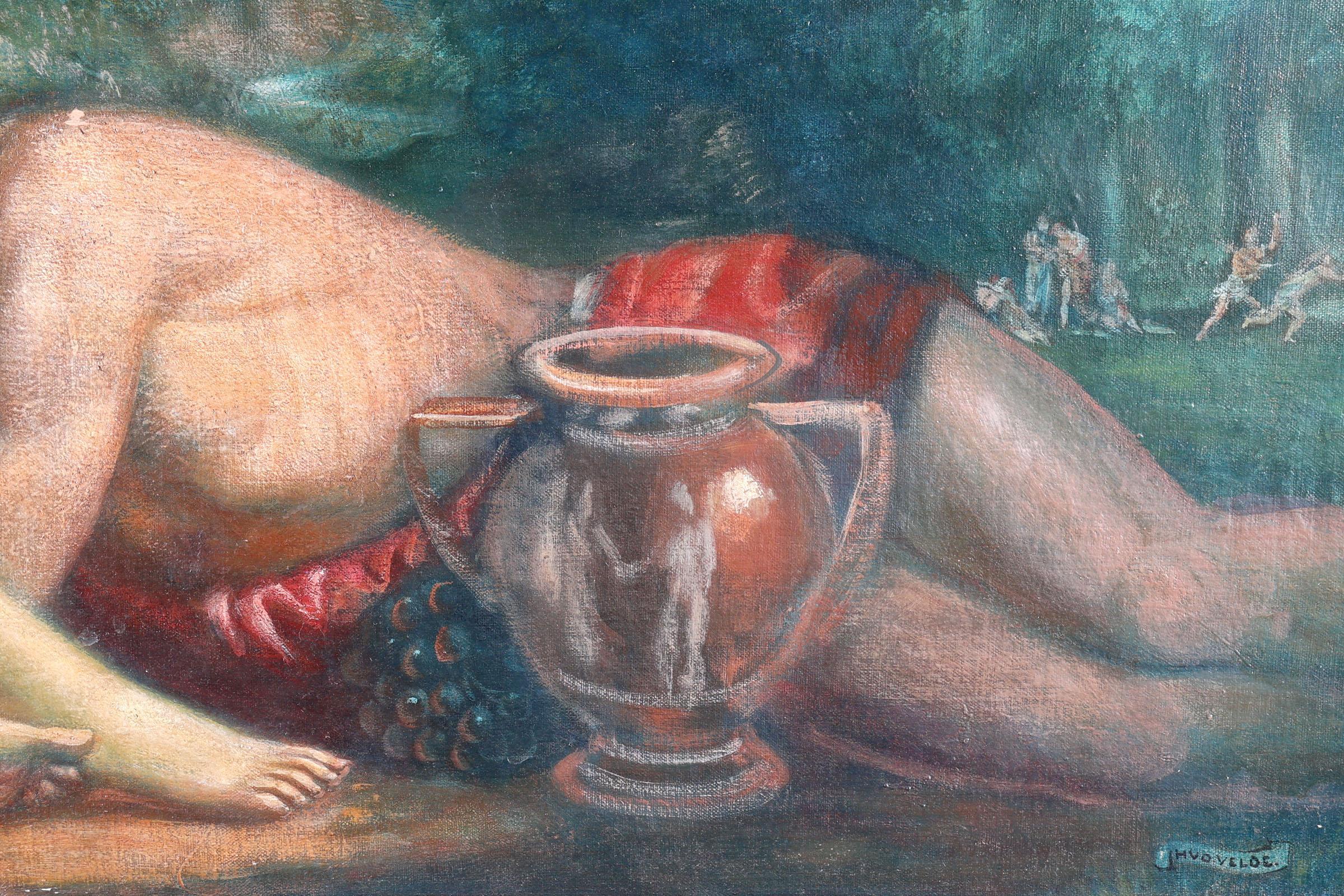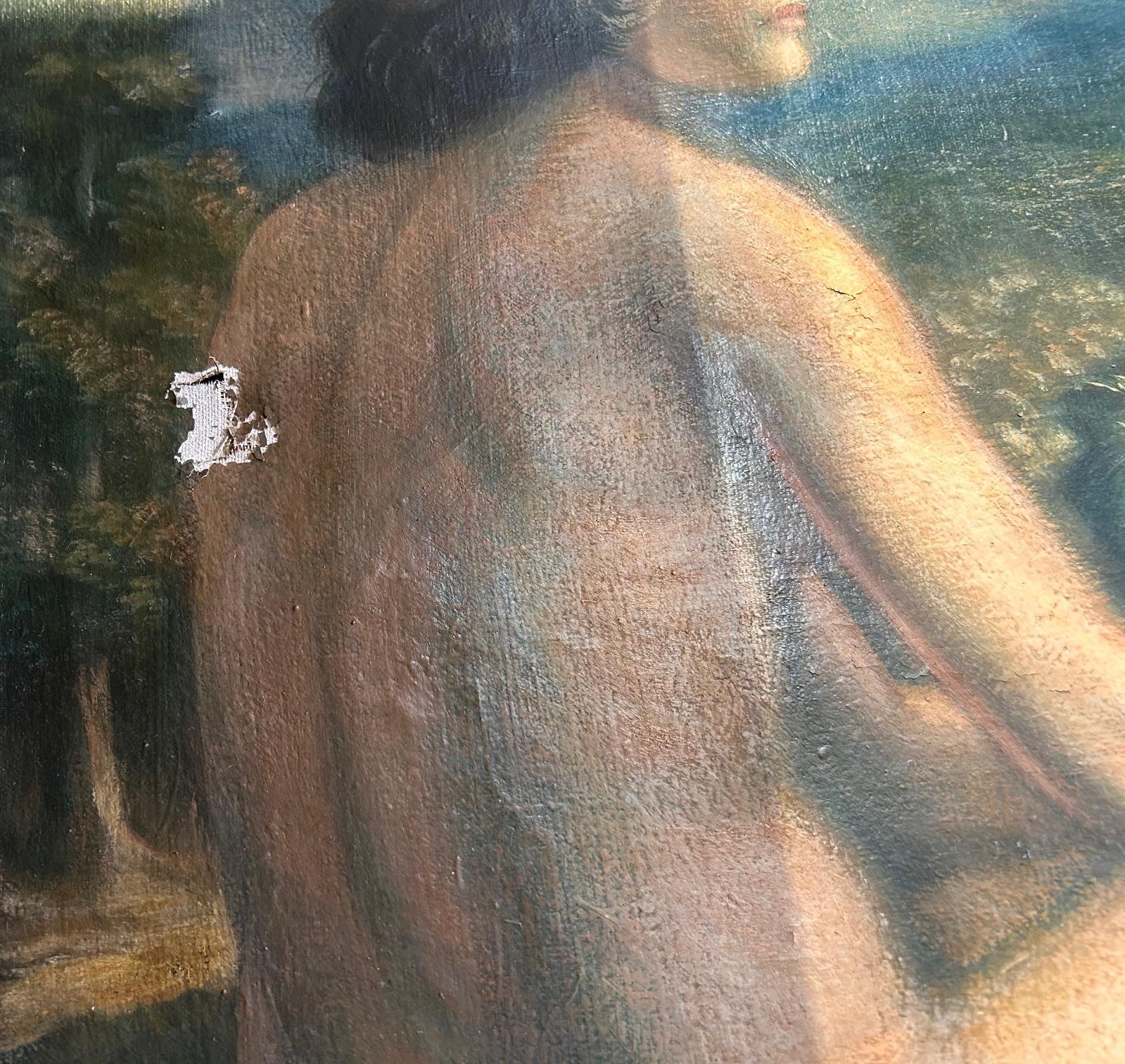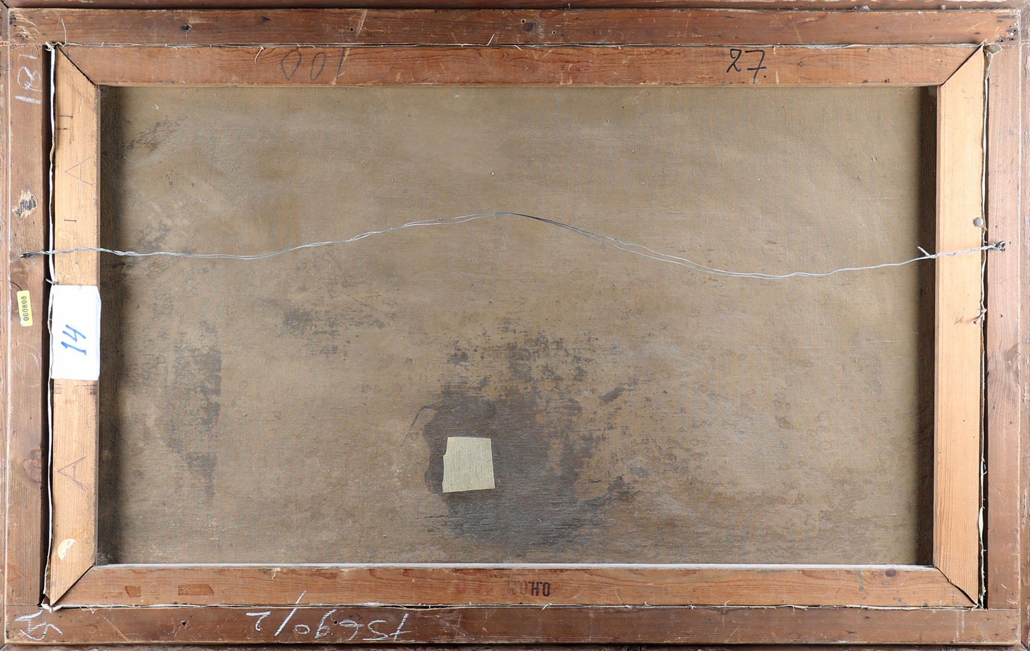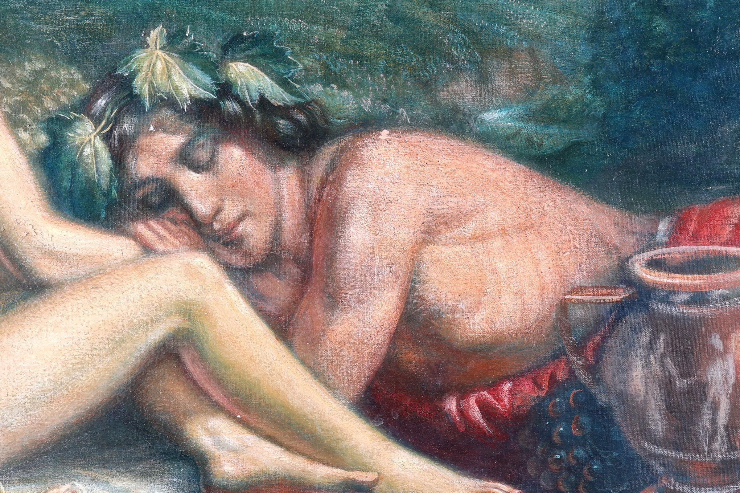 mythologische personen, olieverf op doek (kleine verfvermissingen en een defect in het doek), 100 x 58 cm.