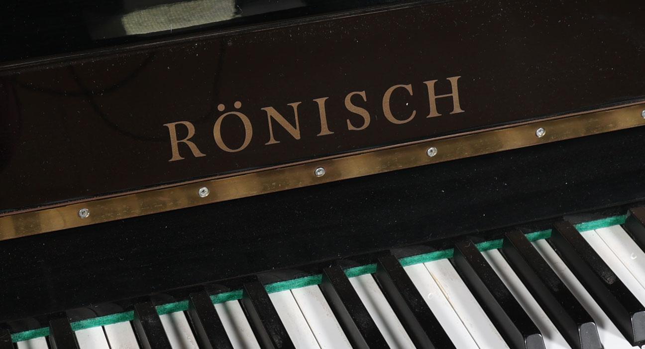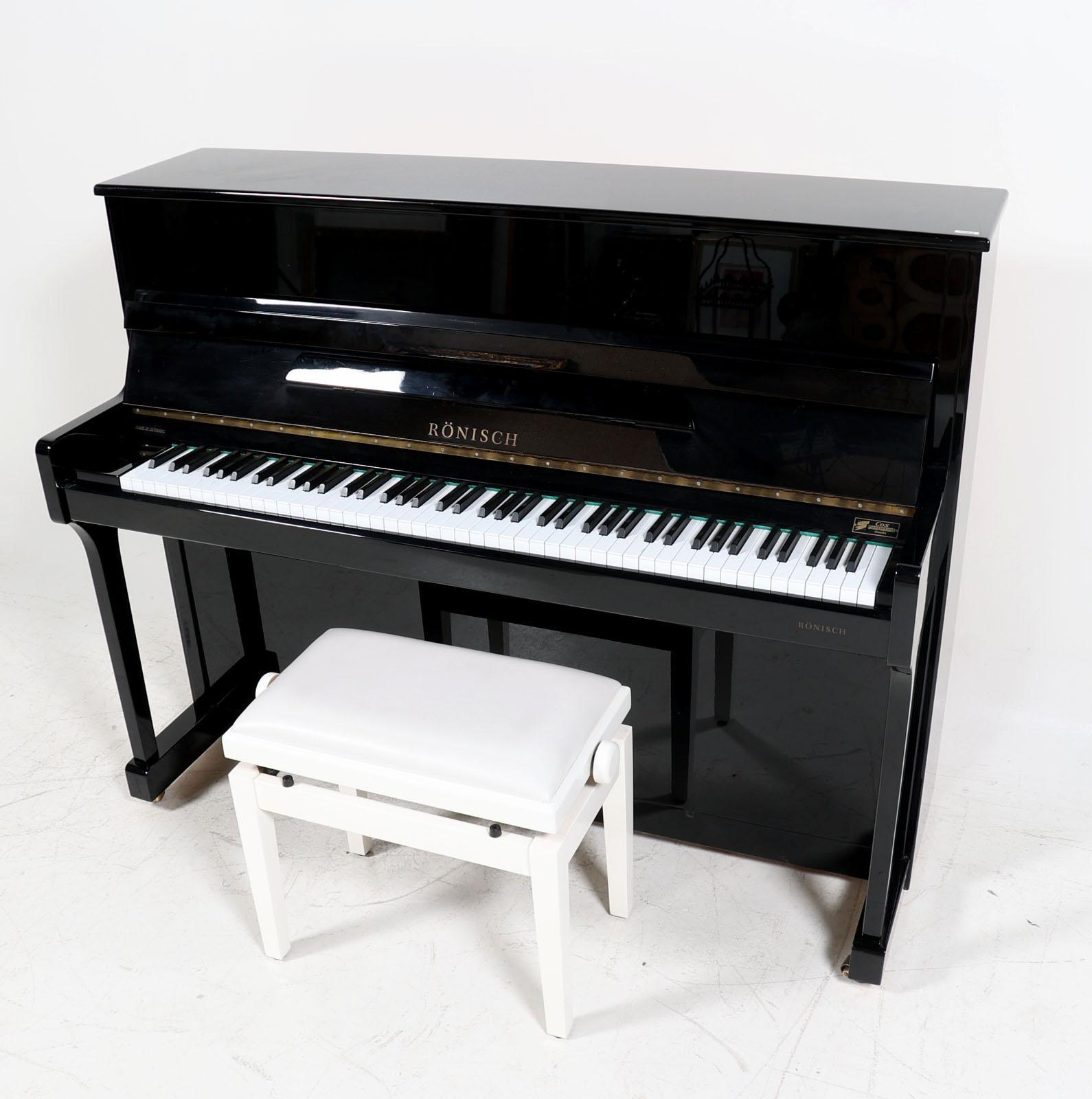 Rönisch, zwart gelakte hoogglans piano met witte kruk, h.117 x b.149 x d.60 cm.