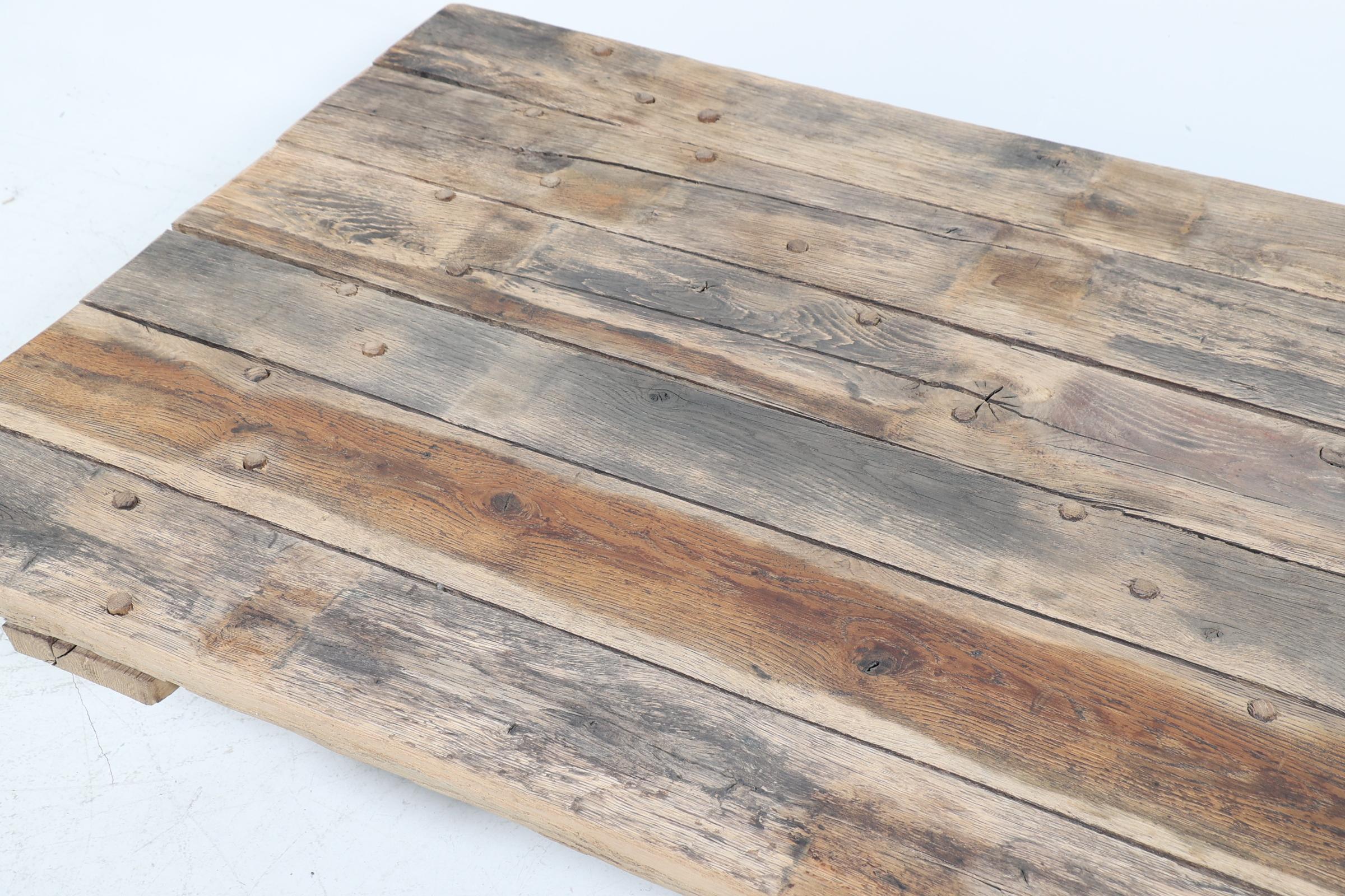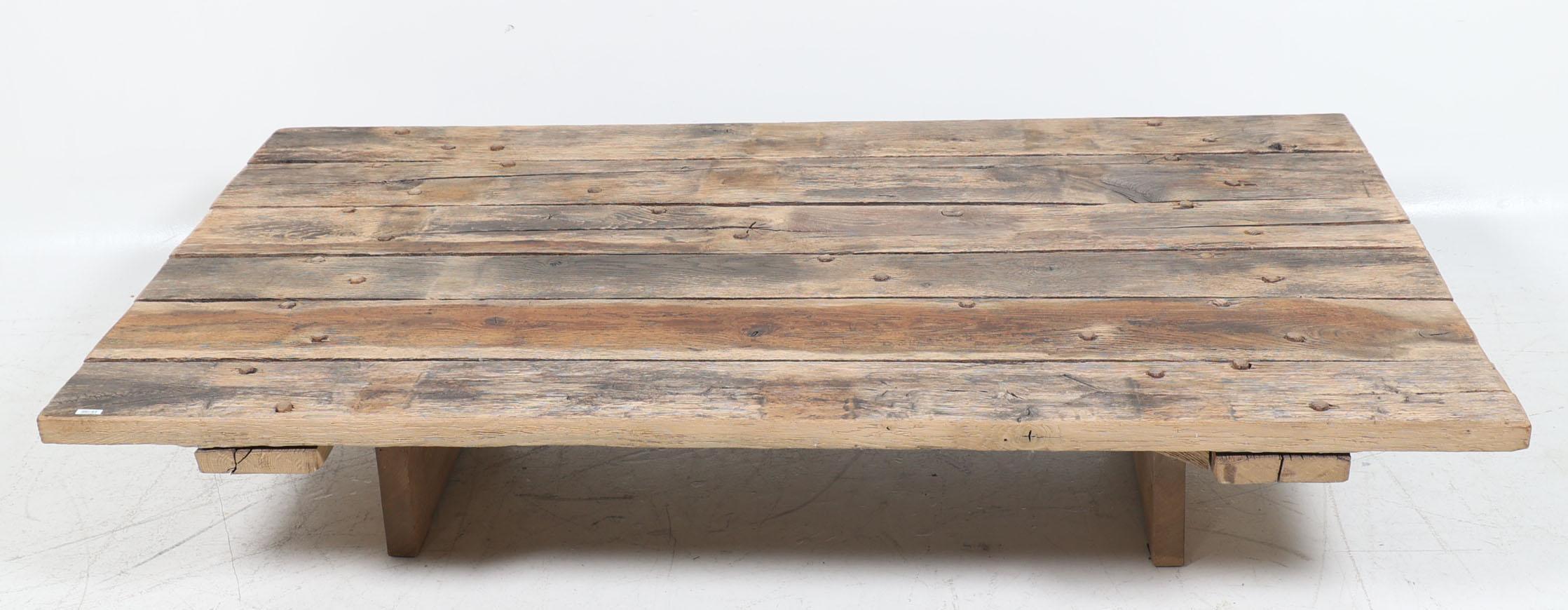 Moderne industriële houten deur vermaakt tot salontafel, h.36 x b.180 x d.103 cm.