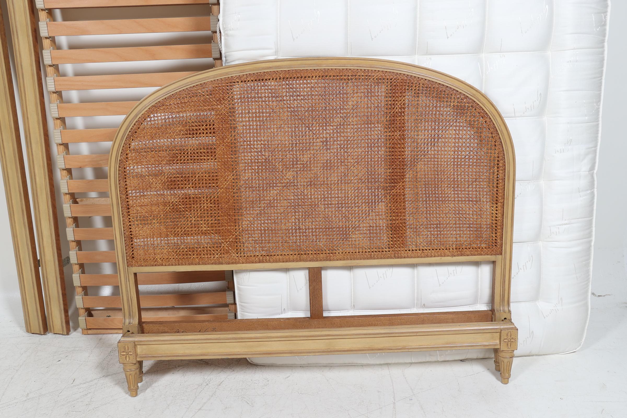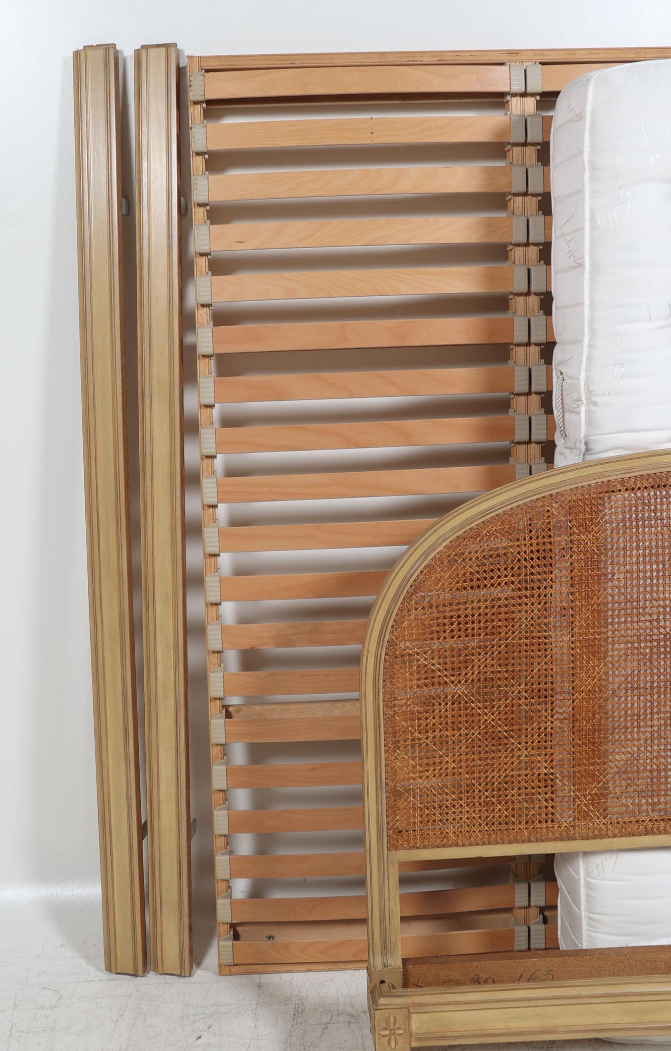 Crèmekleurig 2-persoons bed frame in klassieke stijl, met lattenbodem en matras (matrasmaat 140 x 200 per stuk)