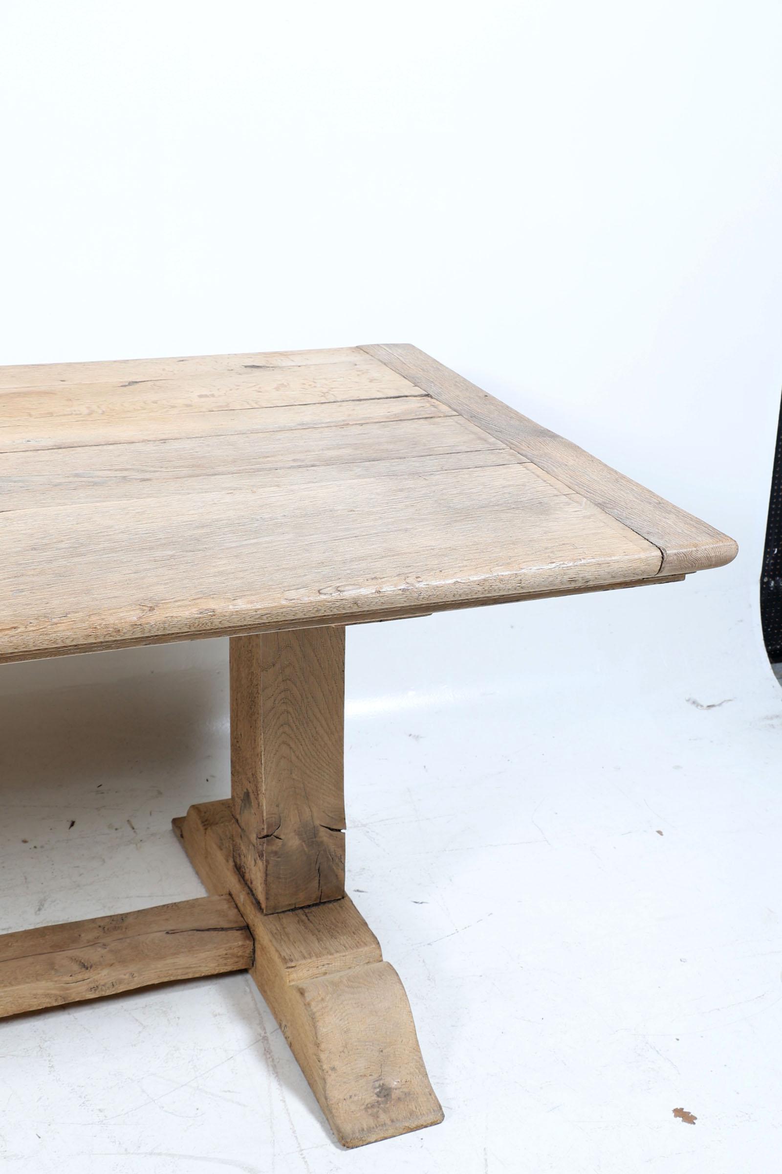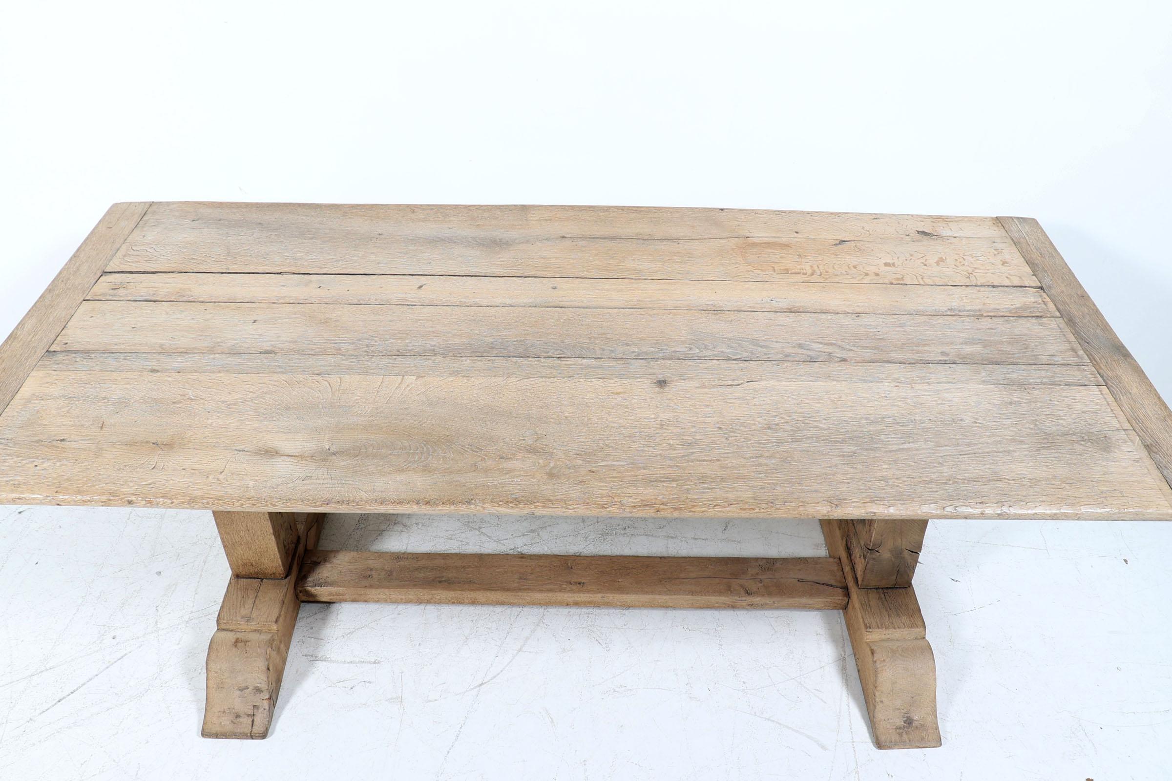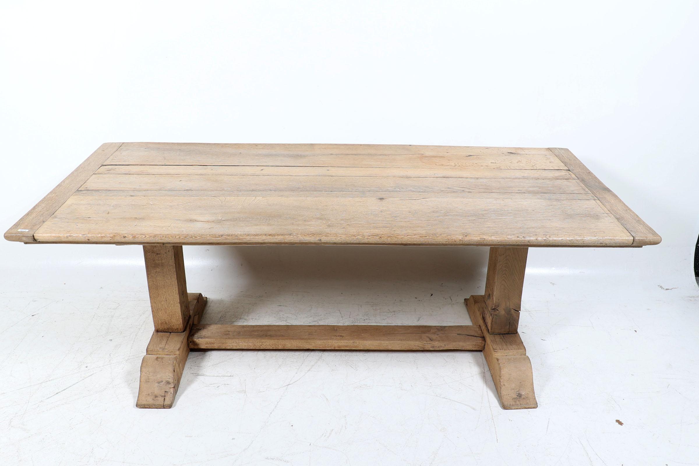 Rustieke eikenhouten eetkamertafel rustend op slofpoten, h.78 x b.209 x d.94 cm.