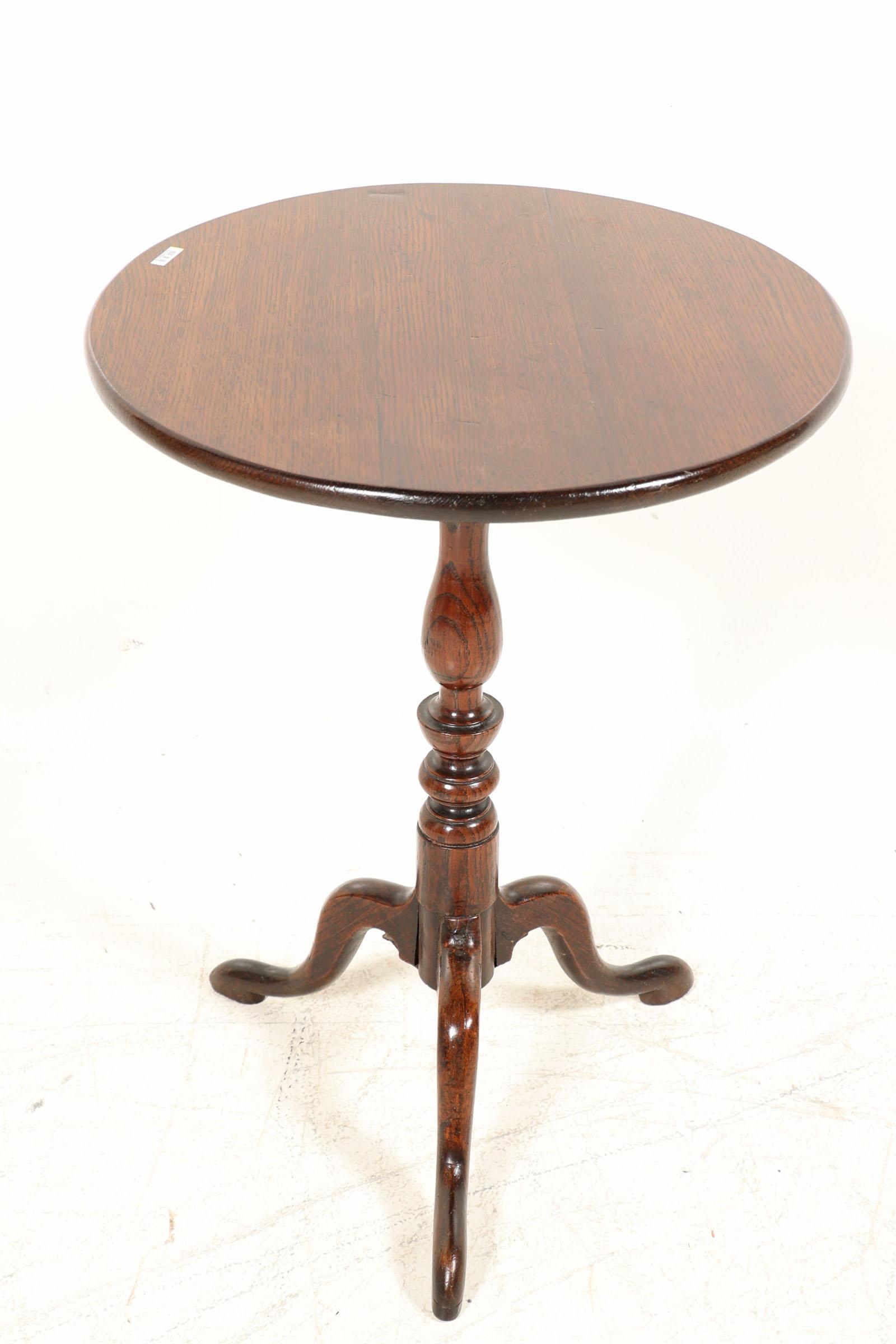 Antieke eikenhouten bijzettafel, h.65 x diam.51 cm.