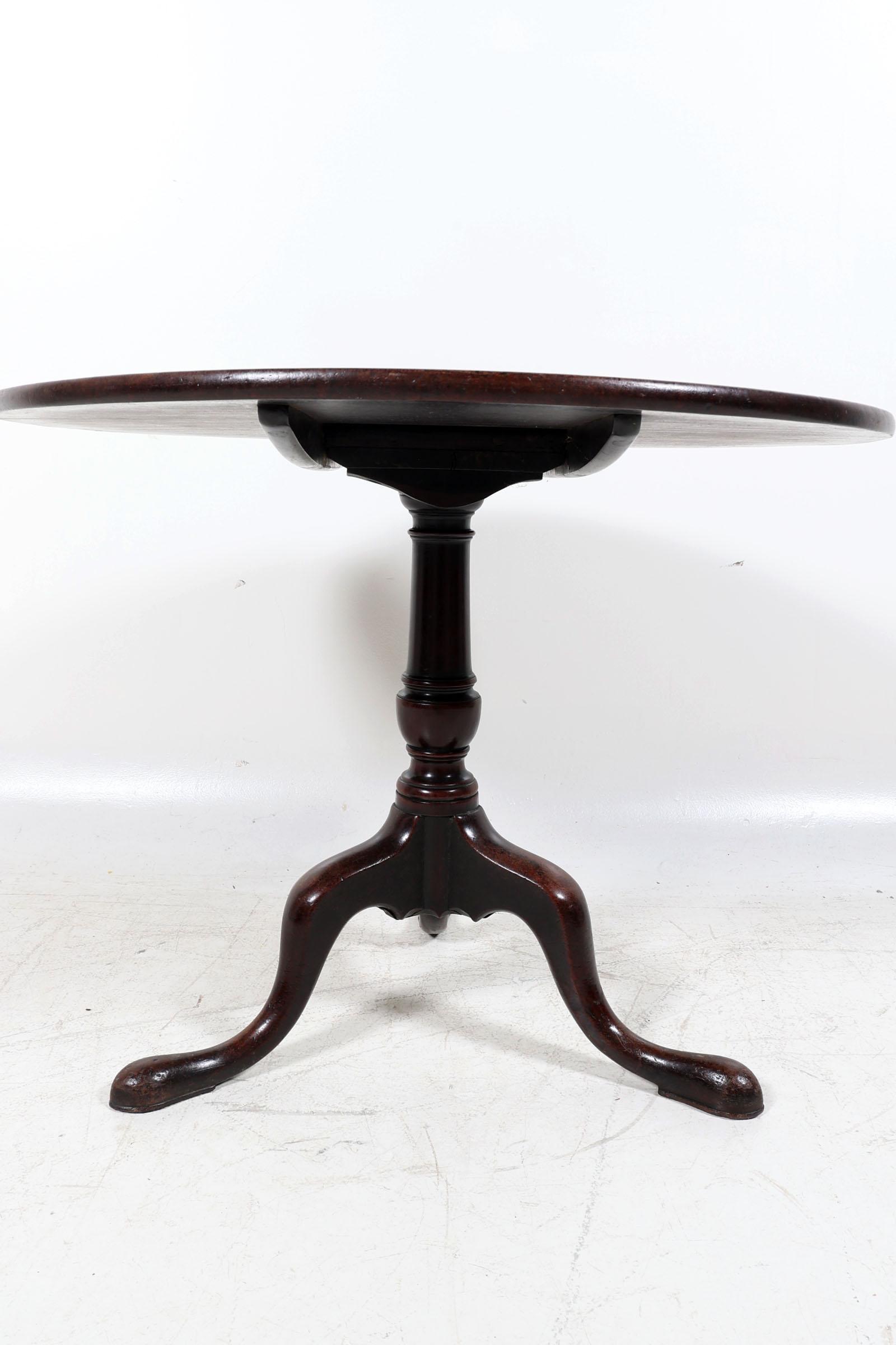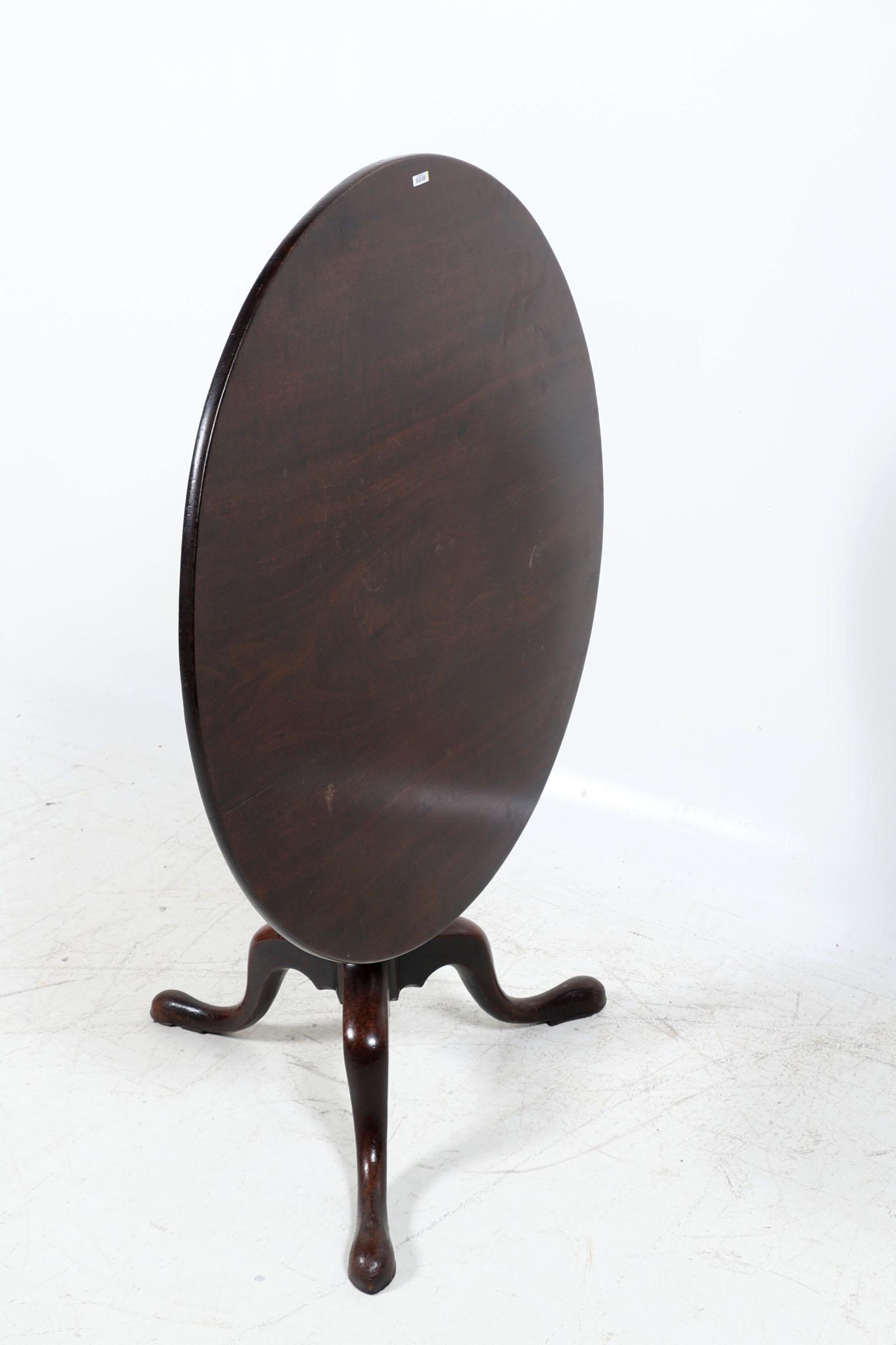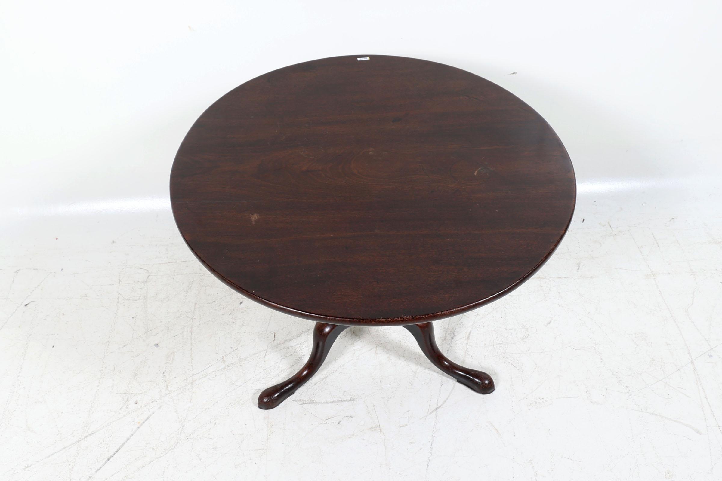 Oude notenhouten tilt-top tafel, h.71 x diam. 91 cm.