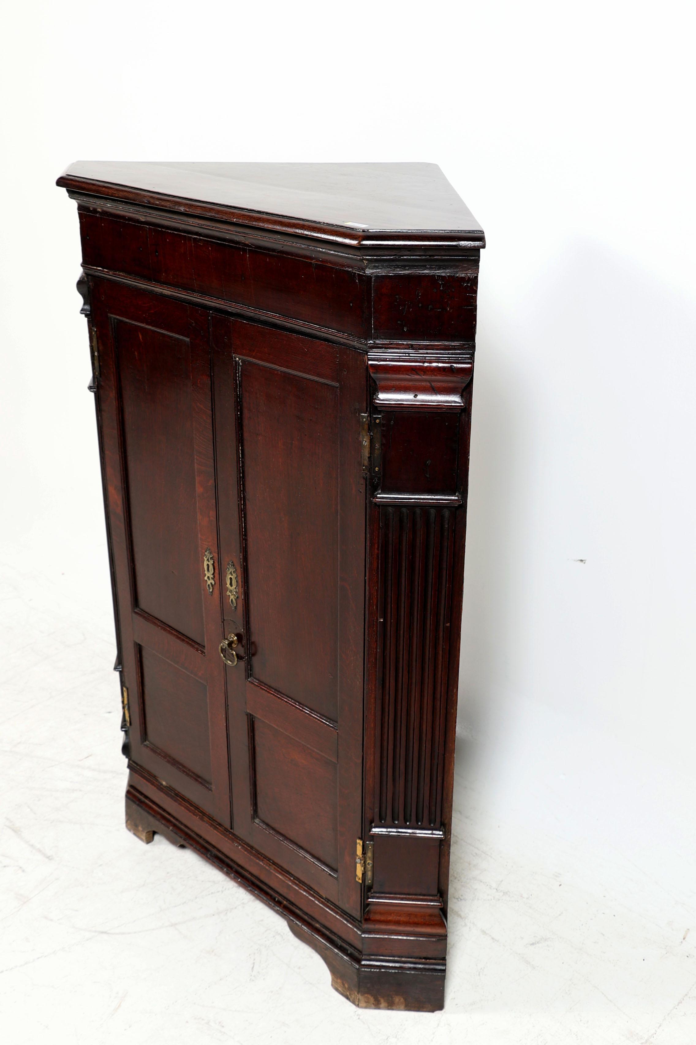 Antieke eikenhouten 2-deurs hoekkast, Engeland, 19e eeuw, h.123 x b.87 x d.60 cm.