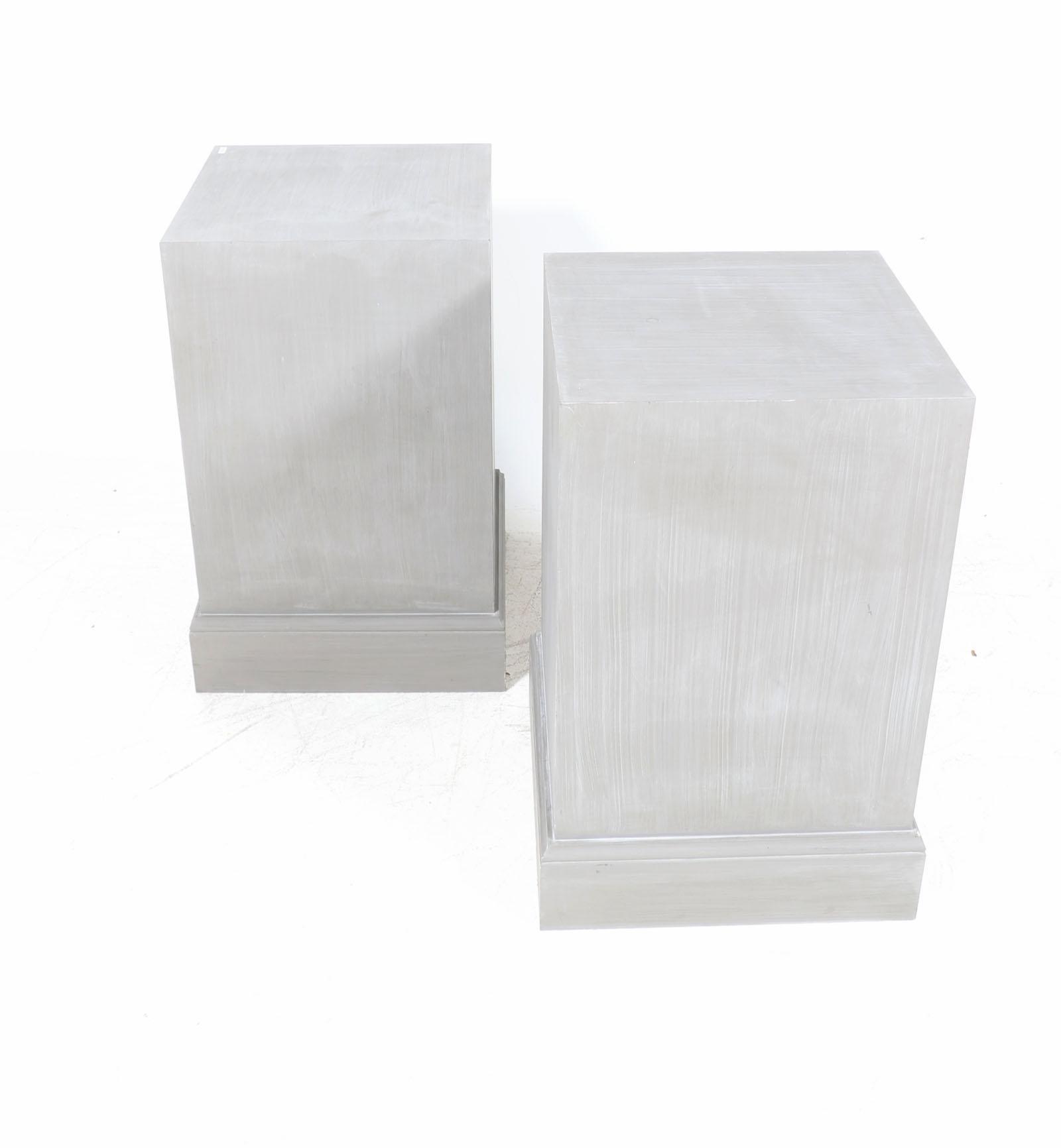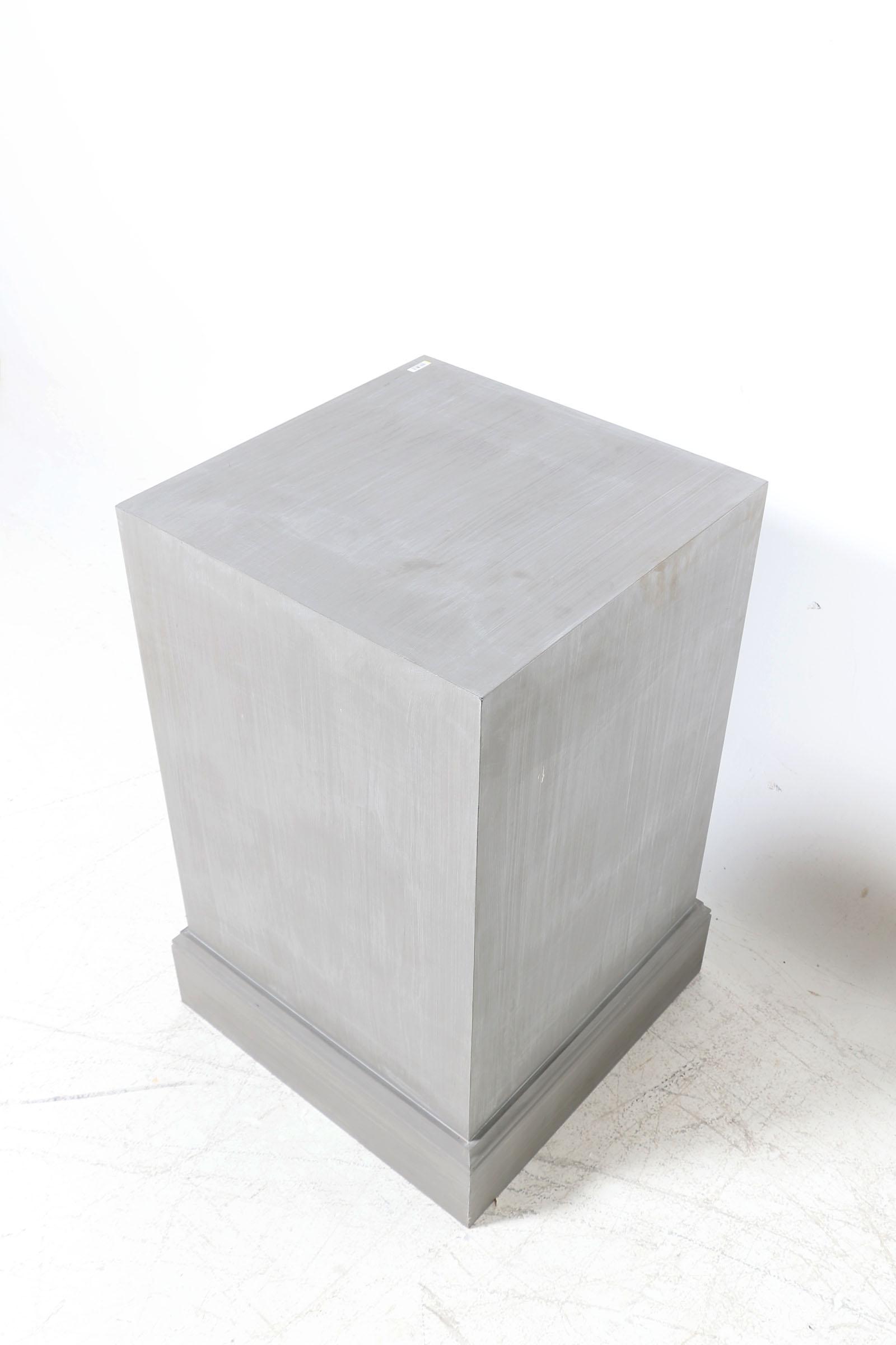 Set van 2 grijs houten presentatie sokkels, h.77 x b.46 x d.46 cm.