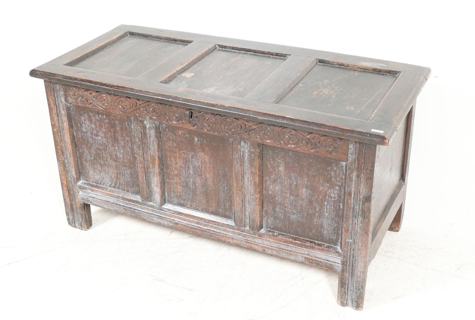 Antieke eikenhouten dekenkist, h.64 x b.122 x d.55 cm.
