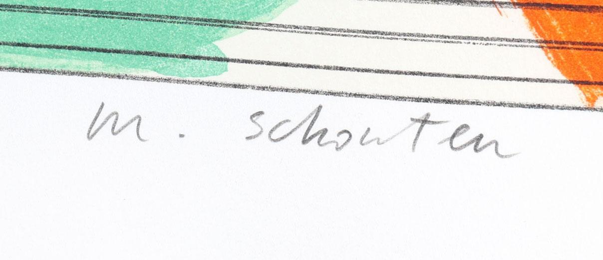 Marien Schouten (1956), abstracte voorstelling, zeefdruk, genummerd 10/75, gedateerd 2000, 53 x 40 cm.