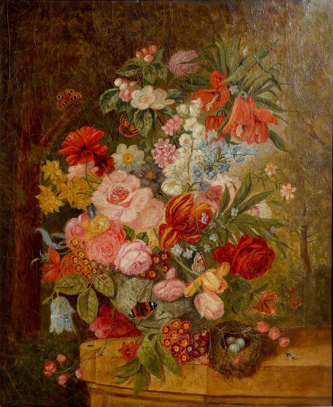 Van Huysum, Bloemstilleven, olieverf op doek, 77 x 64 cm.