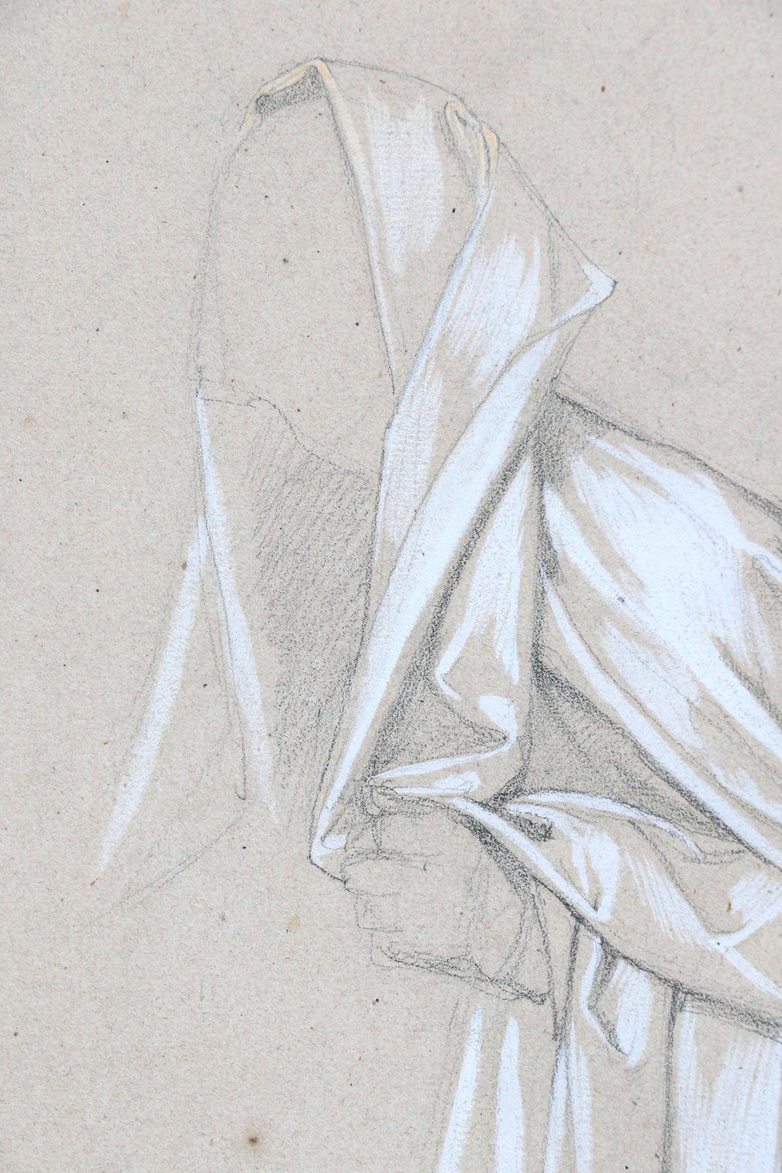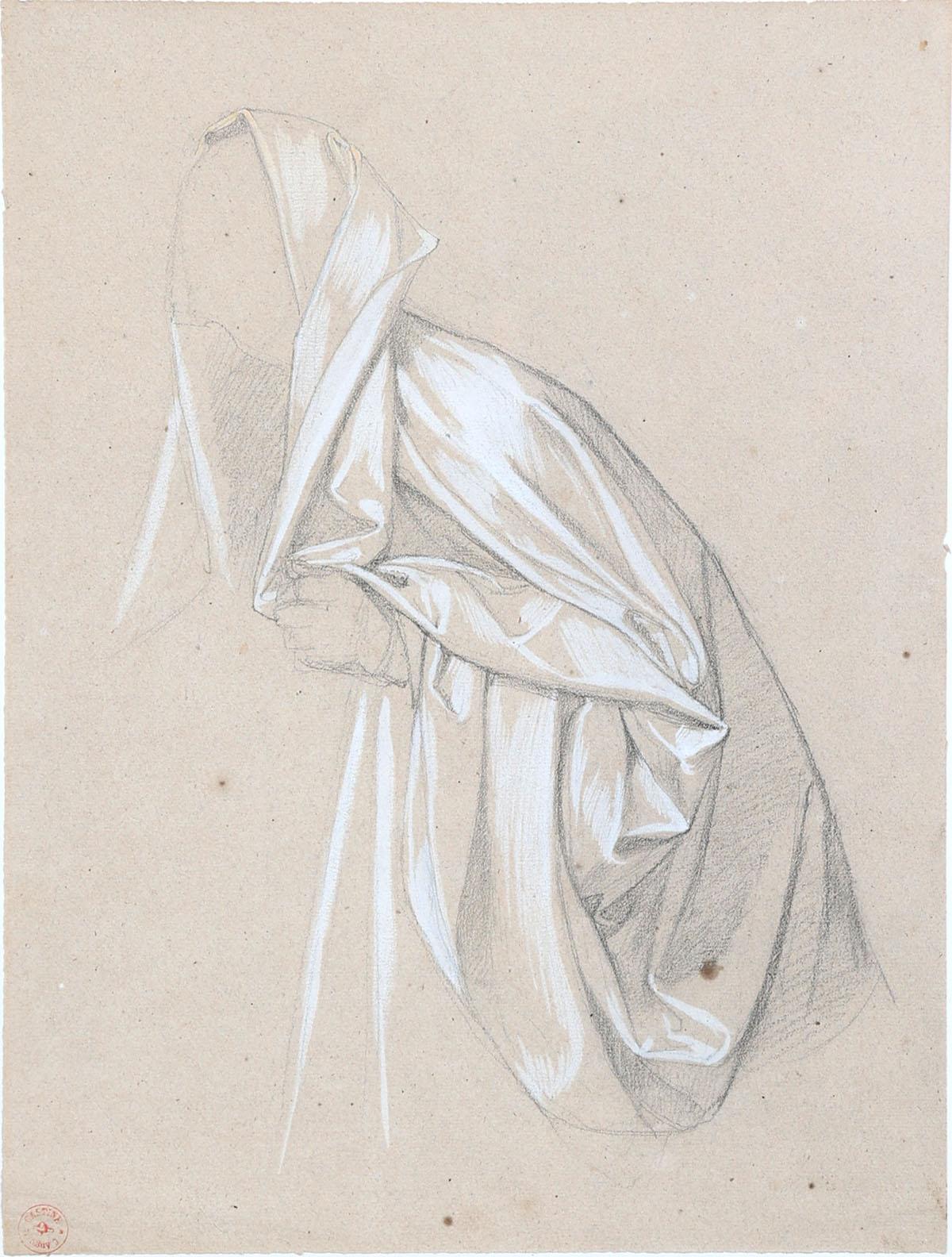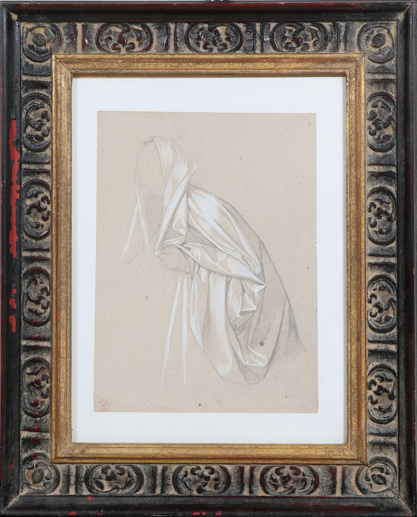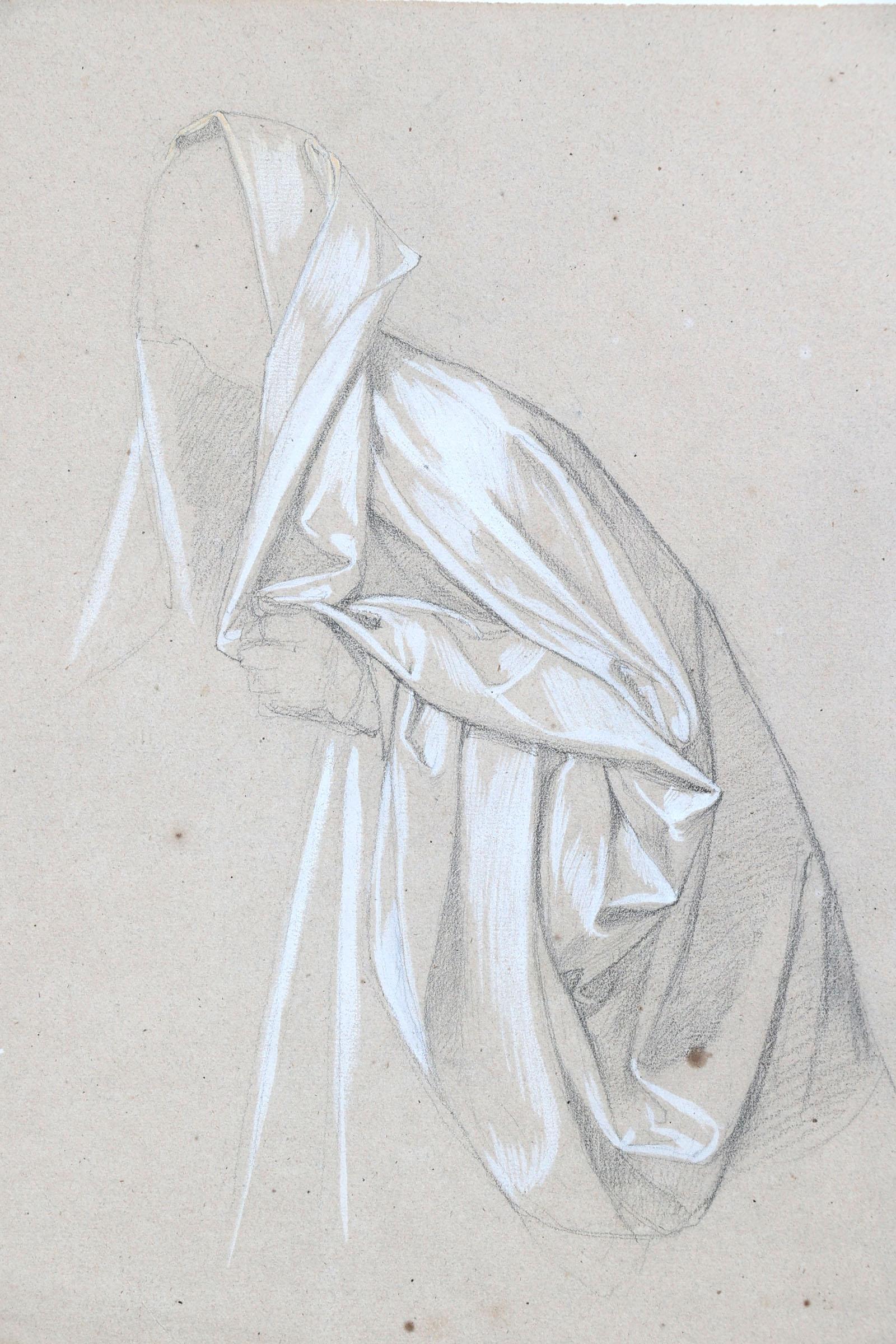 Camille Auguste Gastine (1819-1867), Persoon met gewaad, potlood op papier, gestempeld, 33 x 24,5 cm. Provenance: collectie kunsthandel Elisabeth den Bieman de Haas