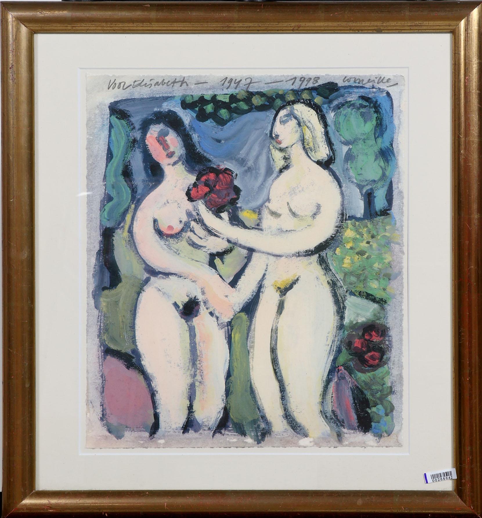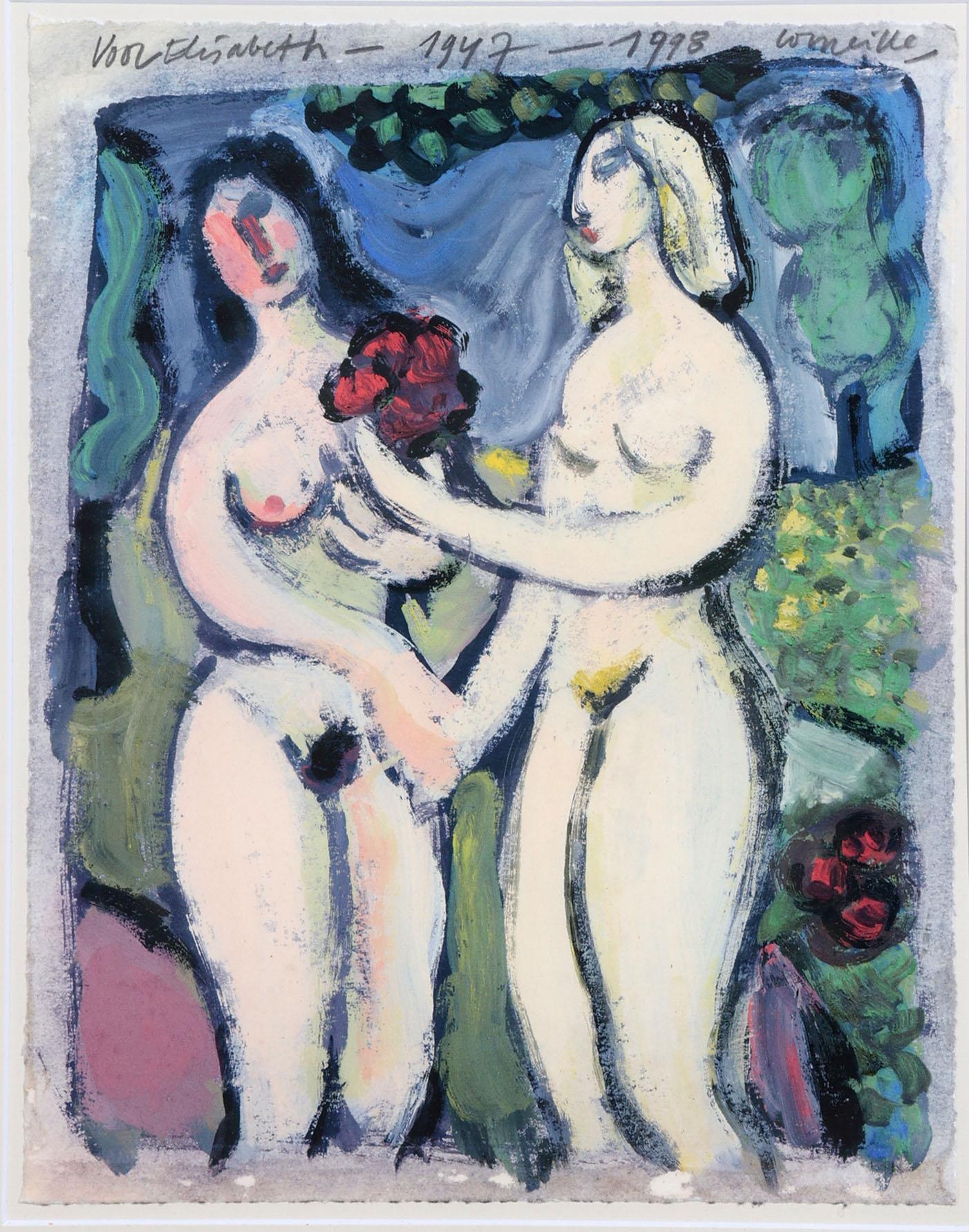 'Corneille', alias van Cornelis Guillaume van Beverloo, (1922- 2010), Blonde et Brune (1947-1998), handgesigneerde zeefdruk, met annotatie: "Voor Elisabeth", 38,5 x 30,5 cm. Provenance: kunsthandel Elisabeth den Bieman de Haas