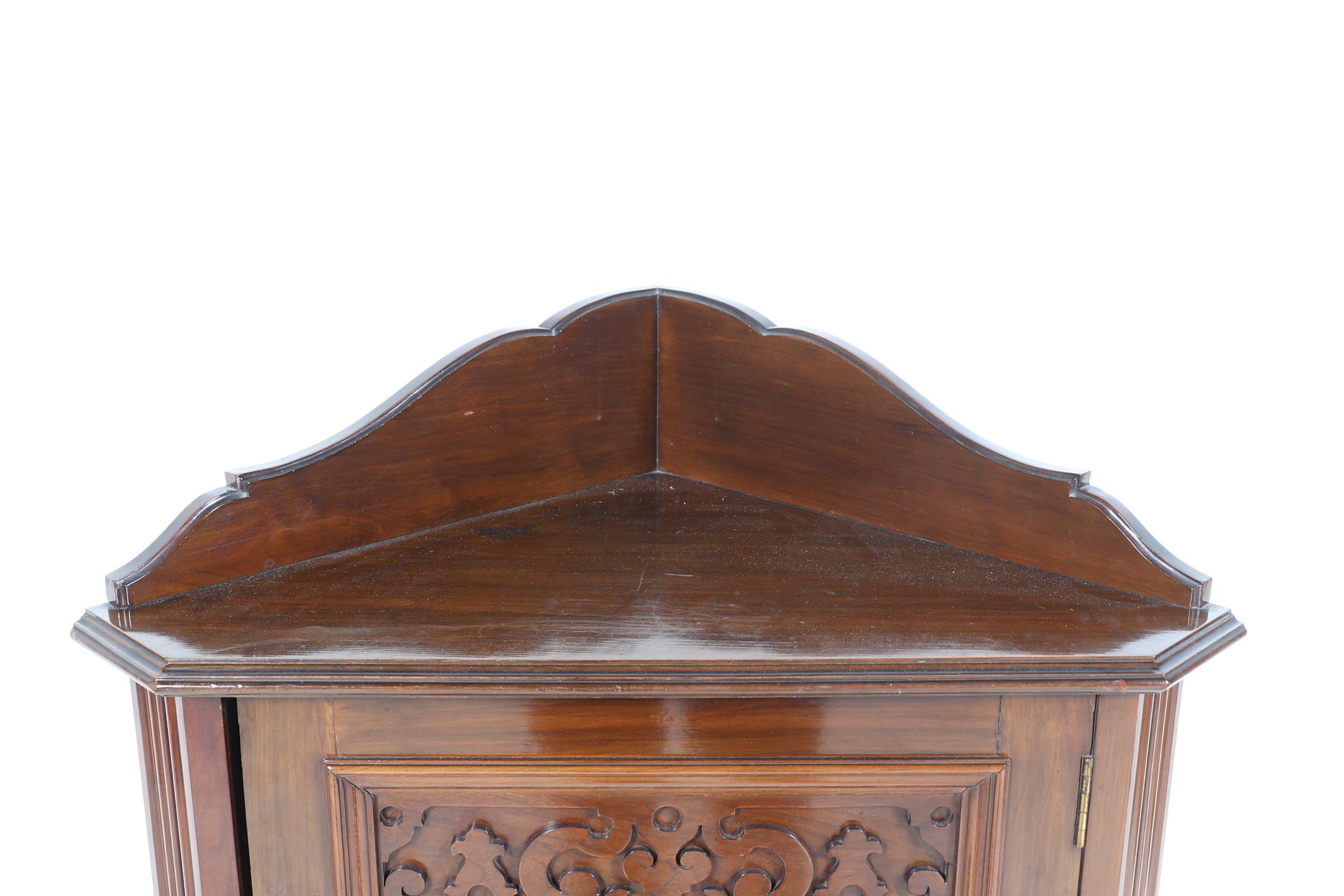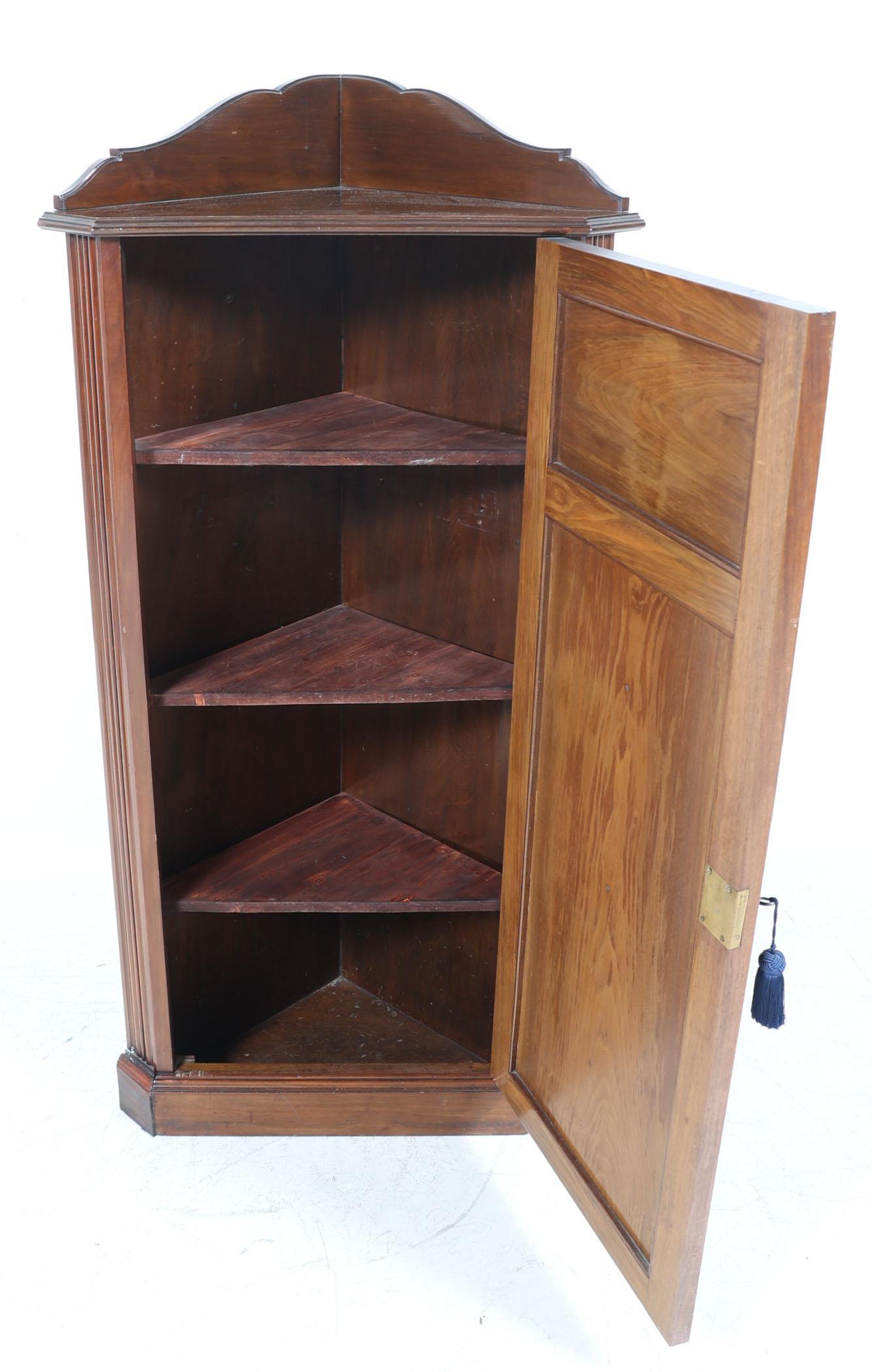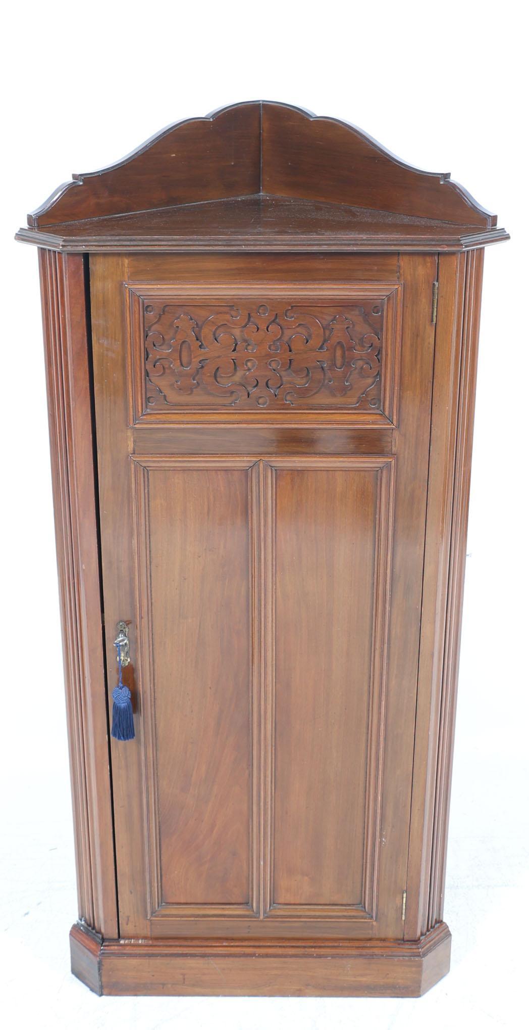 Oude mahoniehouten 1-deurs hoekkast, h.146 x b.70 x d.42 cm.