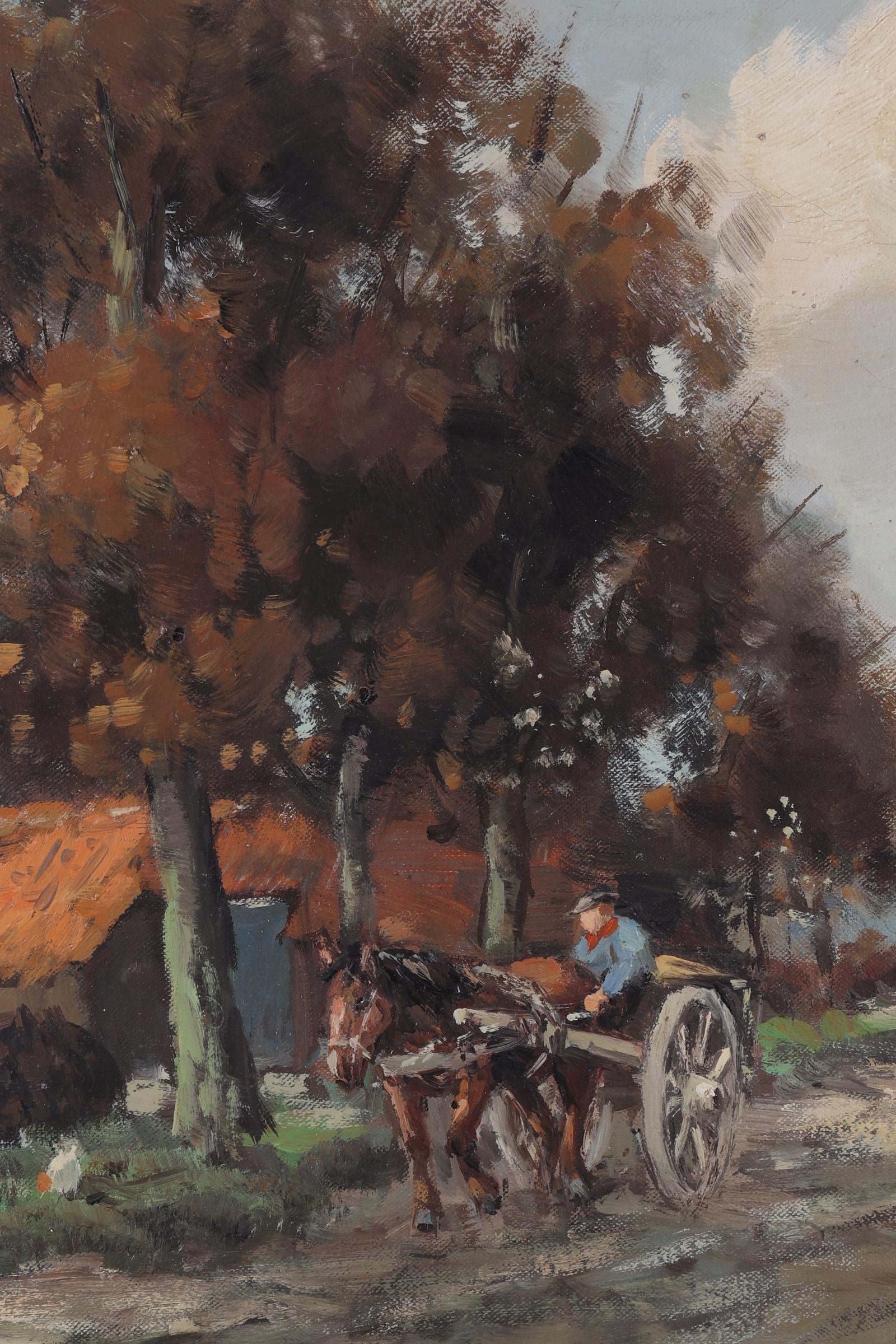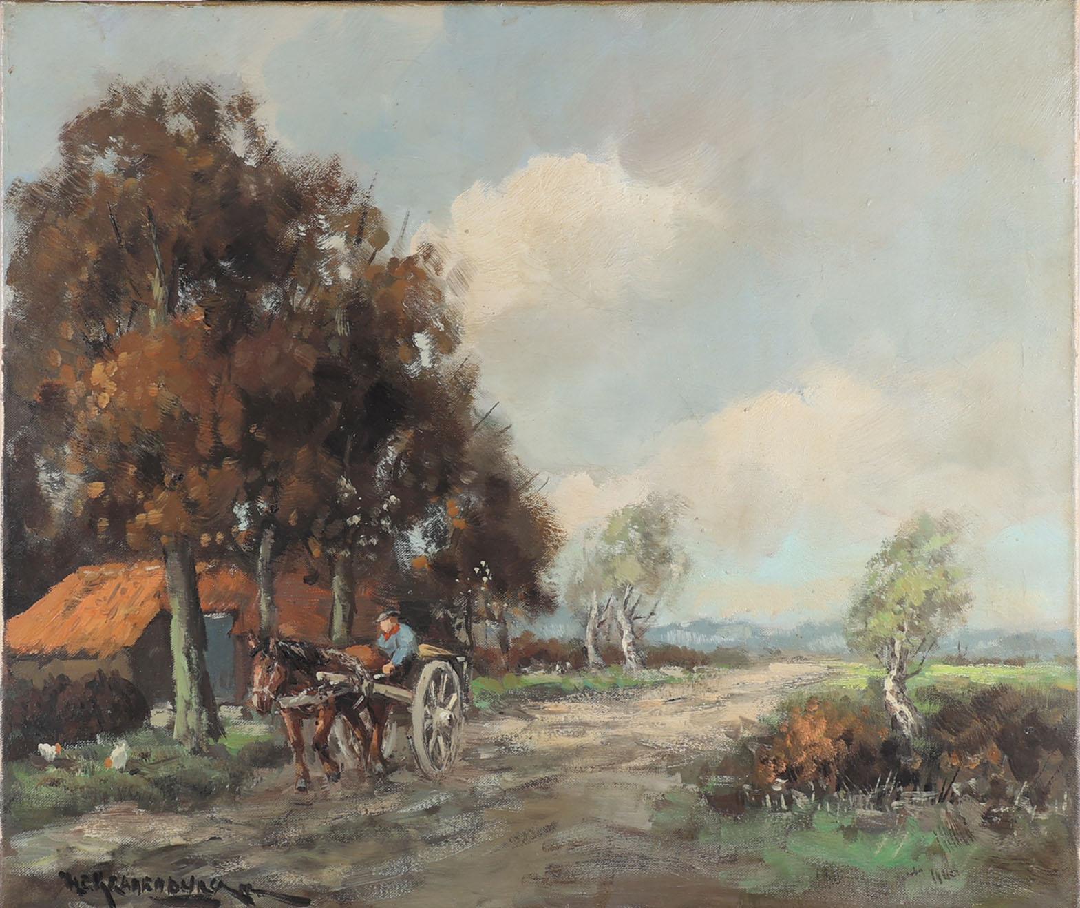 Hendrik Cornelis Kranenburg (1917-1987), Man met paard en wagen langs een boerderij, olieverf op doek, 60 x 50 cm. (niet ingelijst)